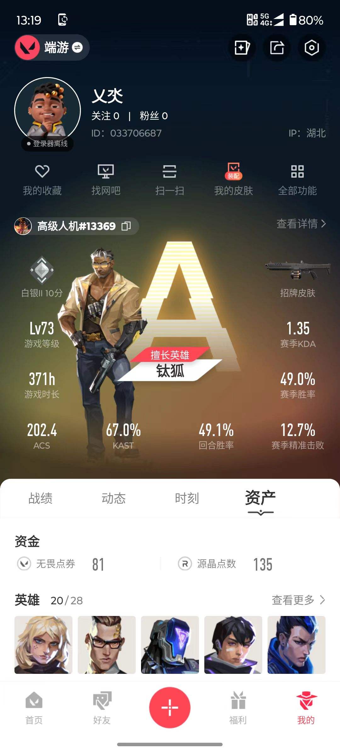 商品描述:[14727857]S192545无畏契约/73等级/白银段位/20英雄/16皮肤/资产3770/已使用R点/剩余R点135/ 洪荒怒焰-狂徒,侦察力量-幻影,碎心裂刃