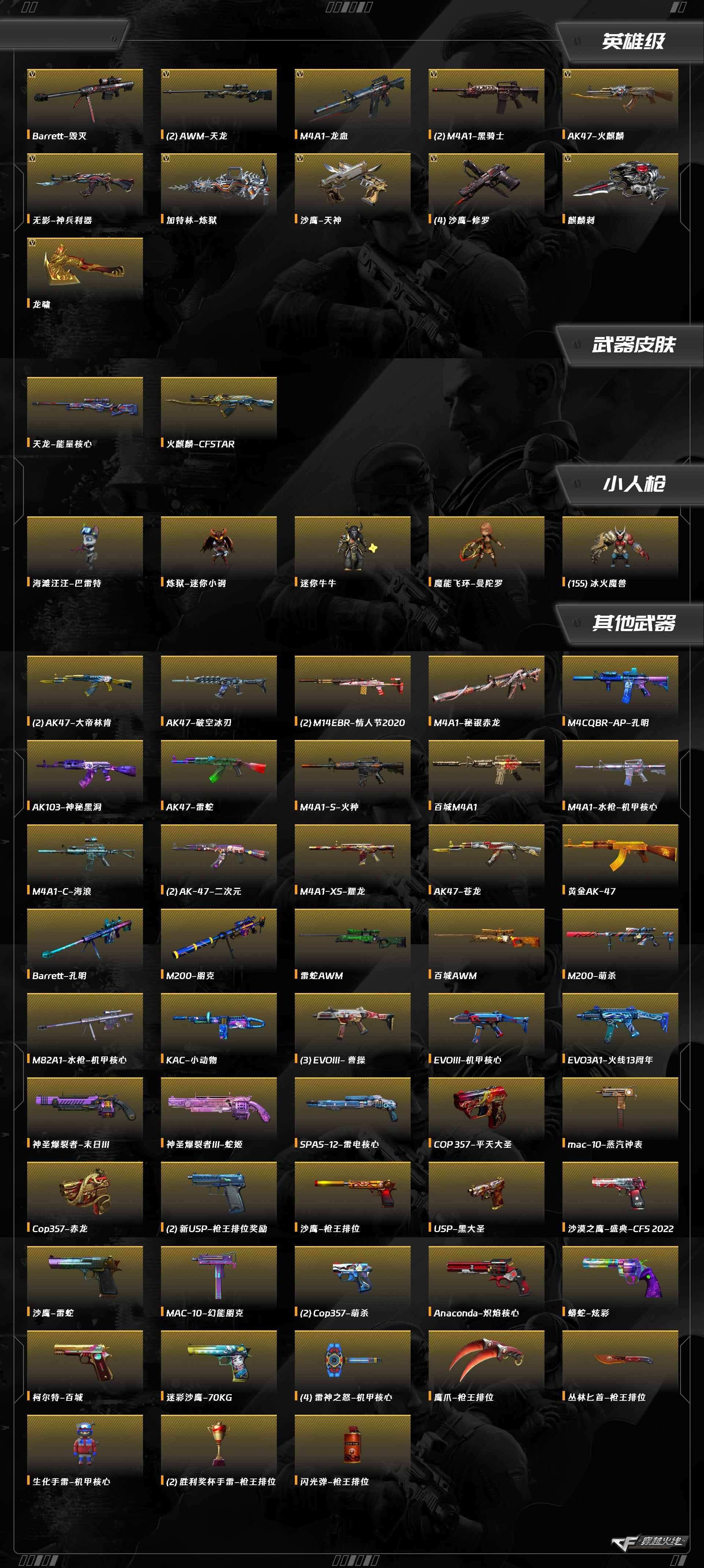 FWX5229/北部/河南一区/178V/幻神/幻神冠军之幻/幻神荣耀世冠白鲨/王者风神/6烈龙/毒蜂/斯泰尔蝴蝶/斯泰尔枪娘暗刃/6盘龙/6炼狱/4修罗/COP雷霆/COP堕天神/裁决/裁决羽掣/QBZ金色蔷薇/QBZ荣耀世冠白鲨/白虎/白虎电玩蓝兔/朱雀/玄武/M4雷霆王者/朱雀蛇隐宗/精英刀锋/火麒麟灵狐/雷神小红/天龙曼陀罗/黄金猫猫手套白鲨/CAAT/金色小号/电竞教官云悠悠/(4防爆破属性)/隼/(4防生化属性)/王者春/(4防爆破属性)/王者零国色天香/(4防爆破属性)/荒漠琉璃/葵/零/迷迭香/炫/魅影/狐影/奇洋探员/乔伊教练/蛇隐宗/王者零/王者玲珑/王者之瞳/云海玲珑/绝迹语音包/毁灭音效卡/雷神音效卡/极光音效卡/黑骑士音效卡/幻神冠军之幻/幻神荣耀世冠白鲨/QBZ荣耀世冠白鲨/裁决羽掣/火麒麟巅峰荣耀/毁灭AG/雷神冠军之魄/黑龙墨子/雷神白鲨/火麒麟AG/火麒麟CFS/天龙CFS/天龙传奇70KG/天龙传奇白鲨/火麒麟轻羽/修罗CFS/详情看下图FWX5195/西部/四川一区/可排位/20V/传说圣谕/幻神/幻神AG冠军/幻神纸灯龙/幻神黄忠/星神/星神璀璨/星神漫游/炽芒蝶刃/4修罗/QBZ金色蔷薇/SCAR玄豹/雷神小红/司雨/云海玲珑/暗夜-X/潘多拉-X/炼狱音效卡/幻神AG冠军/幻神纸灯龙/幻神黄忠/星神璀璨/星神漫游/详情看下图