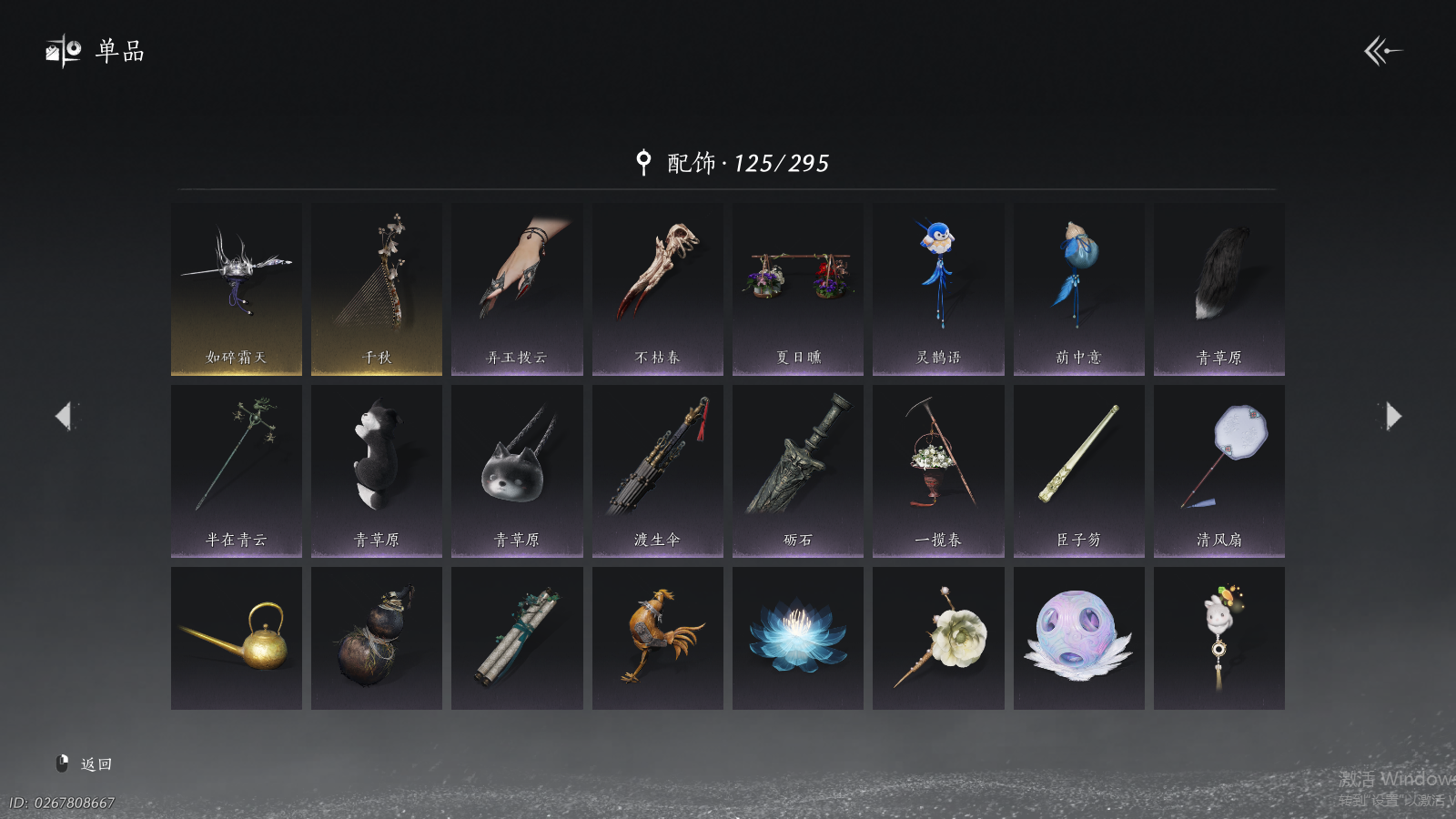 商品描述: 【如碎霜天,鹊衔夜,蜀戏春,九间当铺,金滟玉团,白龙,万剑归宗,龙战玄黄】 风华值40472 武林造诣(鹅)34649 已用八音窍数量4 未用八音窍数量0 等级100 角色性别【文本】男 【绝境】 【无换绑CD】 【未绑定或可换绑】 【未注册】 【不支持人脸包赔】 【男】 【无】 【ios】 【是】 【是】 【否】 稀有套装3 稀有发型2 稀有武学奇术2 套装41 武器外观12 武学奇术1 坐骑2 稀有套装:问春何苦,晏平生,如碎霜天; 稀有发型:锦瑟华年,百花应诏; 稀有武学奇术:万剑归宗,龙战玄黄; 套装:问春何苦,青玉案,山水一砚,鹊踏枝,快哉风,贺新词,雁还乡,红尘书,火宅三更,芳时歇,午风清,南风熏,相思曲,风入画,一心三藏,逐红花,遥夜行,雨停荷,上青云,骊山猎,舞花间,松花玉兰,丹雀,白龙,射虎南山,螭骨,鲤传尺素,金滟玉团,云遥鹤影,落花闻诏,蓬莱翎,青草原,清河强者,金池鲤,翠羽顾,梨花泪,鹊衔夜,蜀戏春,九间当铺,驰走西风,月如银; 武器外观:月中诗,飒陌耶,霜枫寒,木棍,葱葱那年,大满贯,出竹意,霜枫愁,战鳞光,霜枫尽,断鳞光,翦鳞光; 武学奇术:御帚飞鸡; 坐骑:白义,飒露子;
