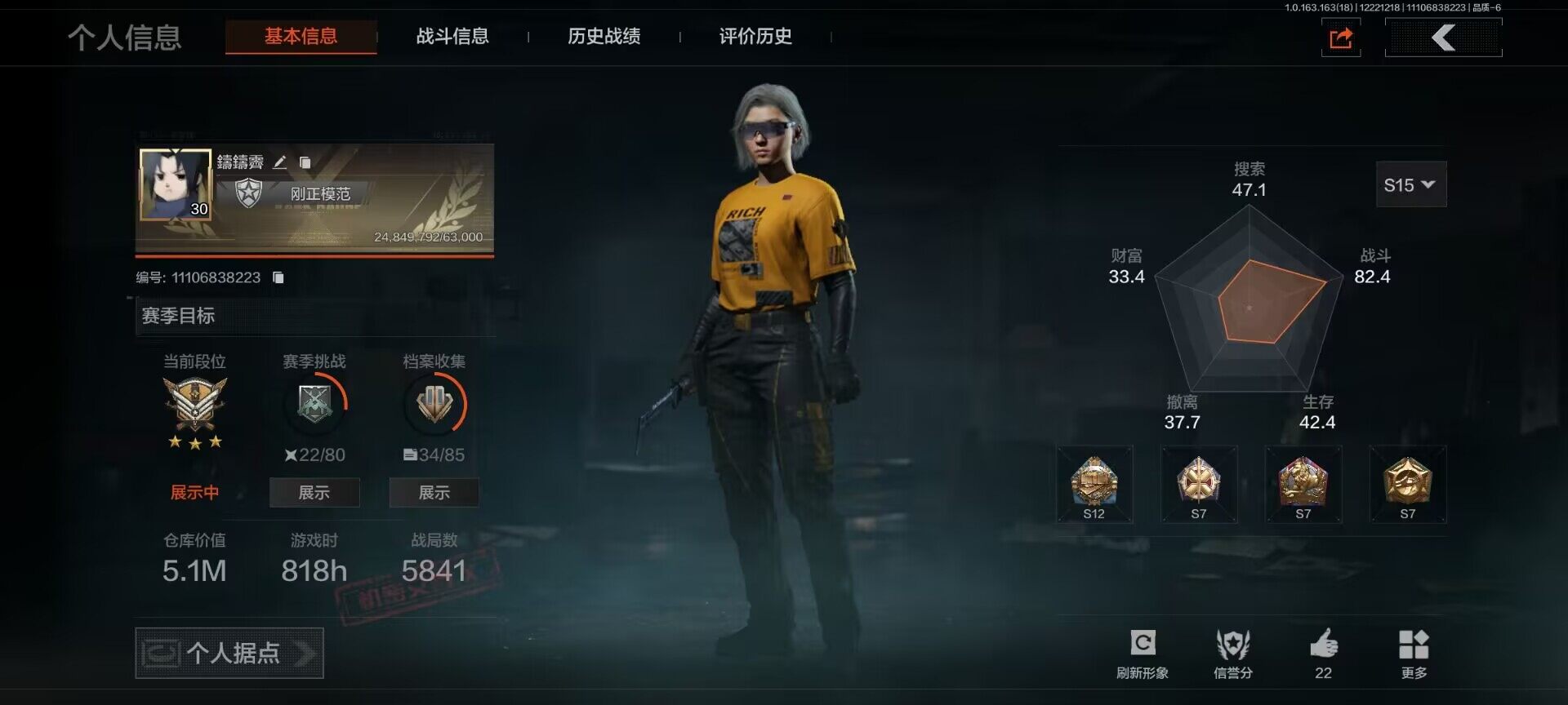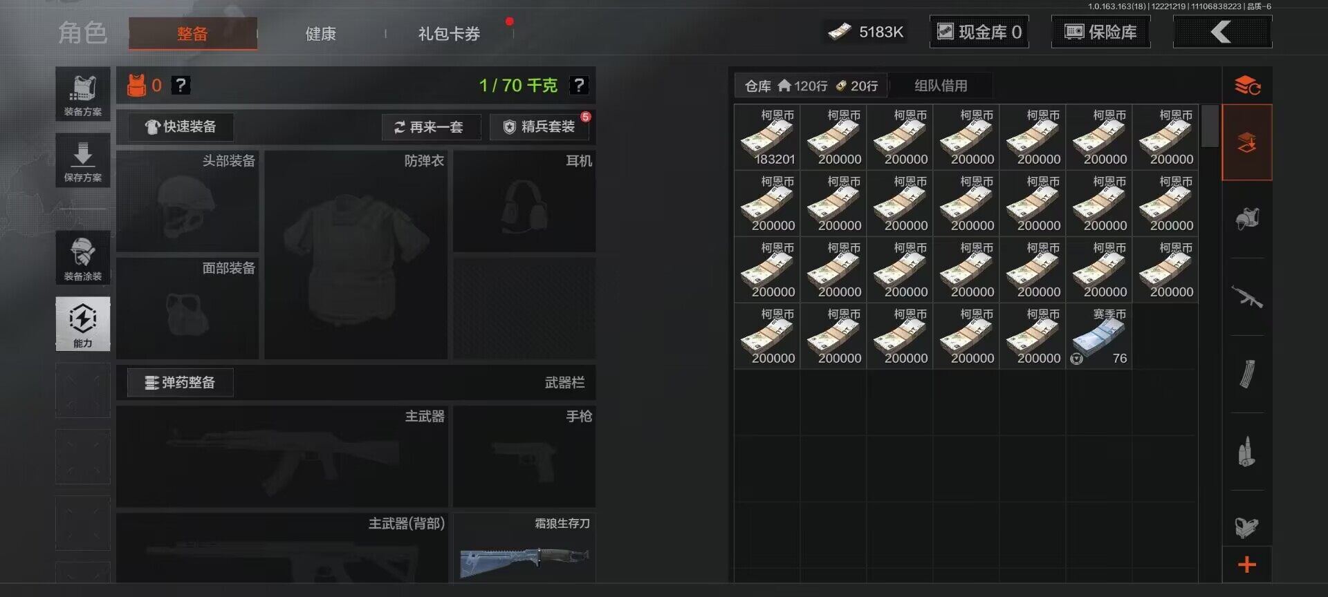 【AQZG749】等级:30/段位:王牌/仓库价值(百万):5/柯恩币:51830/苍穹利爪/霜狼生存刀/工兵铲/来战开山刀