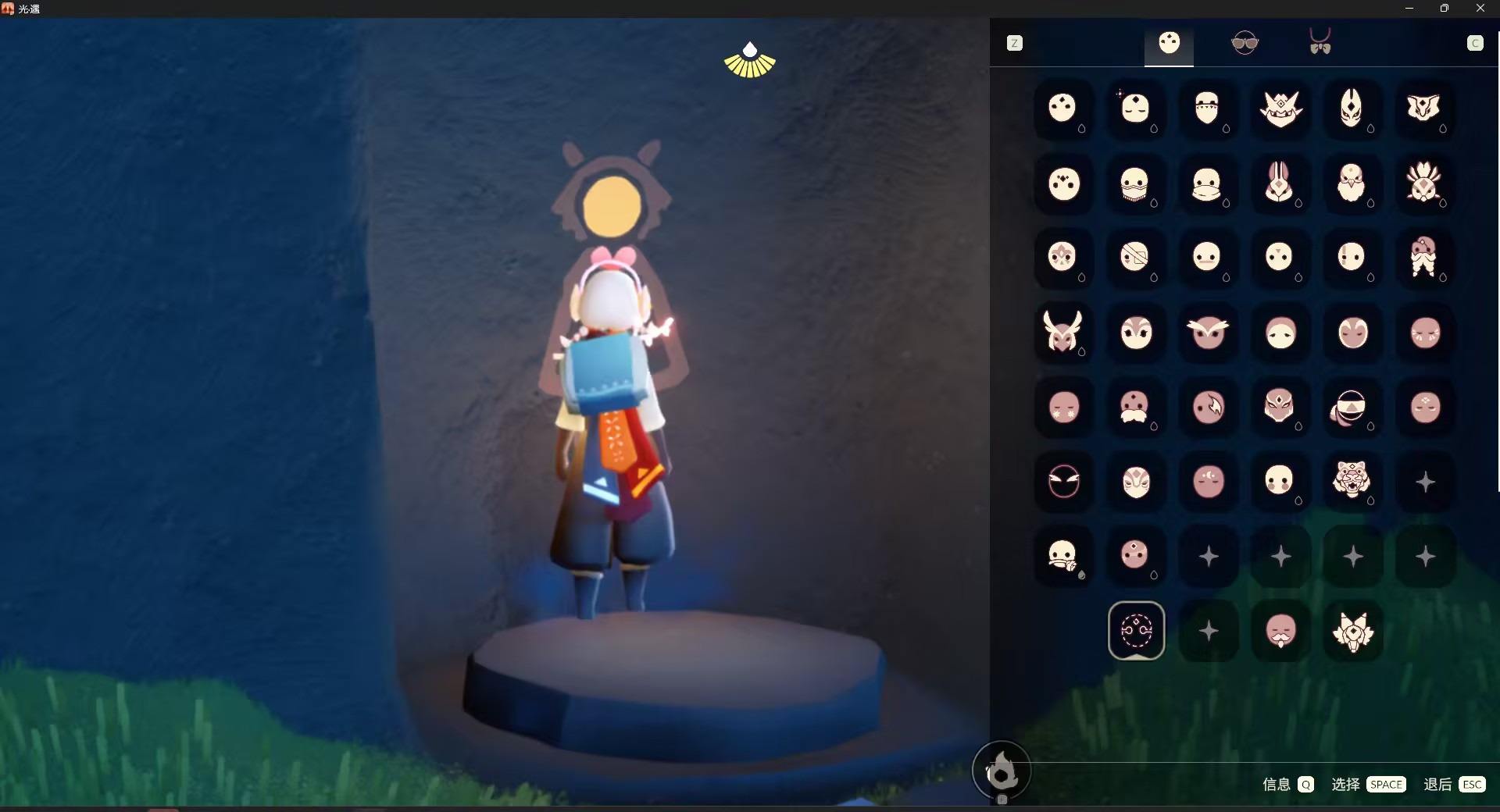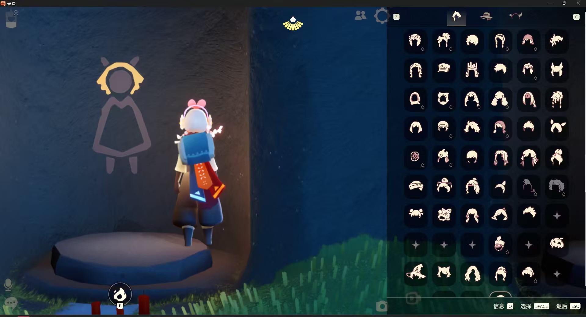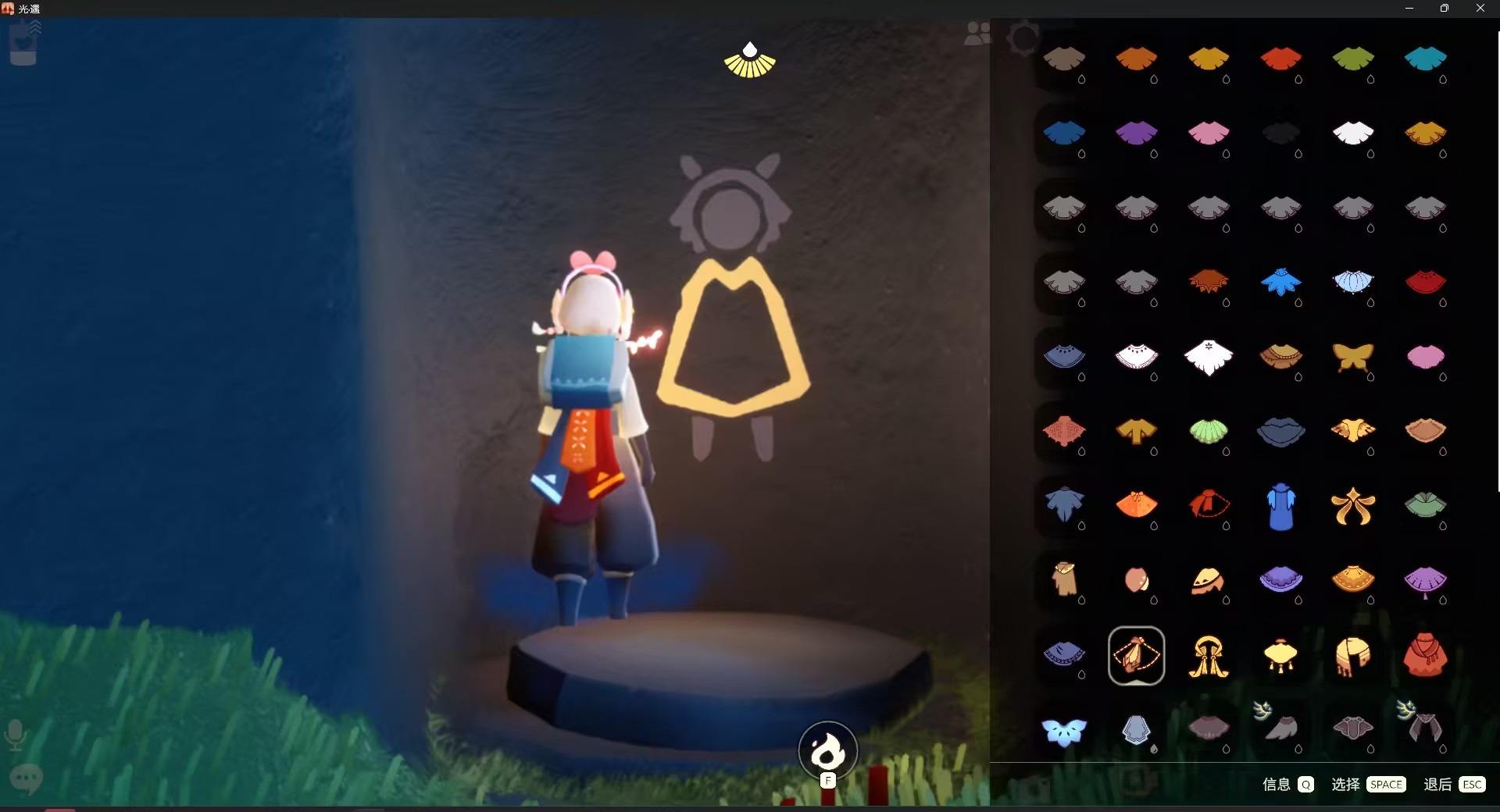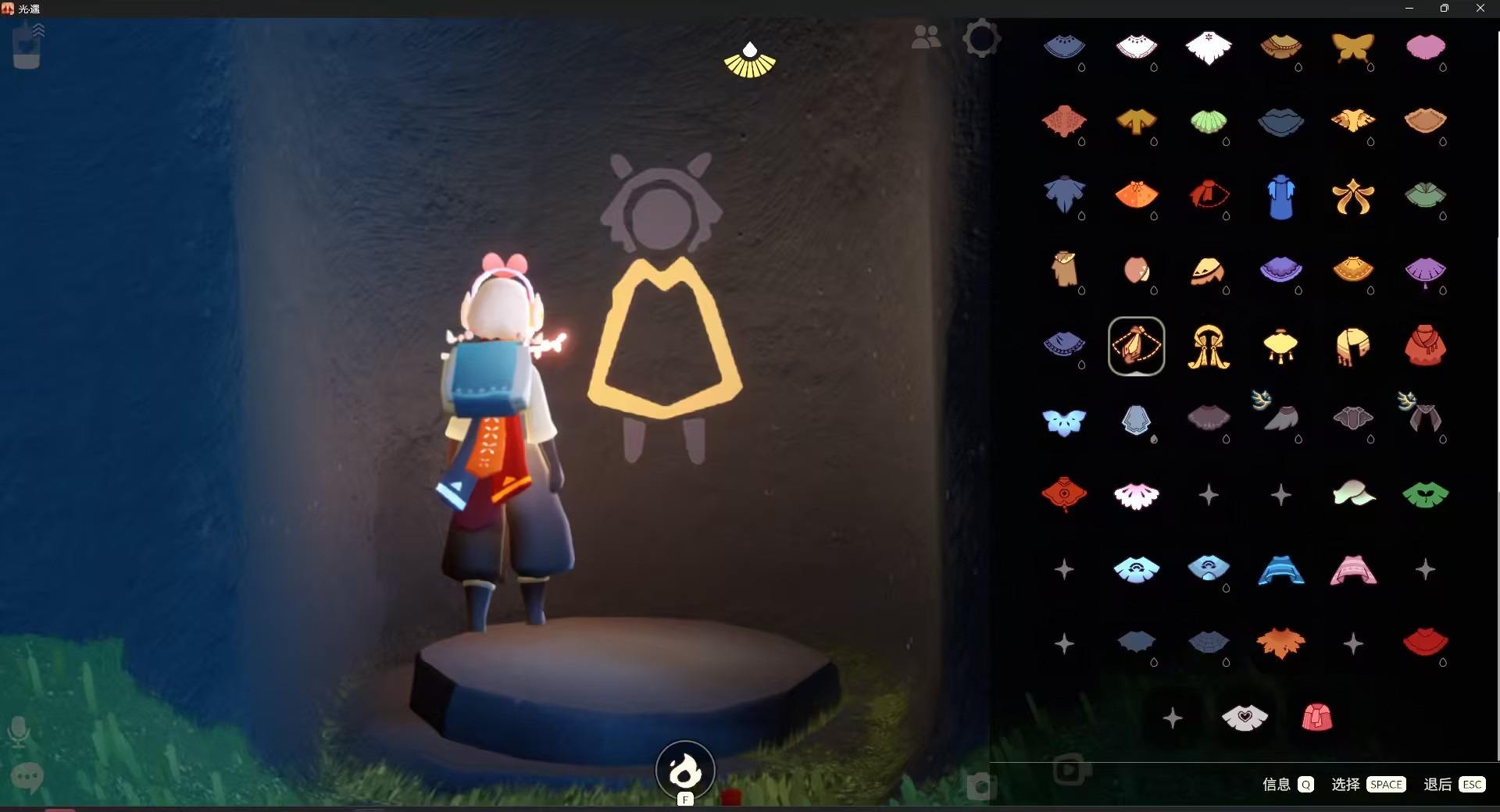 蜡烛数:142/爱心数:385/云野/雨林/霞谷/暮土/禁阁/表演季/破晓季/姆明季/彩染季/青鸟季/单边小辫/黄眉企鹅面具/燕尾斗篷/冥龙斗篷/九色鹿丸子头/九色鹿丝带裤/九色鹿飞天斗篷/姆明大伞/姆明抱枕/辉光羚羊面具/彩染围巾斗篷/青鸟面饰/青鸟斗篷/神鹿祝福礼包/粽子发饰/圣诞鹿角/南瓜头/蝙蝠斗/青衫落拓礼包/献瑞折扇礼包/武士裤/搓澡巾/虚荣/花环长发/红耳机/箬笠/平顶帽/白金斗篷/黑金斗篷/红金斗篷/雨伞/黄鼠狼面具/猫猫头/帝企鹅发/玉兔发饰/创始人斗篷/小王子围巾/瑞气纸伞