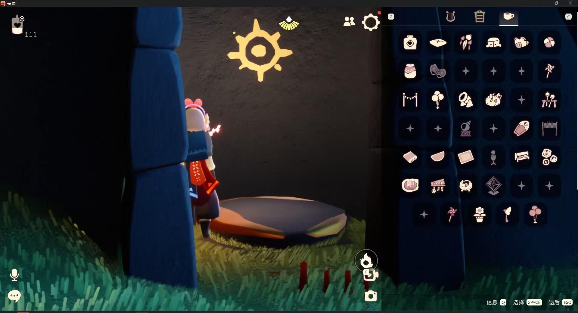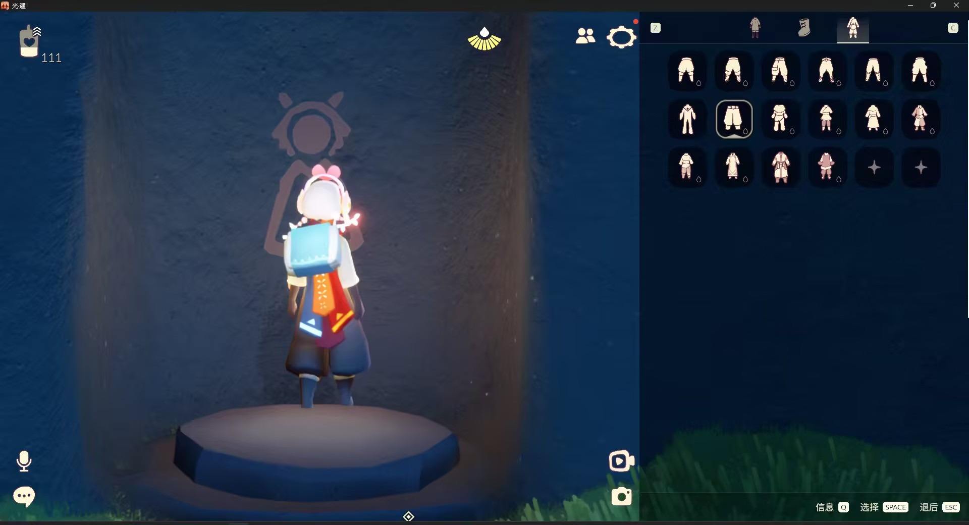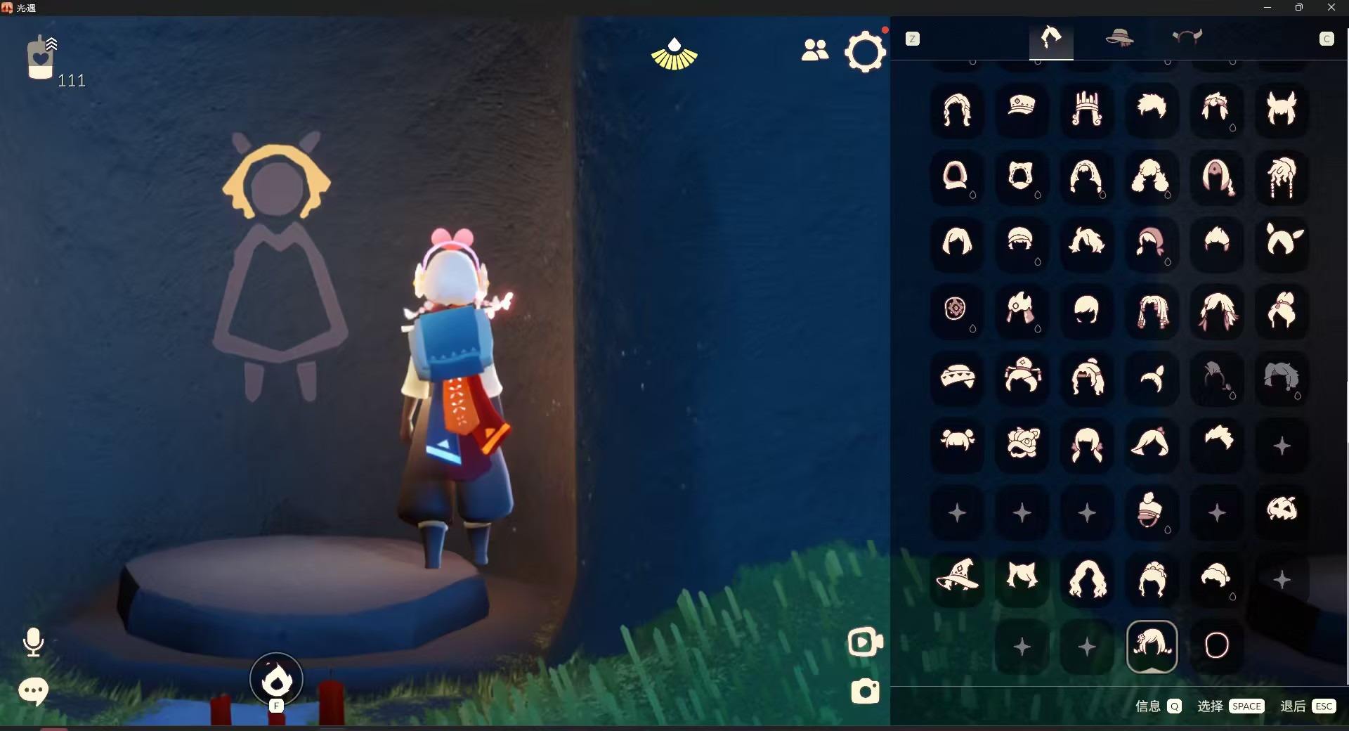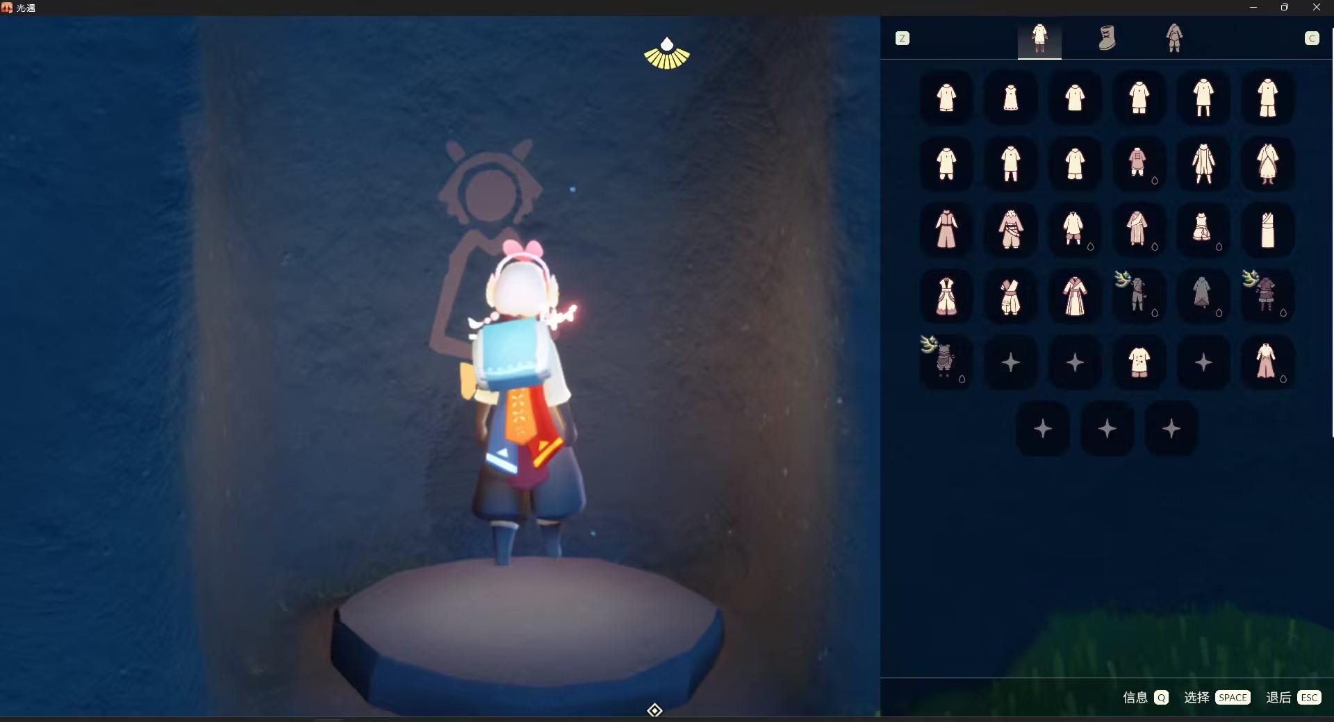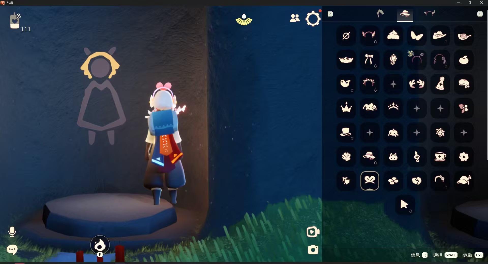 蜡烛数:142/爱心数:385/云野/雨林/霞谷/暮土/禁阁/表演季/破晓季/姆明季/彩染季/青鸟季/单边小辫/黄眉企鹅面具/燕尾斗篷/冥龙斗篷/九色鹿丸子头/九色鹿丝带裤/九色鹿飞天斗篷/姆明大伞/姆明抱枕/辉光羚羊面具/彩染围巾斗篷/青鸟面饰/青鸟斗篷/神鹿祝福礼包/粽子发饰/圣诞鹿角/南瓜头/蝙蝠斗/青衫落拓礼包/献瑞折扇礼包/武士裤/搓澡巾/虚荣/花环长发/红耳机/箬笠/平顶帽/白金斗篷/黑金斗篷/红金斗篷/雨伞/黄鼠狼面具/猫猫头/帝企鹅发/玉兔发饰/创始人斗篷/小王子围巾/瑞气纸伞
