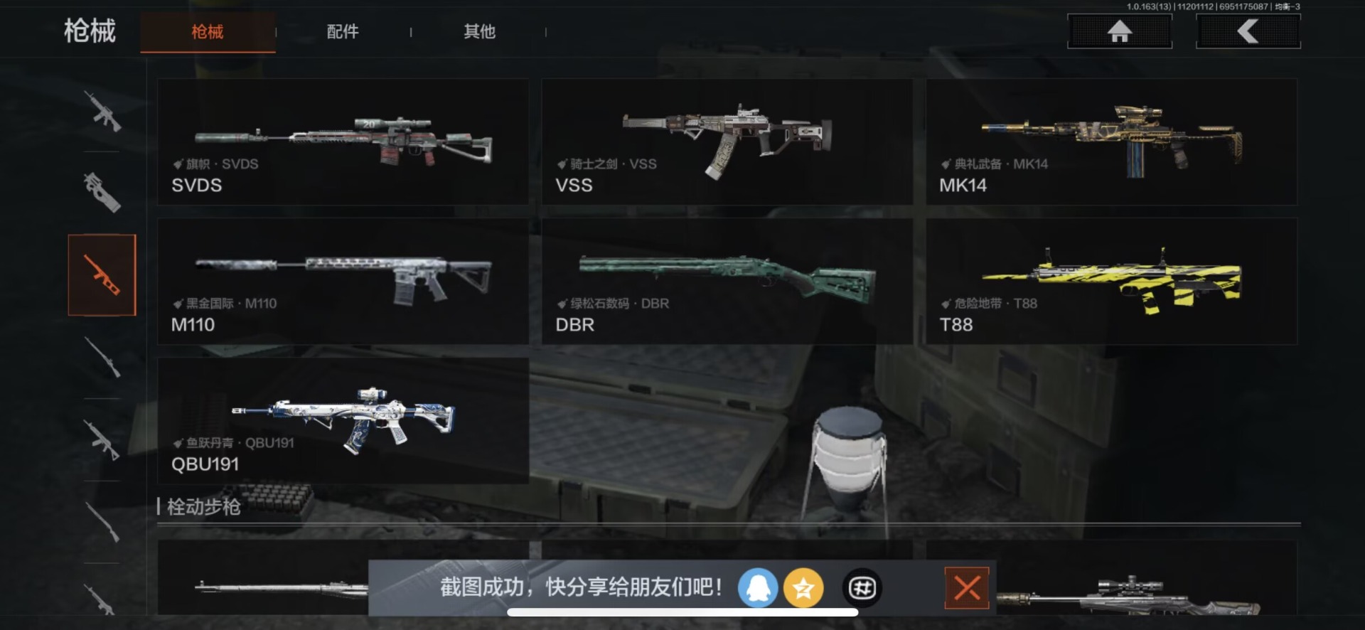 [14683045]库存价值0.6 5近战武器 2金枪皮 可修改实名 【柯恩币数量】:32444 【近战武器】:热能武器·补牢,寒牙手刺,工兵铲,精英指虎,瑞兔折刀 【金色枪皮】:旧王圣谕·QBZ191,伦琴幻影·FAL 【紫色枪皮】:高塔之内·P90,炎夏浪花·H416,炎夏浪花·MP5,竞技·AUG,火力倾泻·AKM,火力倾泻·RPD,潜渊蛇鳞·M4A1,旗帜脉冲·M110,战术大师·SKS,鱼跃丹青·DT MDR,鱼跃丹青·QBU191,伦琴计量·SVDS,典礼武备·M249,典礼武备·14,逆火玄石·AKM,神锋·Vector45,白色丧钟·莫辛,玄戈梨花·T03,娜迦·RPK16 【角色装扮(紫)】:金狮护身·转运套装,速降反光·户外运动套装
