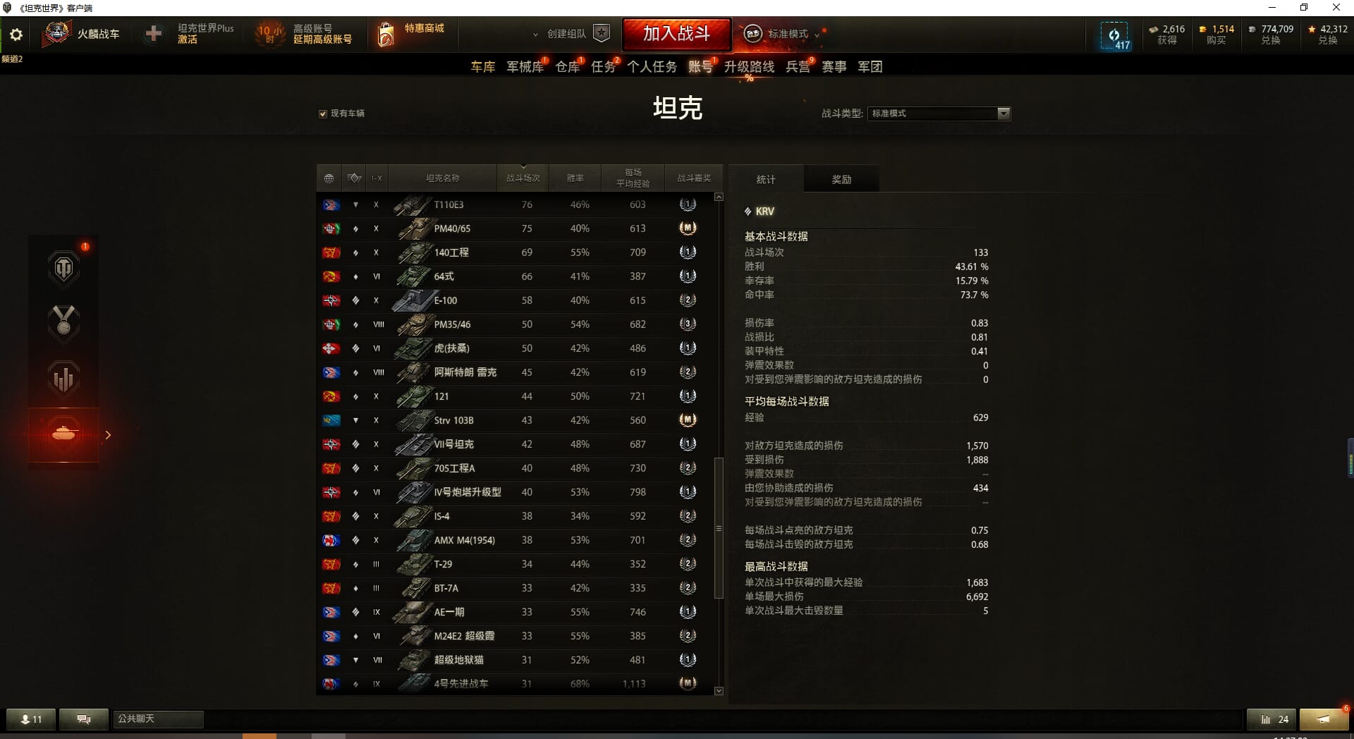 TD1238/无绑定-绝对安全/全部坦克14/金币坦克12/10级2/9级1/10级/BZ-75/FV215b/9级/GSOR坦克/乘员112/债券16793/金币3176/银币1494w/全局16088
