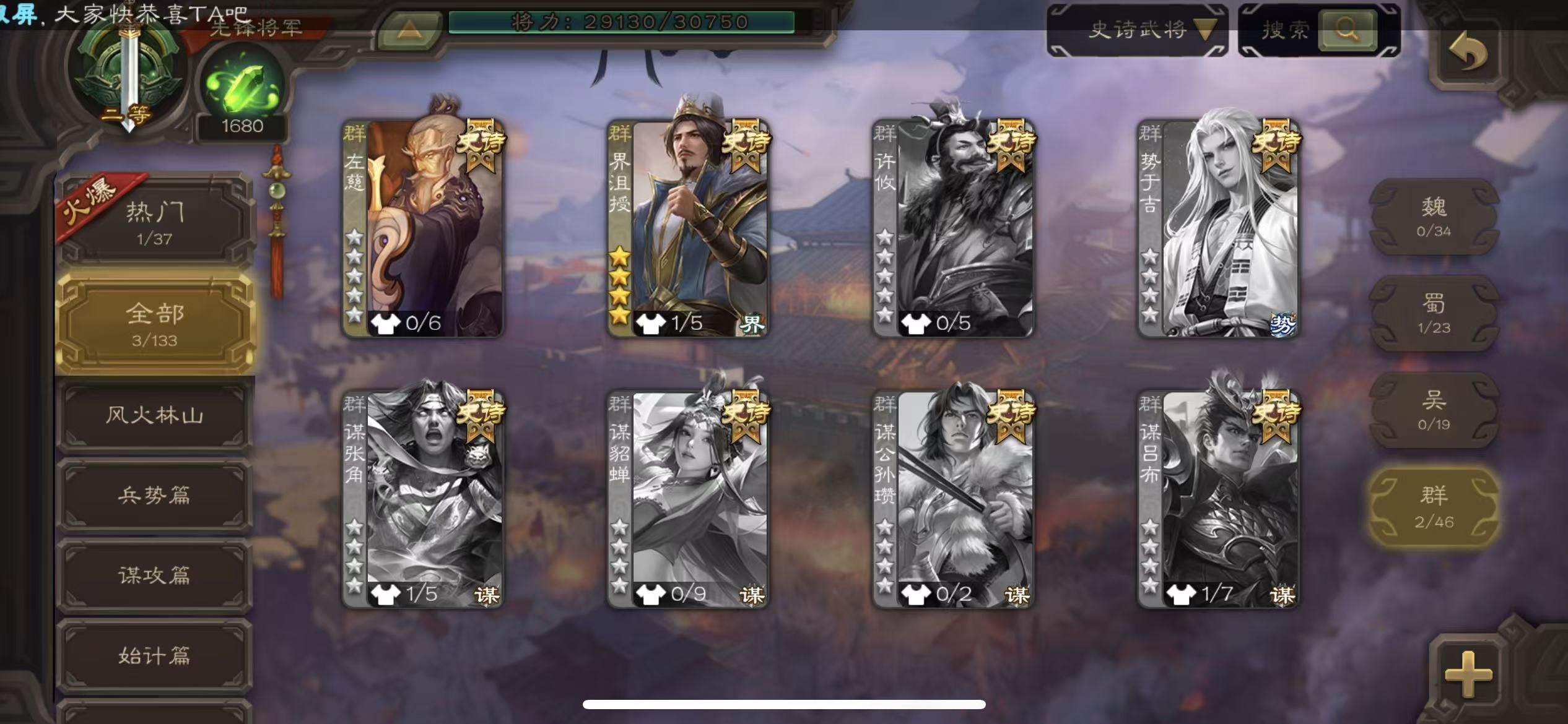 先锋界沮授花花三卡先锋动司马昭 动神吕布 回廊郭嘉 嵇康 小学云 界孙权 带16天月卡 三卡豆子充足