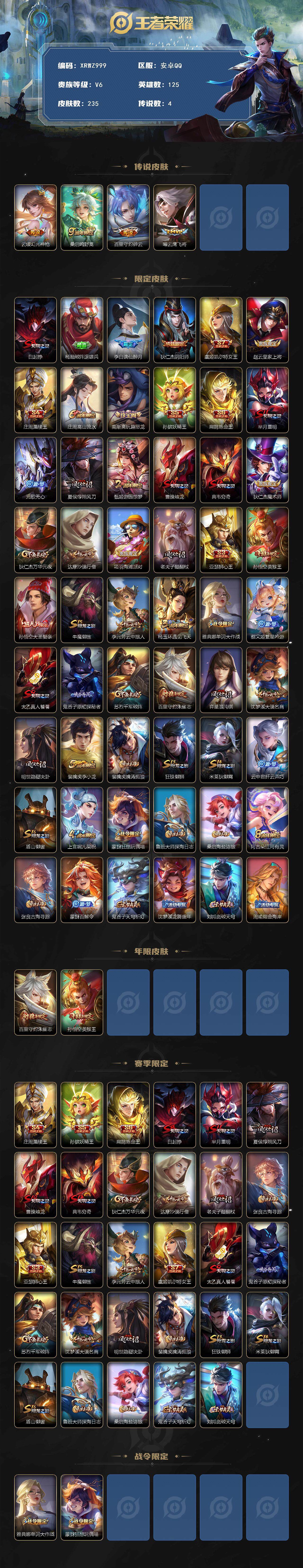 营地号473971959-【QQ(安卓)】贵族10-贵族积分33万-122英雄-439皮肤-300铭文 地狱火 胖达荣荣 海洋之心 苍穹之光 地狱之眼 云鹰飞将 一念神魔 天狼征服者 花朝如约 末日机甲 雪上飞焰 拒霜思 星穹之声 无双飞将 淬星耀世 乞巧织情 游龙清影 周瑜音你心动 音你心动 怒海麟威 异界灵契 黄金狮子座 补天 白虎志 寅虎·赤拳 绛天战甲 神器·狴犴令 超时空战士 祈雪灵祝 云霓雀翎 启明星使 炽阳神光 时之奇旅 挚爱花嫁 时之恋人 武圣 绯月行 冠军飞将 久胜战神 寅虎·瑞焰 挚爱之约 黄金白羊座 太华 武陵仙君 时雨天司 遇见胡旋 猫影幻舞 仲夏夜之梦 天魔缭乱 默契交锋 无尽星芒 黄金射手座 诗剑行 凤求凰 深海之息 时之祈愿 零号·赤焰 觅芳踪 群星魔术团 修罗 街头霸王 白执事 地狱岩魂 遇见神鹿 魅语 紫霞仙子 心灵骇客 暗夜贵公子 龙骑士 电玩小子 无限星赏官 时之恋人 青蛇 白蛇 冠军飞将 心灵战警 德古拉伯爵 梁祝 神威 武圣 烈魂 虎魄 龙胆 异界灵契 百木心枪 傲雪梅枪 补天 深海之息 无尽星芒 白鹤梁神女 遇见胡旋 乒乒小将 玉兔公主 孙行者 女儿国国王 猪悟能 唐三藏 项羽霸王别姬 虞姬霸王别姬 云端筑梦师 时之彼端 天魔缭乱 白晶晶 青春决赛季 冰霜恋舞曲 蜜橘之夏 神奇女侠 遇见神鹿 纤云弄巧 拒霜思 繁星吟游 天狼征服者 幽灵船长 雪上飞焰 星界游侠 星夜王子 天秀·启明 黎明之约 冰冠公主 时之祈愿 天才门将 绅士熊喵 电玩·爆裂旋风 奔雷神使 五谷丰年 遇见飞天 寅虎·心曲 顽趣 火炮绅士 胡桃异想国 暗渊魔法 无心 云间偶戏 一生所爱 原初追逐者 热力回旋 岱宗 寅虎·御盾 大圣娶亲 乱世虎臣 逐梦之星 暗影游猎 逐梦之影 白龙吟 飞衡 千年之狐 末日机甲 缤纷独角兽 暗隐猎兽者 驯魔猎人 圣诞狂欢 御风骁将 乘风破浪 唤灵魅影 圣诞恋歌 鬼剑武藏 黄金分割率 水果甜心 蔷薇恋人 玄嵩 高山流水 吟游魔法 未来纪元 嘻哈天王 皇家上将 逐浪之夏 银河之约 箭羽风息 天狼溯光者 女仆咖啡 魅力维加斯 时之奇旅 舞动绿茵 特工魅影 朱雀志 猫狗日记 狮舞东方 玄武志 赏金猎手 天狼运算者 寅虎·展翼 真爱魔法 水晶猎龙者 瑞麟志 诗语江南 月团寄思 冰锋战神 摇滚巨星 白昼王子 优雅恋人 匿光追影者 霸王别姬 乐园奇幻夜 龙鼓争鸣 狂想玩偶喵 逐梦之光 永昼 偶像歌手 凤凰于飞 晚萤 魔术师 鹰眼统帅 奇遇舞章 节奏热浪 迷踪丽影 暗夜猫娘 功夫厨神 天秀·音浪 曙光守护者 青龙志 冰雪圆舞曲 游园惊梦 幽恒 天狼绘梦者 神器·万象笔 金属风暴 降魔 电玩高手 苍穹之光 天狼狩猎者 李小龙 梦圆繁星 航海奇遇记 荣光圣徽 项羽霸王别姬 虞姬霸王别姬 武陵仙君 挚爱之约 瑶时之祈愿 云中君时之祈愿 大圣娶亲 一生所爱 兰陵王默契交锋 花木兰默契交锋 挚爱花嫁 无尽征程 美猴王 五福同心 街头霸王 教廷特使 敏锐之力 夺宝奇兵 阿尔法小队 圣弓游侠 完美运算 丁香结 金庭之子 野性能量 猎兽之王 朔风刀 万象初新 未来纪元 霸王丸 掌控之力 沉稳之力 奇妙博物学 鲤鱼之梦 疑决卦 虹云星官 忍·炎影 白执事 云中旅人 妄想特派 少女阿狸 古海寻踪 幽兰居士 缤纷绘卷 黑桃队长 坚韧之力 千军破阵 归虚梦演 天使之翼 兔女郎 大漠名商 鲨炮海盗猫 星空之诺 龙腾万里 汉昭烈帝 万事如意 纽约教父 守护之力 凯尔特女王 驱傩正仪 幻想奇妙夜 午后时光 玩偶对对碰 如懿 万华元夜 阴阳师 探海日志 乓乓大师 赤莲之焰 女武神 爱心护理 无双福将 爱与正义 星际陆战队 演武夺筹 死亡摇滚 红桃皇后 重明 幻夜卜梦 花好人间 落雪兰心 进击墨子号 神迹守卫 东方不败 死亡骑士 潮玩骑士王 命运角斗场 特工战影 御狮 科学大爆炸 海滩派对 擒涛扼浪 圆桌骑士 御銮 功夫老勺 黄金武士 铁甲之心 穷奇 潮玩探月行 西部大镖客 瓷语鉴心 哥特玫瑰 御霄 蔚蓝守将 劲辣红锅 幻乐之宴 原初探秘者 拒霜思 暖冬·兔眠 制霸全明星 御旌 混沌棋 秘密基地 唤灵魔甲 沙漠行僧 拳王 大发明家 单词大作战 救世之瞳 炼金王 化身博士 次元傲视 白色死神 狰 夜都怪侠 重装意志 海滩丽影 时尚教父 炽热元素使 海盐诗旅 次元突破 烛龙 太极少年 危途狂花 幻泉雾影 天穹祈灯 功夫炙烤 群星魔术团 天穹之誓 饕餮 暗都幽影 极冰防御线 秩序猎龙将 芝加哥教父 精准探案法 魇语军师 午夜歌剧院 绯红之刃 年年有余 威尼斯狂欢 维京掠夺者 潮流仙人 圆桌骑士 街头旋风 帝国元帅 修竹墨客 龙域领主 金属狂潮 华尔街大亨 海军大将 灼热之刃 埃及法老 死神来了 超能战警 三太子 画中游 前尘 碧珀绯影 赤焰之缨 生化警戒 创世神祝 锦衣卫 战争女神 荷鲁斯之眼 英喵野望 踏雪寻梅 尼罗河女神 露花倒影 阿摩司公爵 霓裳曲 美梦成真 异域舞娘 天堂福音 蔷薇王座 仙境爱丽丝 花见巫女 特种部队 占星师 火炮千金 星航指挥官 绝影神枪 归虚梦演 战争骑士 隐刃 万圣前夜 精灵王 圣殿之光 范海辛 激情绿茵 森 天启骑士 精灵公主 幸存者 花间舞 东海龙王 地府判官 熊喵少女 加勒比小姐 冰刃幻境 伊势巫女 西部大镖客 棒球奇才 剑舞者 第七人偶 未来旅行 孤猎 爱与和平 木偶奇遇记 福禄兄弟 海之征途 天穹之誓 古海寻踪 云中旅人 驱傩正仪 黎明之约 原初追逐者 大漠名商 擒涛扼浪 海盐诗旅 千军破阵 金庭之子 剑破天穹 天穹祈灯 梦奇顽趣 荣光圣徽 桑启 御霄 炼