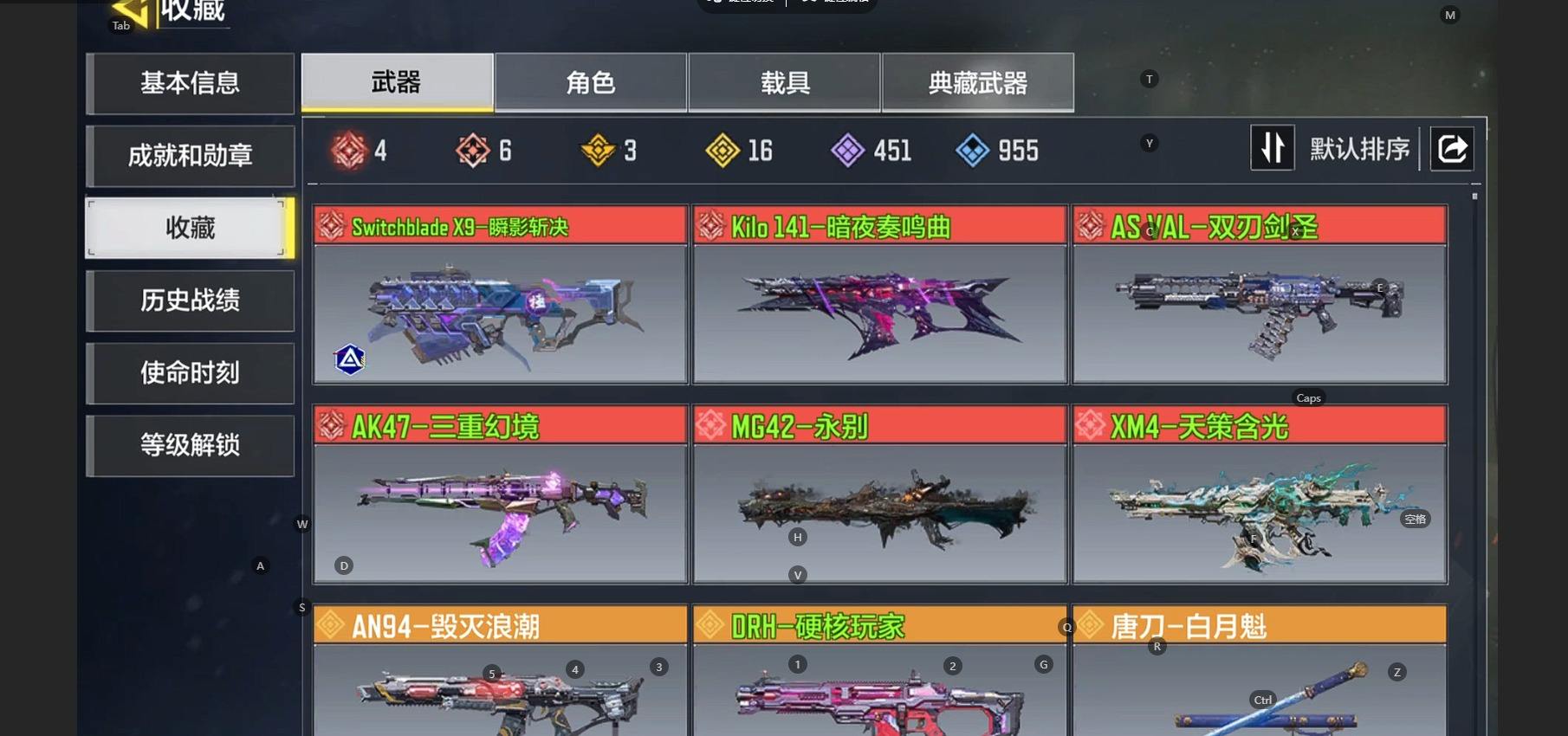 AQY645无二次QQ皇冠1神话 AK117-熔岩 10传说 CR56-回音律动 电棍-永恒炽热 AK47-火箭炮 飞翼浮游炮-v高达 M4-皇家黑魂 AKS 74U-神灯灵愿 RPD--路悠扬 DLQ33-狂热祈愿 FFAR1-星彩乐手 Locus-红色彗星