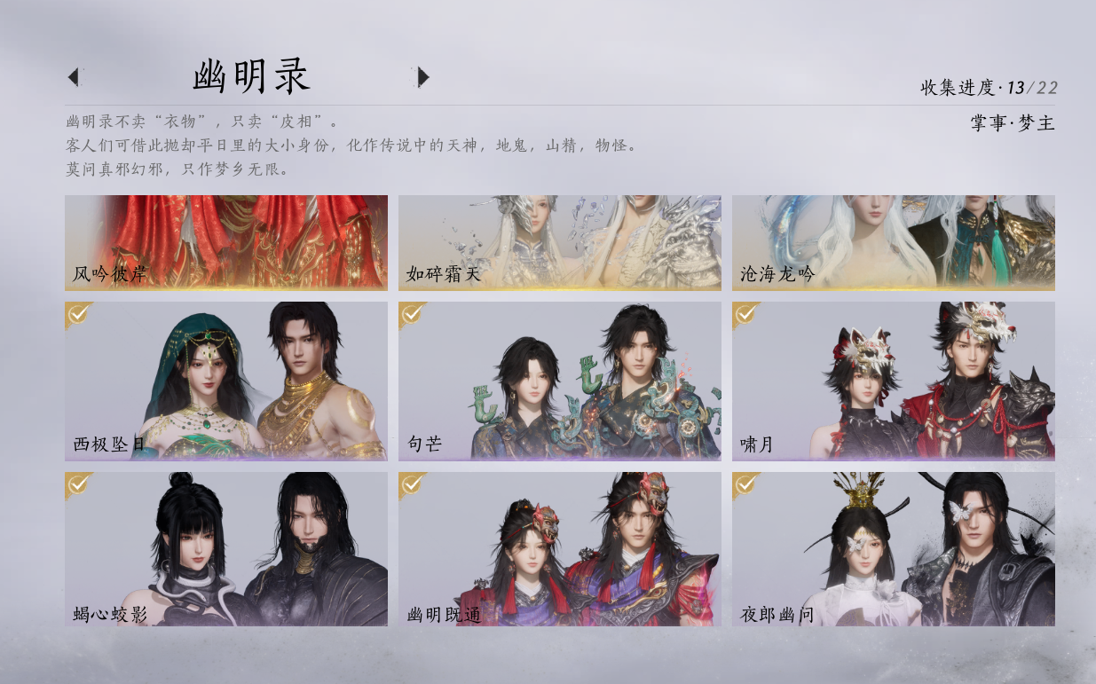 XY-076654477 角色性别【文本】女 【绝境】 【有换绑CD】 【不可换绑】 【未注册】 【不支持人脸包赔】 【女】 【是】 【是】 【否】XY-076643637 风华值21989 武林造诣(鹅)35550 已用八音窍数量3 未用八音窍数量0 等级100 角色等级100 角色性别【文本】男 【无换绑CD】 【绝境】 【无冷却】 【不支持人脸包赔】 【男】 【手机帐号】 【网易手机账号】 【是】 【是】 【未拥有】 【已知晓】 【自己上传】 稀有套装3 稀有武学奇术1 套装14 武学奇术1 稀有套装:有狐绥绥,乌纱红漪,晏平生; 稀有武学奇术:一雷惊蛰; 套装:清河强者,金池鲤,翠羽顾,江湖客,逐红花,一心三藏,丹雀,午风清,雁还乡,射虎南山,宿露轻盈,驰走西风,相思曲,云中锦书; 武学奇术:墨泼风;