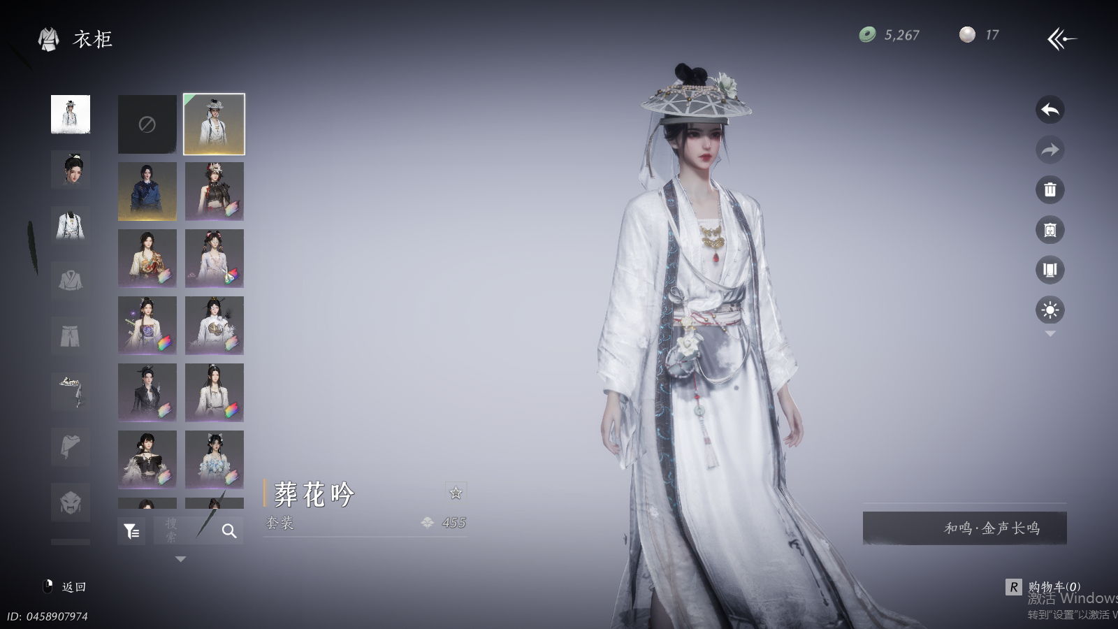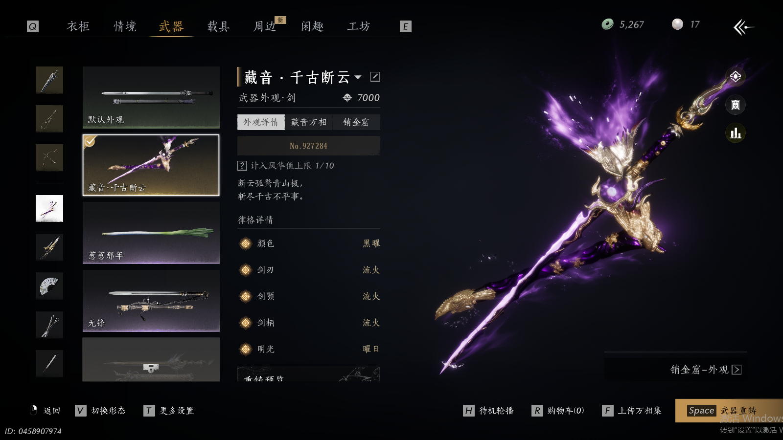 商品描述: 【极品女号-双发型-浮云卷霭-鹊桥仙-五金断云剑可封装-三颗未用八音-10个凝华染膏-和鸣如意值220出套装-5000长玉】 风华值32080 武林造诣(鹅)35542 已用八音窍数量4 未用八音窍数量3 角色性别【文本】女 【绝境】 【无换绑CD】 【未绑定或可换绑】 【不支持人脸包赔】 【女】 【无】 【是】 【是】 稀有套装2 稀有发型2 稀有武器外观1 稀有武学奇术1 特殊道具1 套装7 武器外观4 坐骑5 稀有套装:葬花吟,晏平生; 稀有发型:浮云卷霭,鹊桥仙; 稀有武器外观:藏音·千古断云(五金); 稀有武学奇术:一斩绛天; 特殊道具:凝华染膏; 套装:啸月,梦寻虎跑,卿知吾心,鹊衔夜,夜郎幽问,驰走西风,澄心不染; 武器外观:葱葱那年,无锋,无鸣,出竹意; 坐骑:琼林客,白义,飒露子,飞毛腿,盗骊;