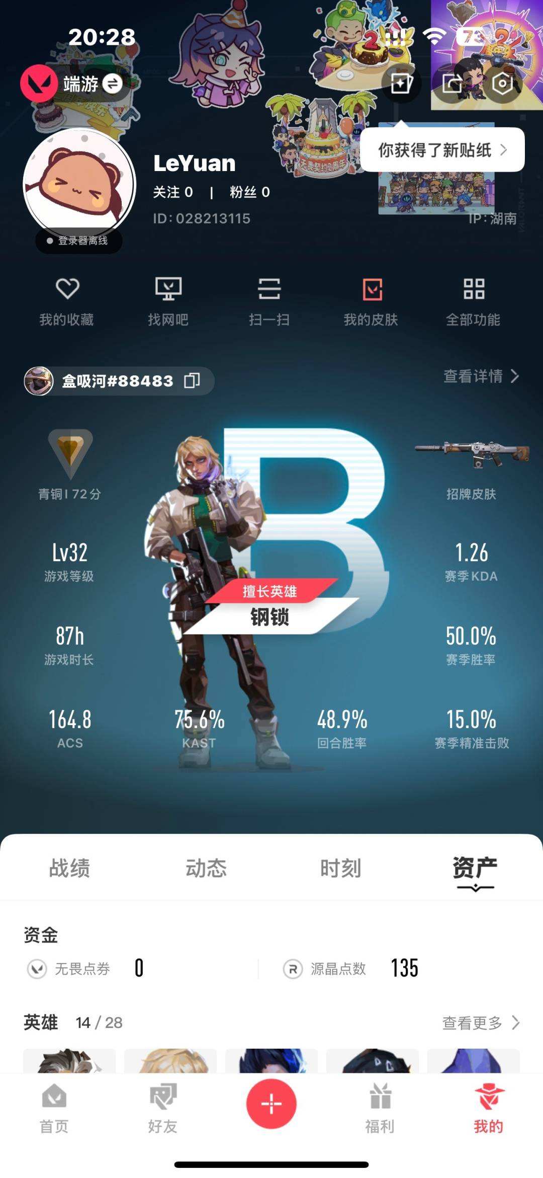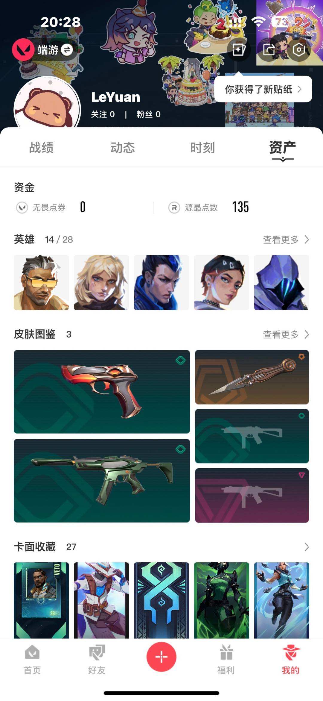 [13644182]8橙皮 1紫皮 23皮肤 19英雄 59卡面 285已用源晶 未定级段位 【近战武器皮肤】:RGX 11z Pro//2.0 蝴蝶刀,匕首-超限闪存,蝴蝶刀-侦察力量【佩枪皮肤】:标配-VCT25xEDG,正义-西部未来【步枪皮肤】:狂徒-掠影,狂徒-混沌序曲,狂徒-塑水宗【挂饰】:鱼骨头挂饰,双城之战小蛋糕挂饰,源晶工程挂饰,神中神挂饰,VCTxEDG挂饰,终章KO小金人挂饰