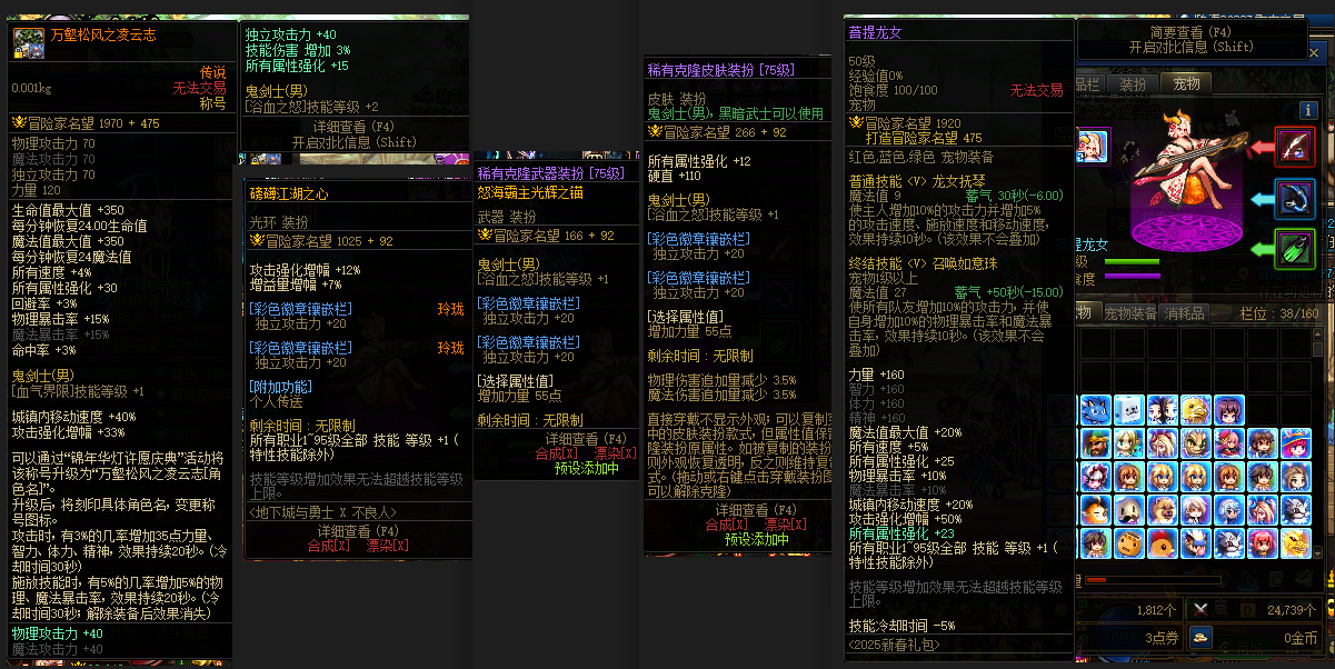 【XM】7619【精品连体】跨1【10套25年新春礼包,10套24年春节礼包,4套龙袍】【带毕业太初武器灭龙剑巴鲁姆克】【收集箱已满】【7+4+9+6+0+0+1+7+4】【8w剑魂带25年双至尊大半身12半身11武器13,7.2w刃影带24年双至尊全身红11,5.1w男大枪全身红11武器13,5.6w小魔女全身红10耳环红12,3.7w狂战士全身红10,3.3w妖护使全身红10,3.5w男漫游全身多件红10,+15个2-3w奶C连体】【22个满级角色,未央破凶1阶段,团本深渊首选】