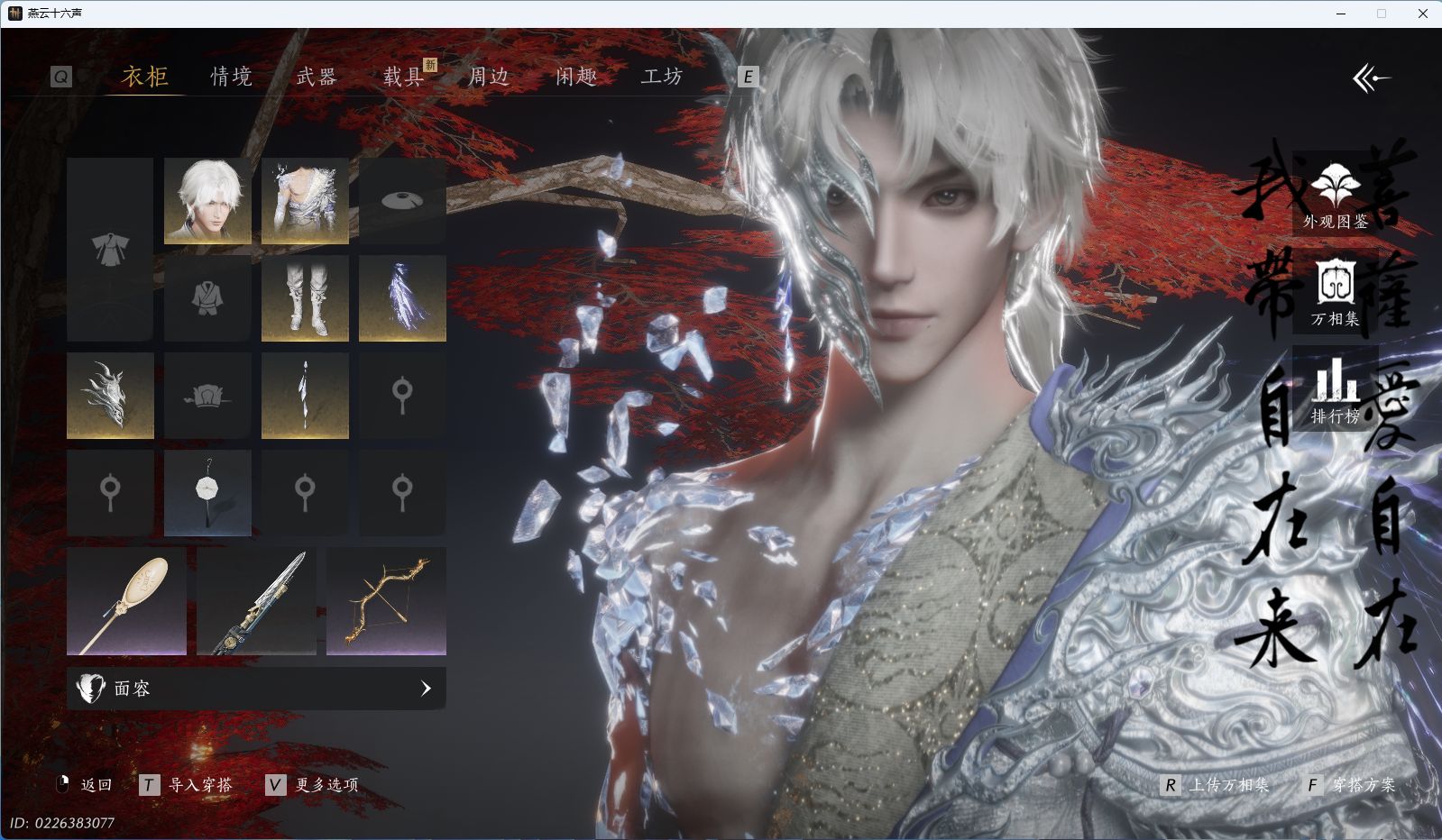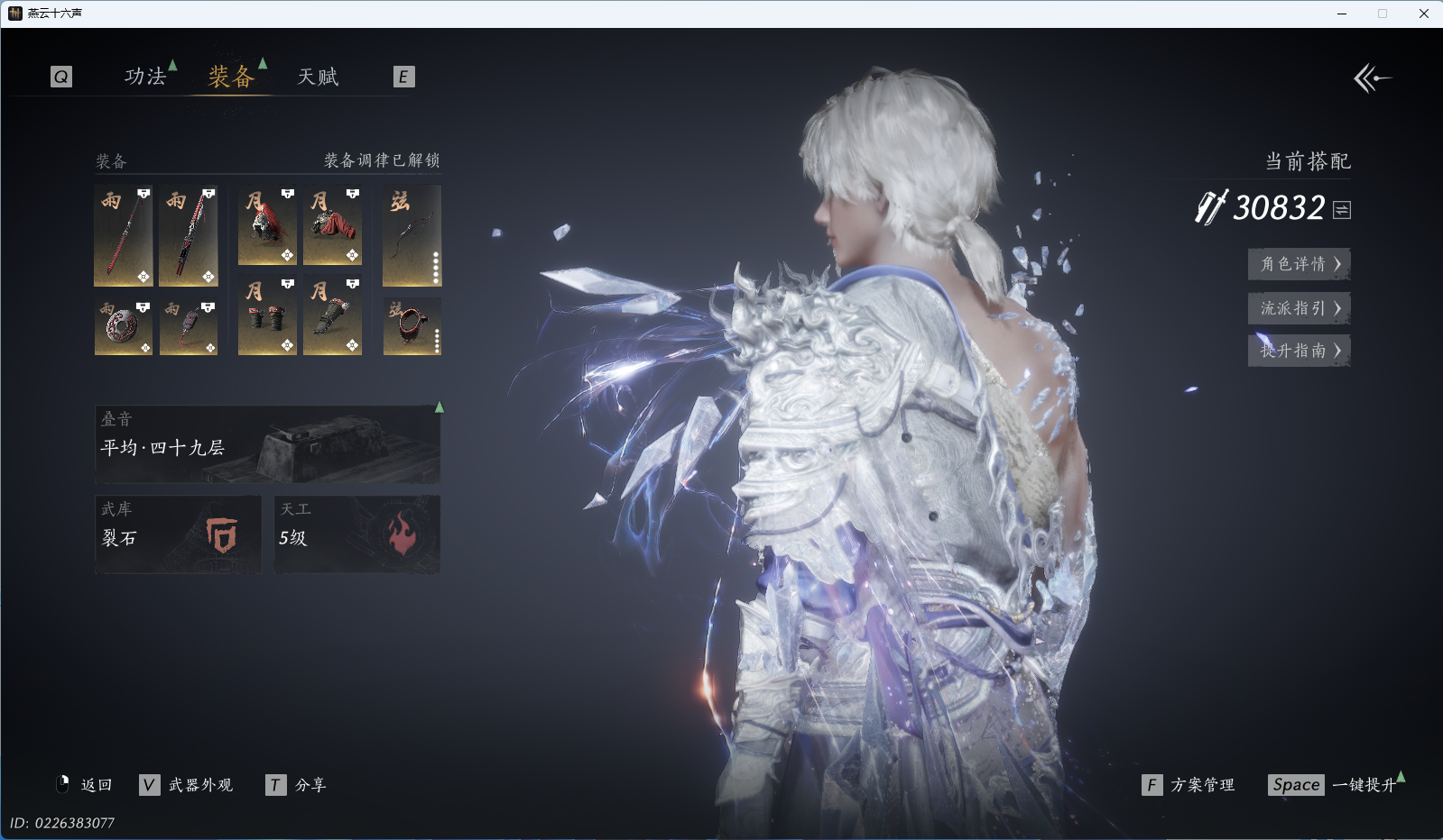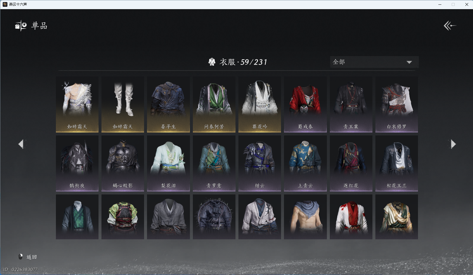 商品描述: 【如碎霜天,云深归处,5套258时装,心法6655】 风华值27285 武林造诣(鹅)30832 已用八音窍数量3 未用八音窍数量0 等级95 角色性别【文本】男 【绝境】 【无换绑CD】 【未绑定或可换绑】 【未注册】 【不支持人脸包赔】 【男】 【无】 【ios】 【是】 【是】 【否】 稀有套装1 稀有发型1 套装5 稀有套装:如碎霜天; 稀有发型:云深归处; 套装:夜郎幽问,蝎心蛟影,鹊衔夜,风花雾,蜀戏春;
