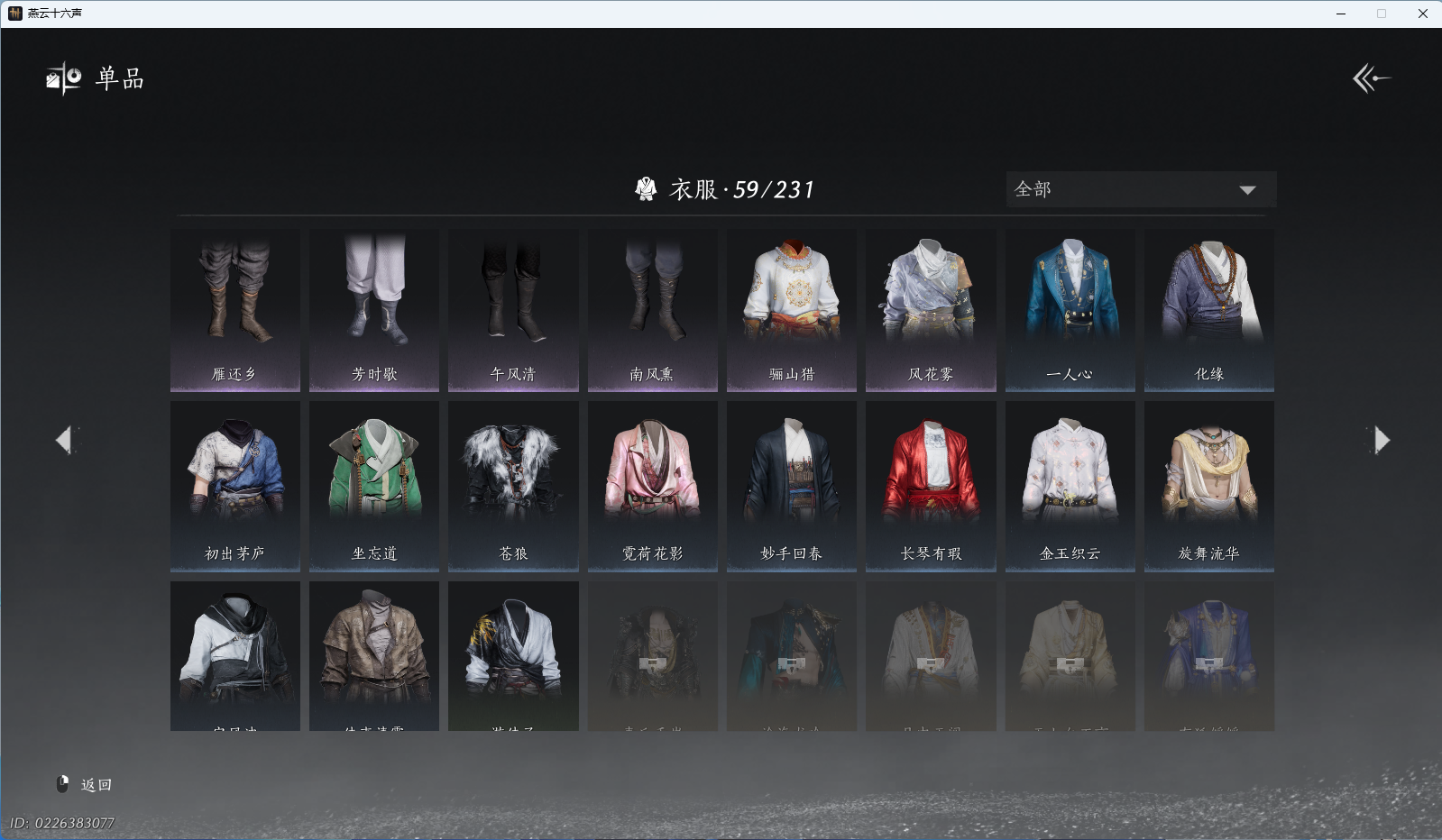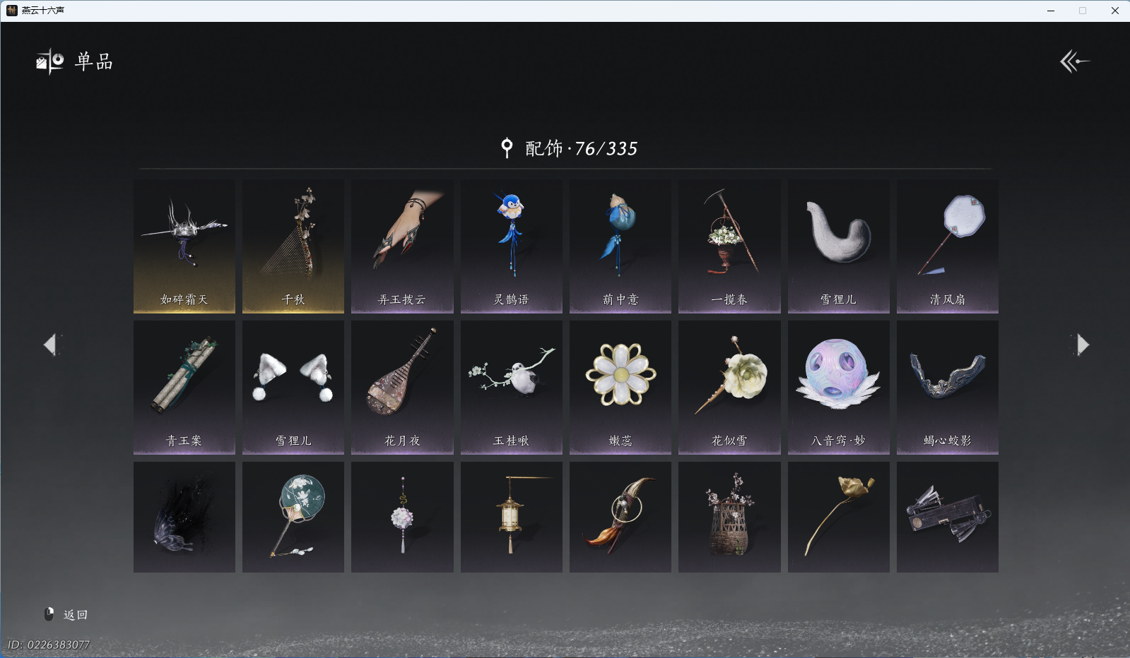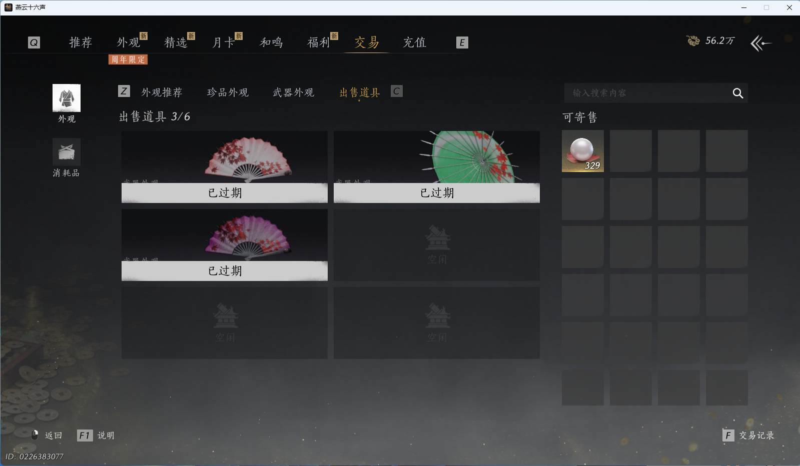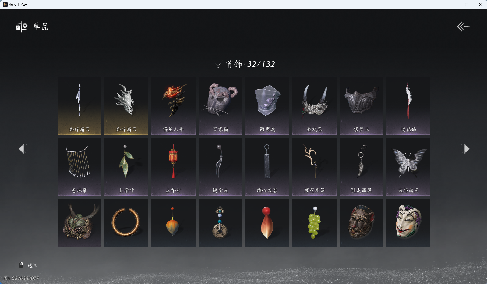 XY-076654477 角色性别【文本】女 【绝境】 【有换绑CD】 【不可换绑】 【未注册】 【不支持人脸包赔】 【女】 【是】 【是】 【否】XY-076643637 风华值21989 武林造诣(鹅)35550 已用八音窍数量3 未用八音窍数量0 等级100 角色等级100 角色性别【文本】男 【无换绑CD】 【绝境】 【无冷却】 【不支持人脸包赔】 【男】 【手机帐号】 【网易手机账号】 【是】 【是】 【未拥有】 【已知晓】 【自己上传】 稀有套装3 稀有武学奇术1 套装14 武学奇术1 稀有套装:有狐绥绥,乌纱红漪,晏平生; 稀有武学奇术:一雷惊蛰; 套装:清河强者,金池鲤,翠羽顾,江湖客,逐红花,一心三藏,丹雀,午风清,雁还乡,射虎南山,宿露轻盈,驰走西风,相思曲,云中锦书; 武学奇术:墨泼风;