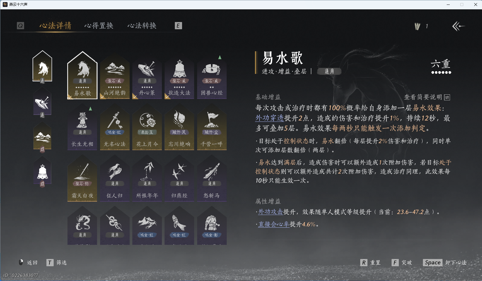 XY-076645101 风华值39611 武林造诣(鹅)34120 已用八音窍数量8 未用八音窍数量0 等级100 角色性别【文本】男 【绝境】 【无换绑CD】 【未注册】 【男】 【是】 【是】