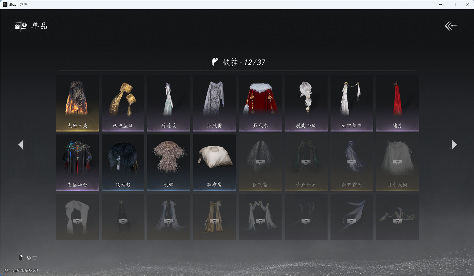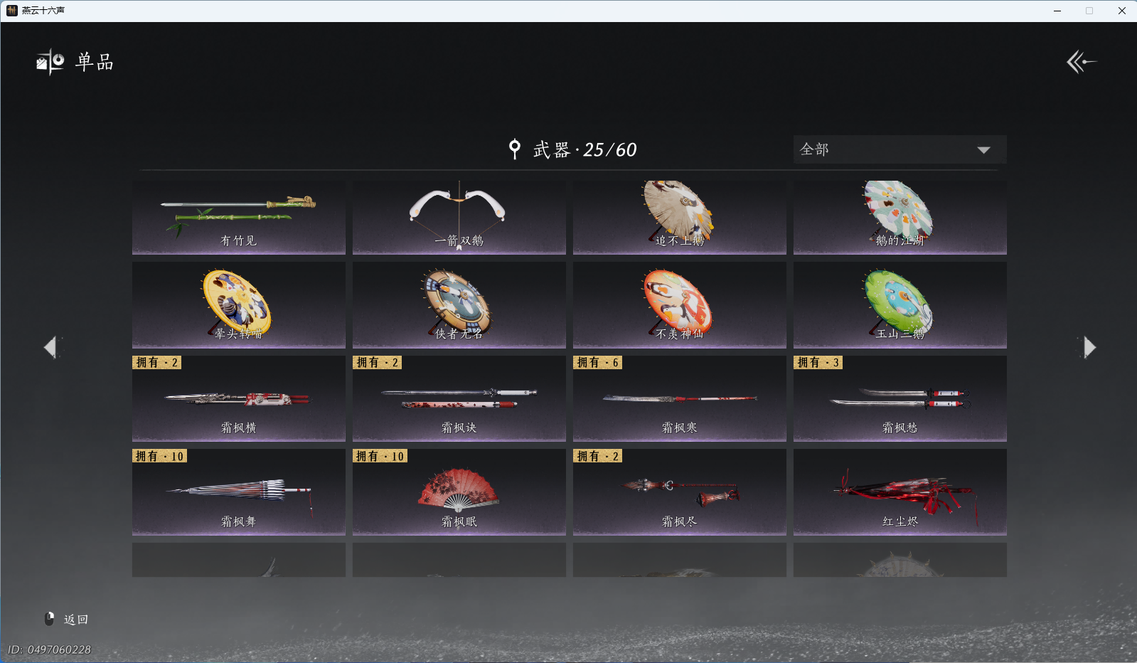 XY-076654477 角色性别【文本】女 【绝境】 【有换绑CD】 【不可换绑】 【未注册】 【不支持人脸包赔】 【女】 【是】 【是】 【否】XY-076643637 风华值21989 武林造诣(鹅)35550 已用八音窍数量3 未用八音窍数量0 等级100 角色等级100 角色性别【文本】男 【无换绑CD】 【绝境】 【无冷却】 【不支持人脸包赔】 【男】 【手机帐号】 【网易手机账号】 【是】 【是】 【未拥有】 【已知晓】 【自己上传】 稀有套装3 稀有武学奇术1 套装14 武学奇术1 稀有套装:有狐绥绥,乌纱红漪,晏平生; 稀有武学奇术:一雷惊蛰; 套装:清河强者,金池鲤,翠羽顾,江湖客,逐红花,一心三藏,丹雀,午风清,雁还乡,射虎南山,宿露轻盈,驰走西风,相思曲,云中锦书; 武学奇术:墨泼风;