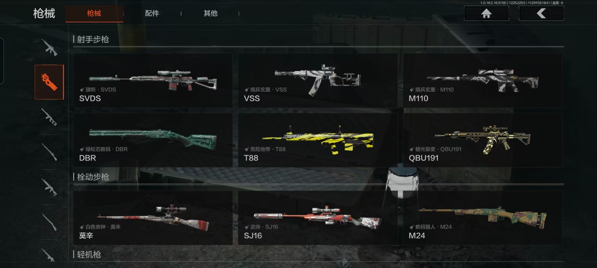 商品描述:库存价值59.7 2近战武器 5金枪皮 可修改实名 【柯恩币数量】2060【近战武器】工兵铲,裁决手杖剑【金色枪皮】棱光裂变·QBU191,利齿风暴·MPX,旧王圣谕·QBZ191,伸冤者迷踪·M4A1,冬夜·AK12【紫色枪皮】武侍·SJ16,利齿风暴·T79,旗帜·SVDS,火力倾泻·RPD,棱光裂变·ACE31,棱光裂变·AKM,典礼武备·M249,典礼武备·MCX,禁止访问·UMP45,火绒草·AUG,和平之手·FAL,神锋·Vector45,灰鼠幻歌·P90,掌中盾·MP5,白色丧钟·莫辛,敬伙伴·M16,缟兵玄墨·M110,缟兵玄墨·VSS【角色装扮(紫)】都市夜影套装
