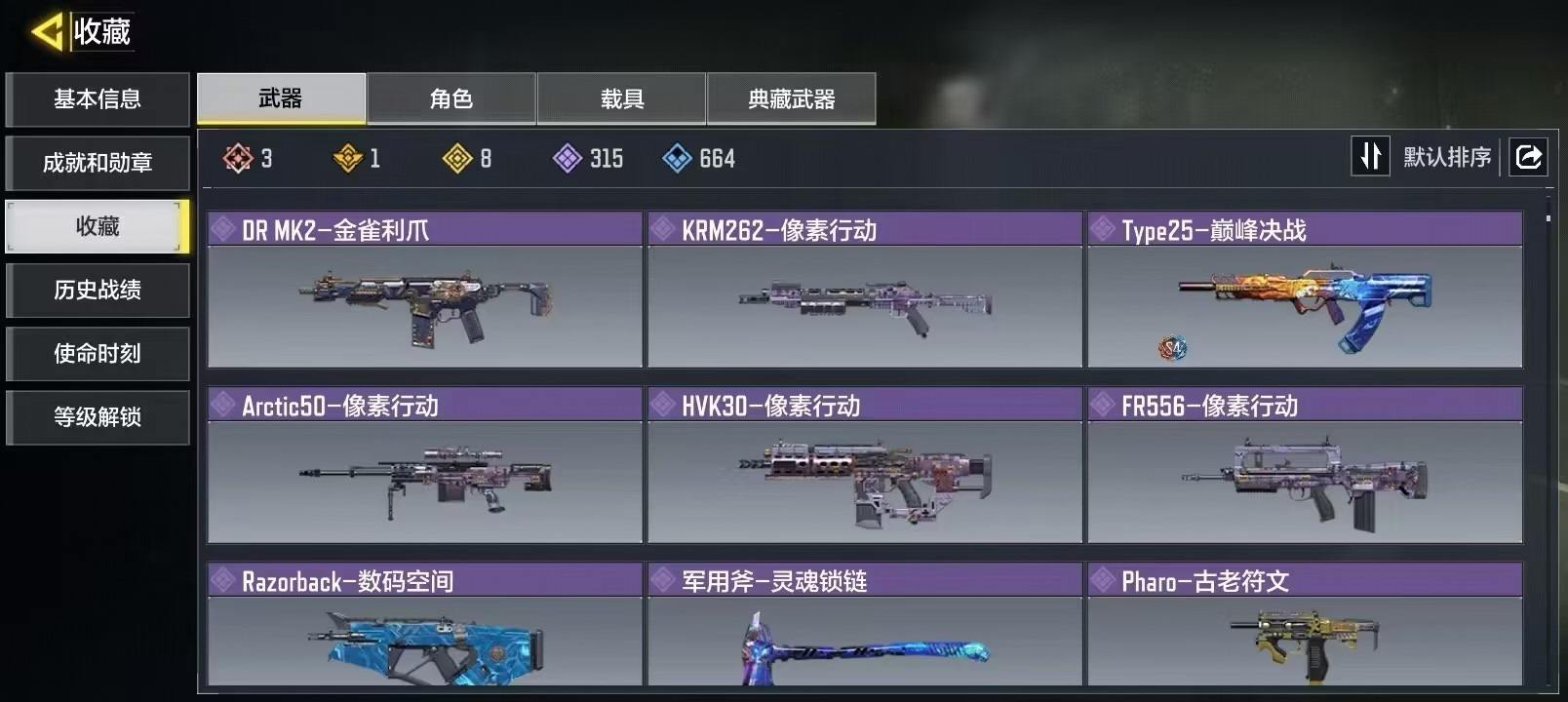 MHZ2415【7红2满12金】安卓Q-等级400-史诗枪械522 【7神话】AMR-亚特兰蒂斯(满级) Kilo 141-暗夜奏鸣曲(满级) M13-黑耀星辰 Switchblade X9-瞬影斩决 Krig6-冰霜巨龙 Fennec-无畏 AK117-熔岩 【12传说】 AN94-毁灭浪潮 十字弓-动能电流 Arctic50-青眸白虎 S36-甜心诱惑 DLQ33-先进火力 唐刀-白月魁 Type25-赤焰复仇 SA80-狂暴冲锋 电棍-永恒炽热 CR56-回音律动 AK47-火箭炮 飞翼浮游炮-v高达