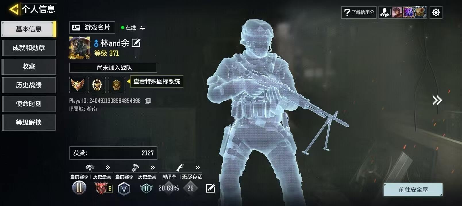 HXS229【2神话4传说】有二次 安q使命 2神话 4传说 角色等级263 段位白银V【2神话 4传说 242史诗枪皮 67史诗角色 26史诗载具】AS VAL-双刃剑圣 DLQ33-红莲天诛 AN94-毁灭浪潮 AK117-炫彩冬日 M4-皇家黑魂 AKBP-塞壬律曲