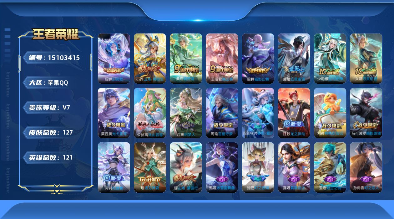 商品描述:[15103415]XR44369-女号-无二次-无违规-苹果Q-V7-最强王者段位-121英雄-127皮肤-1典藏皮肤-6传说-49史诗【英雄全皮】:孙权全皮,空空儿全皮,影全皮【荣耀典藏】:貂蝉幻阙歌【传说皮肤】:后羿神树通天,王昭君映山客,桑启鸣野蒿,小乔山海琳琅生,貂蝉猫影幻舞,虞姬云霓雀翎【限定皮肤】:狄仁杰阴阳师,小乔山海琳琅生,赵云皇家上将,妲己时之彼端,孙尚香蔷薇恋人,庄周高山流水,马可波罗暗影游猎,狄仁杰魔术师,项羽海滩派对,貂蝉逐梦之音,王昭君午后时光,李元芳匿光侦查者,米莱狄胡桃异想国,瑶山海碧波行,伽罗天狼溯光者,西施玲珑珍味,鲁班大师探海日志,阿古朵江河有灵,张良古海寻踪,鬼谷子天穹祈灯,沈梦溪龙舞盛年,镜青焰无极【年限皮肤】:瑶山海碧波行,小乔山海琳琅生【赛季限定】:张良古海寻踪,鲁班大师探海日志,鬼谷子天穹祈灯【战令限定】:马可波罗暗影游猎,王昭君午后时光,米莱狄胡桃异想国,西施玲珑珍味,镜青焰无极【史诗皮肤】:露娜紫霞仙子,赵云皇家上将,赵云未来纪元,甄姬冰雪圆舞曲,狄仁杰魔术师,宫本武藏鬼剑武藏,孙尚香蔷薇恋人,孙尚香水果甜心,妲己魅力维加斯,妲己女仆咖啡,刘禅绅士熊喵,张飞乱世虎臣,貂蝉逐梦之音,小乔缤纷独角兽,兰陵王暗隐猎兽者,亚瑟心灵战警,雅典娜冰冠公主,安琪拉心灵骇客,蔡文姬舞动绿茵,刘禅天才门将,李元芳逐浪之夏,白起星夜王子,妲己时之彼端,大乔白蛇,小乔青蛇,瑶遇见神鹿,孙尚香时之恋人,马可波罗暗影游猎,米莱狄胡桃异想国,西施诗语江南,伽罗天狼溯光者,庄周高山流水,瑶山海碧波行,杨玉环银翎春语,李元芳匿光侦查者,阿古朵江河有灵,镜青焰无极,亚连破空之剑,孙膑茶境仙,阿轲化蝶舞,刘禅鸭鸭历险记,狂铁龙之律动,百里守约雪豹霜爪,周瑜百相守梦,西施织梦人,公孙离涂山容容,莱西奥光弋星穹,女娲万灵启世,少司缘巫礼祀神【其他皮肤】:项羽海滩派对,露娜哥特玫瑰,赵云忍炎影,安琪拉玩偶对对碰,孙膑天使之翼,亚瑟死亡骑士,达摩拳王,甄姬花好人间,狄仁杰阴阳师,狂铁命运角斗场,孙尚香沉稳之力,大乔守护之力,明世隐虹云星官,小乔丁香结,孙膑归虚梦演,鲁班七号黑桃队长,典韦铁甲之心,马可波罗潮玩牛仔,王昭君午后时光,鲁班大师探海日志,西施玲珑珍味,姬小满零食大作战,李元芳妄想特派,张良古海寻踪,海月王牌新星,鬼谷子天穹祈灯,朵莉亚金色潮汐,沈梦