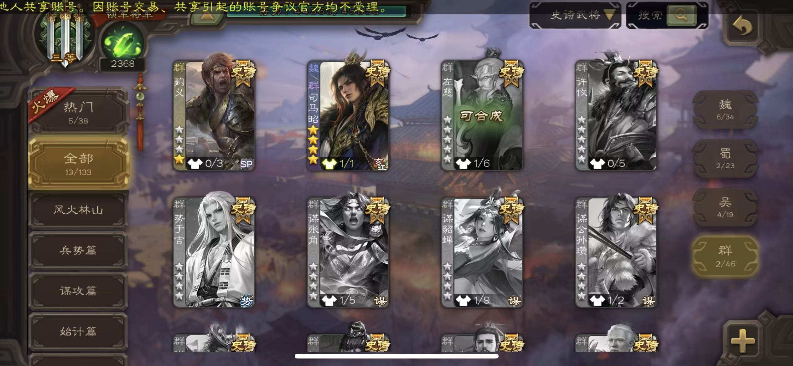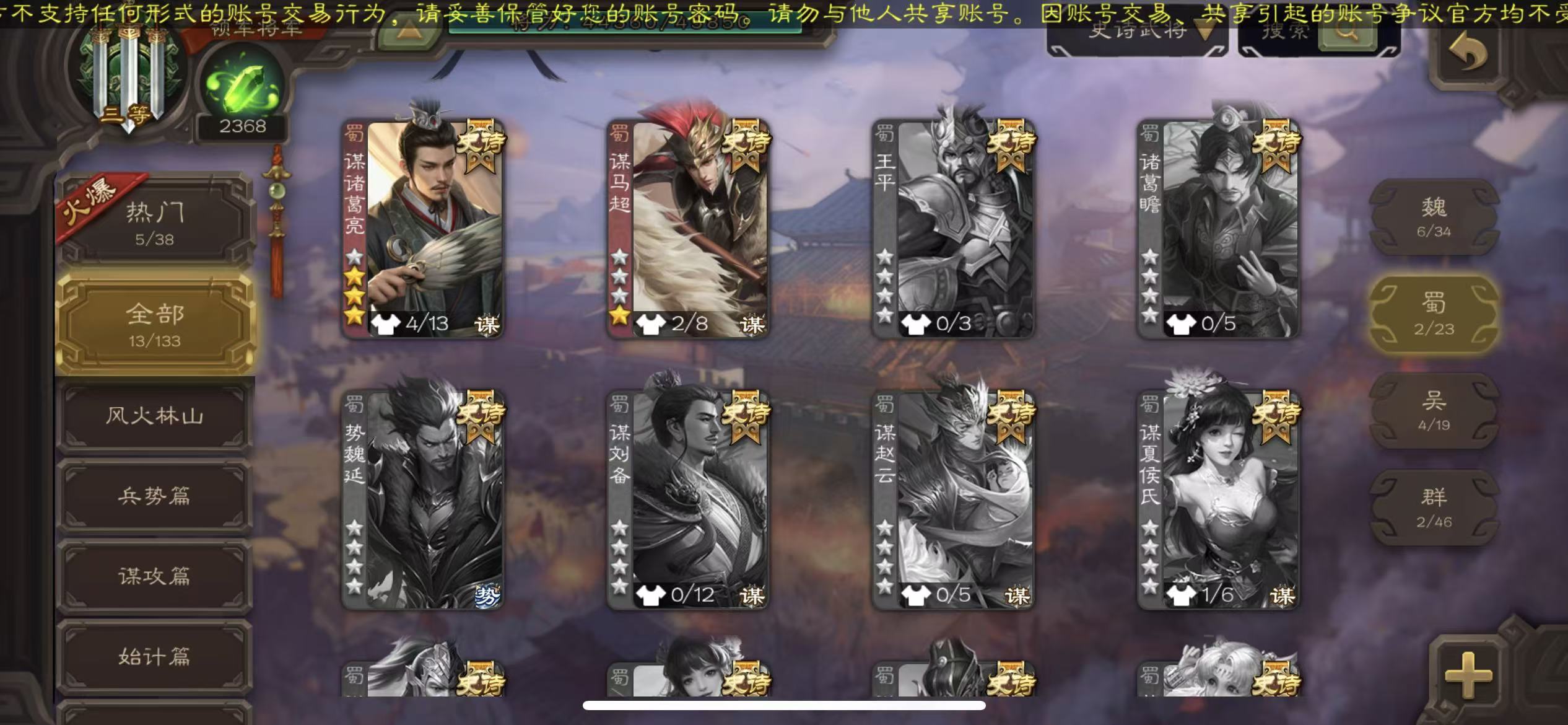 商品描述:领军14史诗动司马昭半动谋诸葛亮骆驼势董昭动谋陆逊大宝戏子白马