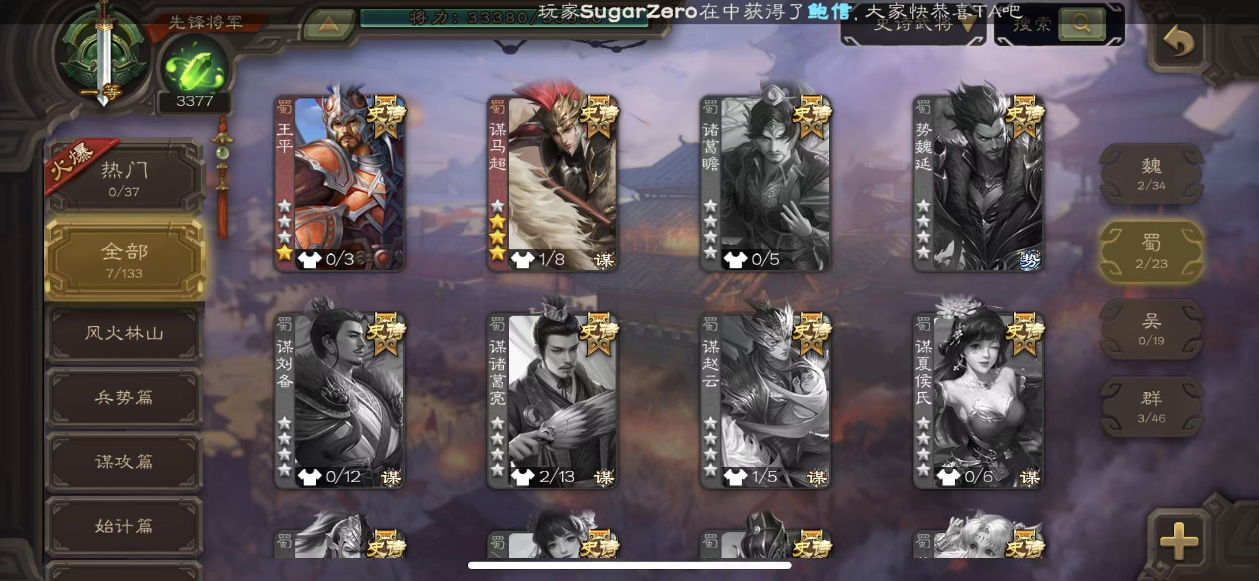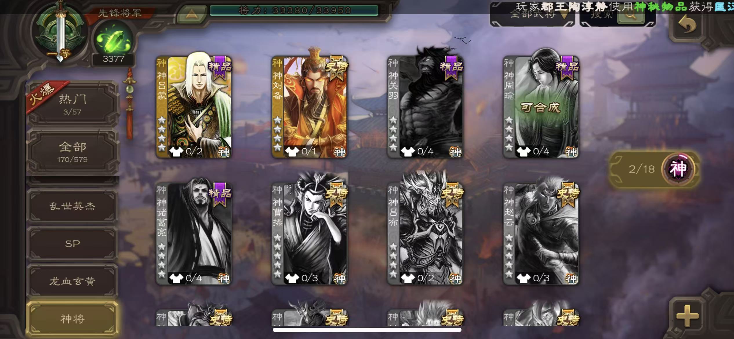 商品描述:先锋8史诗动态司马昭谋马超神刘备公孙康三卡4万羽毛3000将魂
