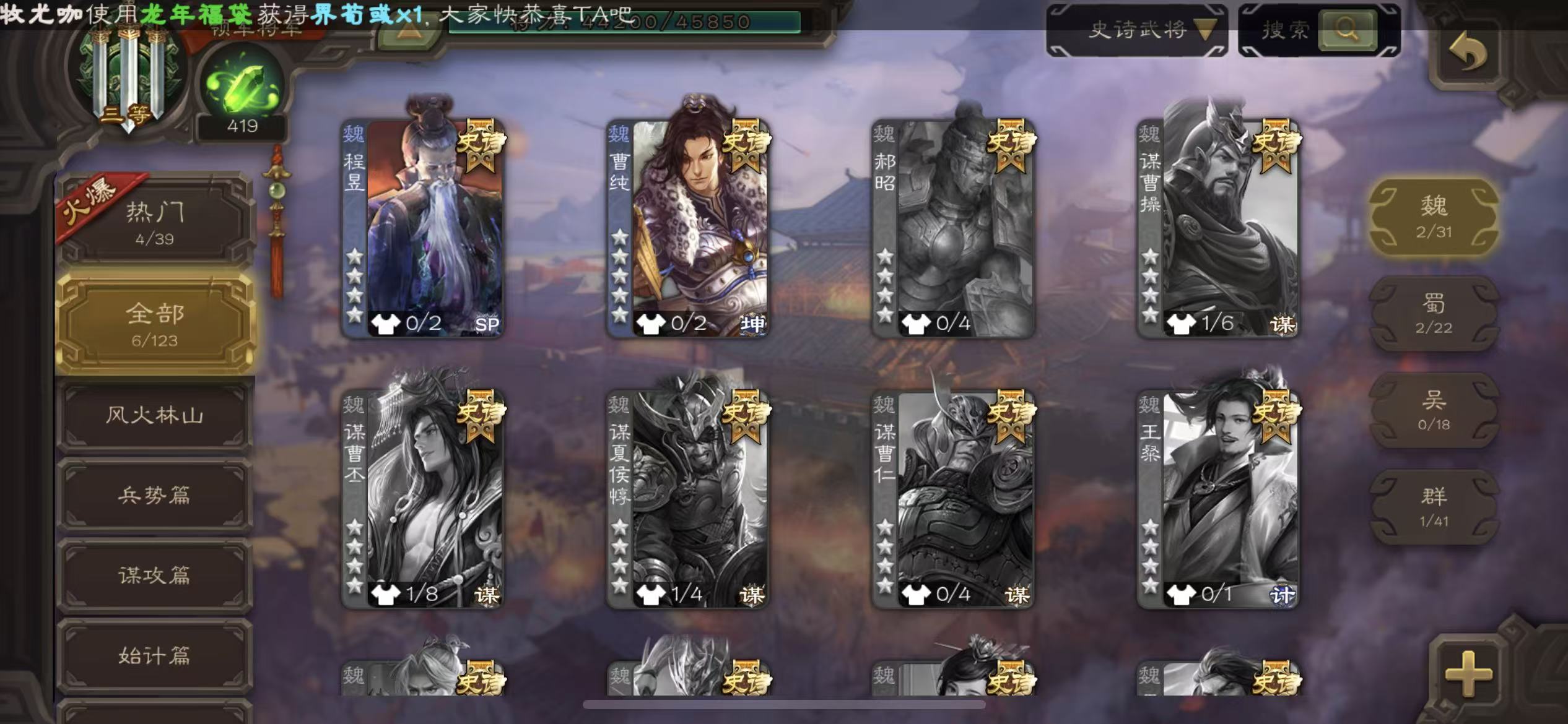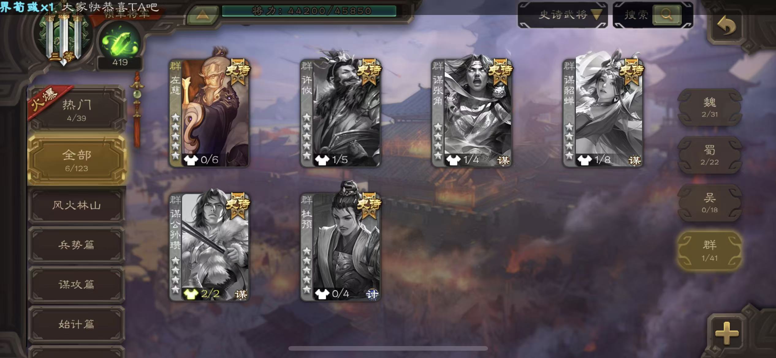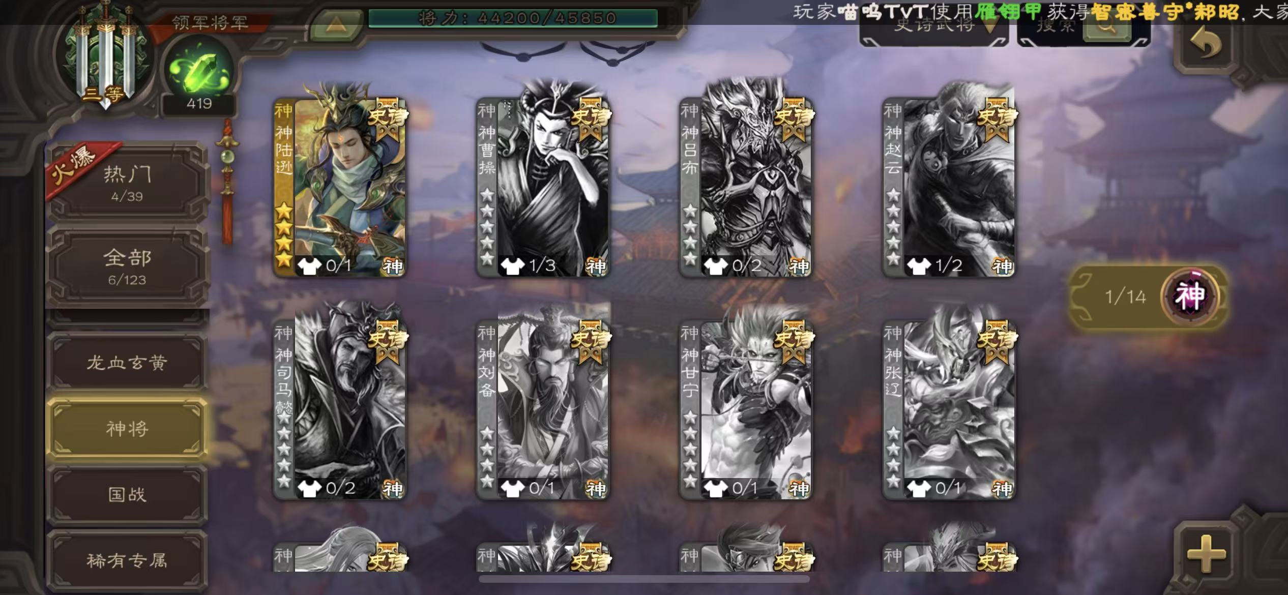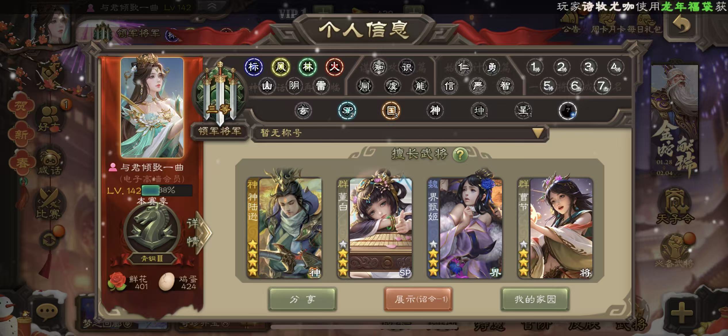 商品描述: 领军神陆逊6史诗曹纯三卡400将魂