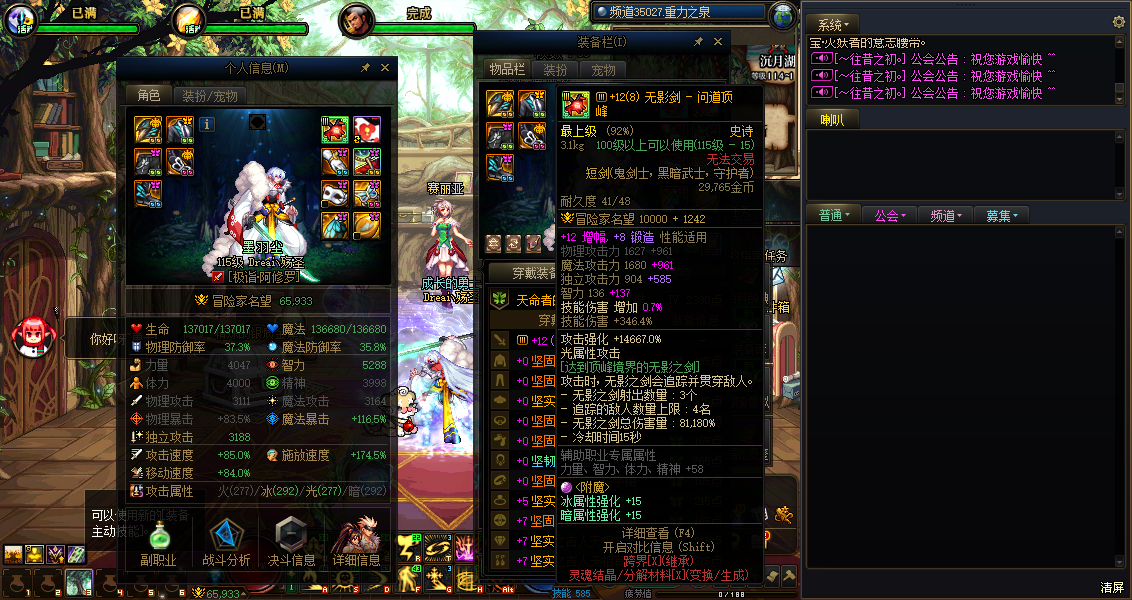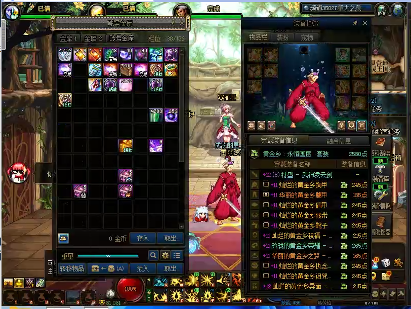 五星精品包赔号-助手:421269303【透明龙袍金闪闪强化15毕业太初金刀武器耳环红12全身红10红11增幅打造剑鬼-龙袍红10女气功!背包接近1000个虚无之魂和很多灵魂资源!30多头角色可c可搬砖】