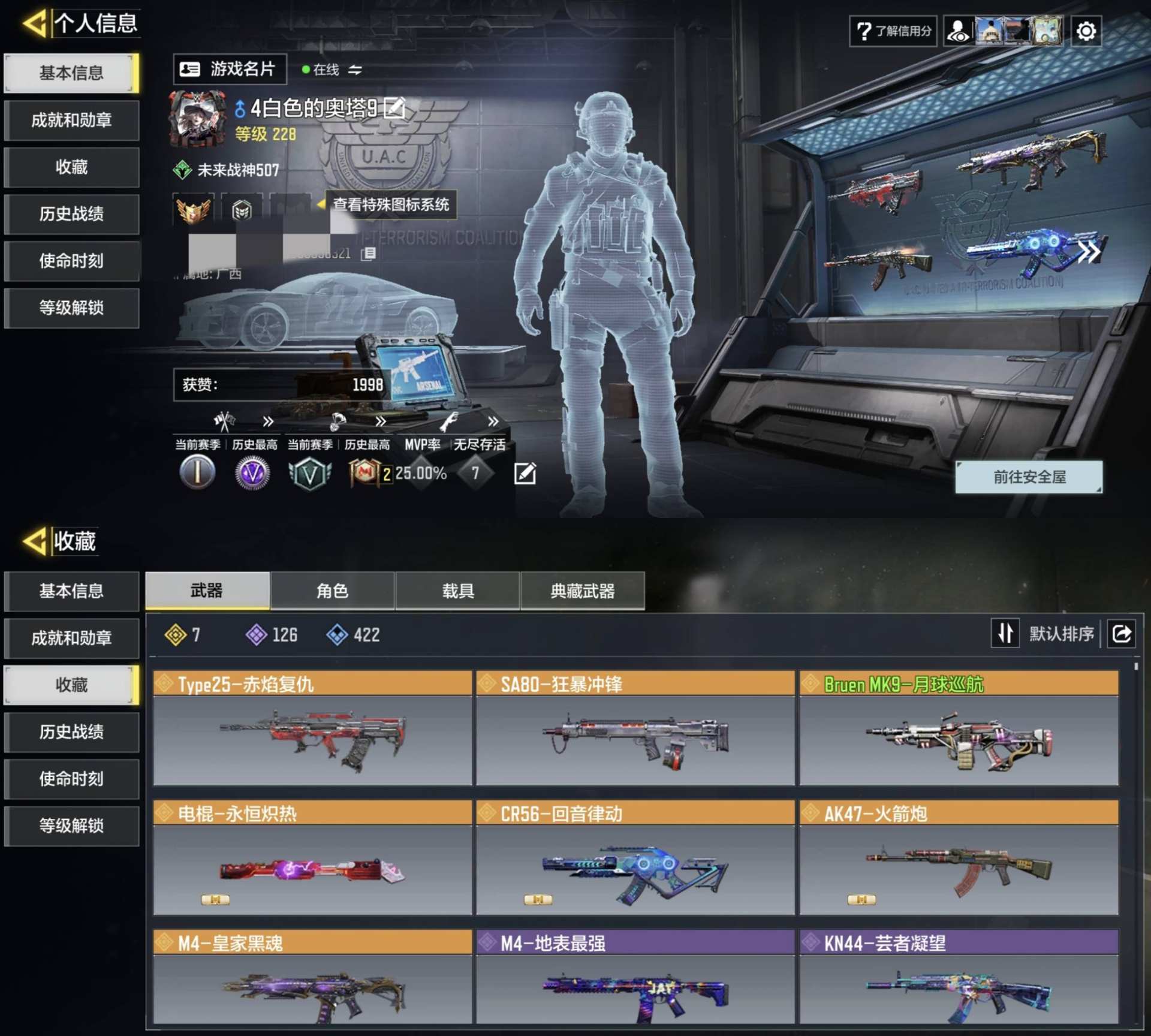 [16477398]H6744有二次 安卓Q-段位黄金 378级 【2神话】 Type 19-丹青万壑 5级 Oden-神圣惩戒 1级 【传说】 HDR-狂笑终章 电棍-永恒炽热 CR56-回音律动 Locus-红色彗星 AK47-火箭炮 飞翼浮游炮-高达 【153史诗309普通武器46角色28载具】