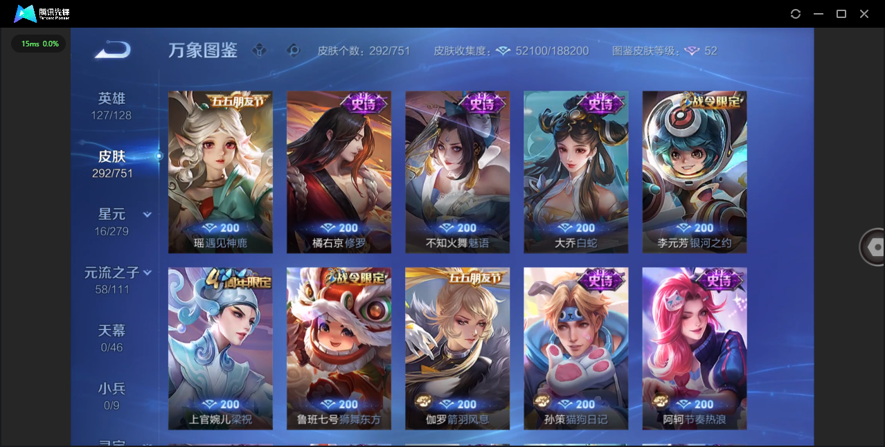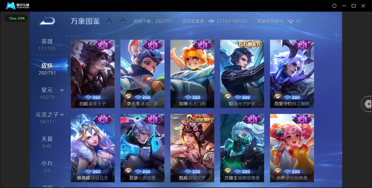 【QQ(安卓)】贵族0-贵族积分0万-0英雄-0皮肤 【抢先服】2万金币+回归150级铭文+改名卡