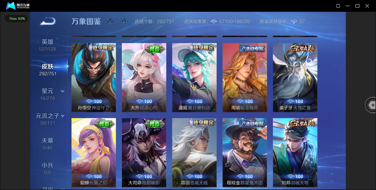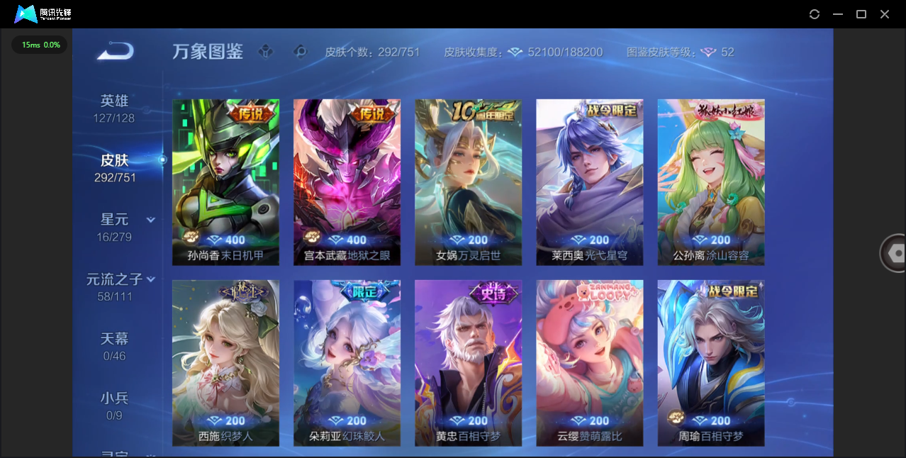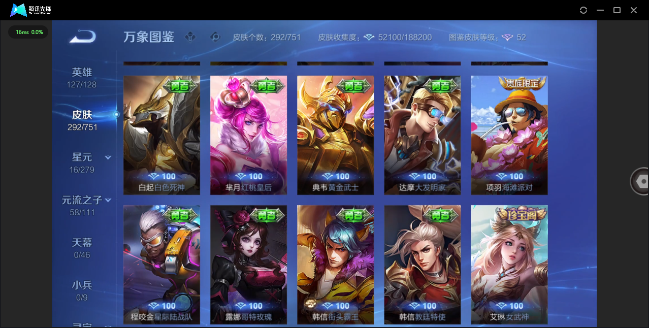 商品描述:安卓微信/绝世王者/1典藏/0珍品无双/1无双/3珍品传说/37传说/97史诗/9稀有英雄 【3 珍品传说】酷洛米之心 安琪拉,大耳狗之梦 瑶,器灵·落星盏 嫦娥, 【1 典藏皮肤】天鹅之梦 小乔, 【1 无双皮肤】离恨烟 公孙离, 【37 传说皮肤】枫霜尽 橘右京,启明星使 虞姬,碎云 百里守约,逐花归海 澜,电玩·雷克斯 澜,无双飞将 马超,九山相柳 司马懿,李逍遥 曜,深海之息 马可波罗,诗剑行 李白,落雪白狼 亚连,记忆之芯 公孙离,地狱之眼 宫本武藏,祈雪灵祝 公孙离,鹤羽星尊 诸葛亮,炽阳神光 镜,霜月吟 露娜,乞巧织情 王昭君,乘龙·问璇玑 孙尚香,绯月行 不知火舞,末日机甲 孙尚香,淬星耀世 赵云,绛天战甲 铠,至美·化雀舞 甄姬,千山共赴 干将莫邪,星之鸣奏 杨玉环,愿照·九州拓 澜,愿照·众生和 妲己,愿照·福禄聚 蔡文姬,幻光神枪 云缨,愿照·山河定 司空震,愿照·岁时盈 虞姬,愿照·千秋盛 女娲,曦玄引 貂蝉,鸣野蒿 桑启,云诺千山 公孙离,续相思 西施, 【97 史诗皮肤】末日机甲 吕布,紫霞仙子 露娜,百解令 蒙犽,高山流水 庄周,银河之约 李元芳,暗渊魔法 司马懿,乘龙·忆丹青 大乔,暗影游猎 马可波罗,狮舞东方 鲁班七号,妄想食味 姬小满,德古拉伯爵 刘邦,心灵战警 亚瑟,五谷丰年 鬼谷子,银翎春语 杨玉环,诗语江南 西施,无心 元歌,鬼剑武藏 宫本武藏,百相守梦 黄忠,幻珠鲛人 朵莉亚,星夜王子 白起,至美·乘鲤谣 西施,地狱燃心 司空震,顽趣 梦奇,修罗 橘右京,拒霜思 嫦娥,魅力维加斯 妲己,赞萌露比 云缨,滕王阁序 弈星,乐园奇幻夜 钟馗,偶像歌手 王昭君,荣光圣徽 蒙恬,女仆咖啡 妲己,白蛇 大乔,赏金猎手 澜,星界游侠 暃,遇见神鹿 瑶,鹰眼统帅 狄仁杰,白晶晶 芈月,光弋星穹 莱西奥,纤云弄巧 云中君,金属风暴 墨子,特工魅影 百里守约,猫狗日记 孙策,原初追逐者 百里玄策,逐浪之夏 李元芳,未来纪元 赵云,灵蛊蚀心 扁鹊,石田雨龙 后羿,鸭鸭历险记 刘禅,魔术师 狄仁杰,热力回旋 百里玄策,埋骨钱 暃,龙之律动 狂铁,顽岩魄 蒙犽,皇家上将 赵云,冰冠公主 雅典娜,涂山红红 少司缘,战舞者 姬小满,东方月初 大司命,梁祝 上官婉儿,天才门将 刘禅,云间偶戏 元歌,水晶猎龙者 花木兰,涂山容容 公孙离,破空之剑 亚连,心动手记 海诺,青焰无极 镜,魅语 不知火舞,群星魔术团 上官婉儿,浮梦罗烟 海月,浮光幕影 芈月,白龙吟 韩信,夏日便利店 蔡文姬,星界战将 牛魔,永昼 夏洛特,地狱岩魂 廉颇,茶境仙 孙膑,冰雪圆舞曲 甄姬,月团寄思 沈梦溪,千年之狐 李白,节奏热浪 阿轲,织梦人 西施,游园惊梦 甄姬,曙光守护者 铠,万灵启世 女娲,鹤归松栖 赵怀真,箭羽风息 伽罗,百相守梦 周瑜,吟游魔法 明世隐,谪仙醉月 李白,星界特工 马可波罗,缤纷独角兽 小乔,水果甜心 孙尚香,化蝶舞 阿轲,江河有灵 阿古朵,乘风破浪 夏侯惇,暗隐猎兽者 兰陵王