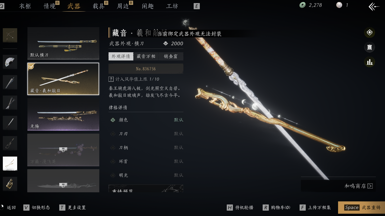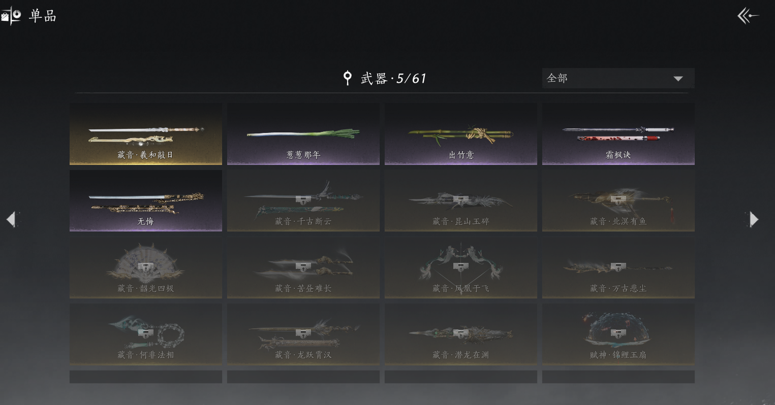 XY-076656654 【聆音绝版套装, 侠名:龙城飞将./剑开天门。竞速号】 风华值39561 武林造诣(鹅)34450 已用八音窍数量2 等级100 角色性别【文本】女 【绝境】 【无换绑CD】 【未绑定或可换绑】 【未注册】 【不支持人脸包赔】 【女】 【无】 【安卓】 【否】 【否】 稀有套装2 稀有武器外观1 套装5 稀有套装:天上白玉京,瑞鹤仙; 稀有武器外观:藏音·北溟有鱼; 套装:剑影藏心,瑞鹤仙,蜀戏春,蝎心蛟影,驰走西风;