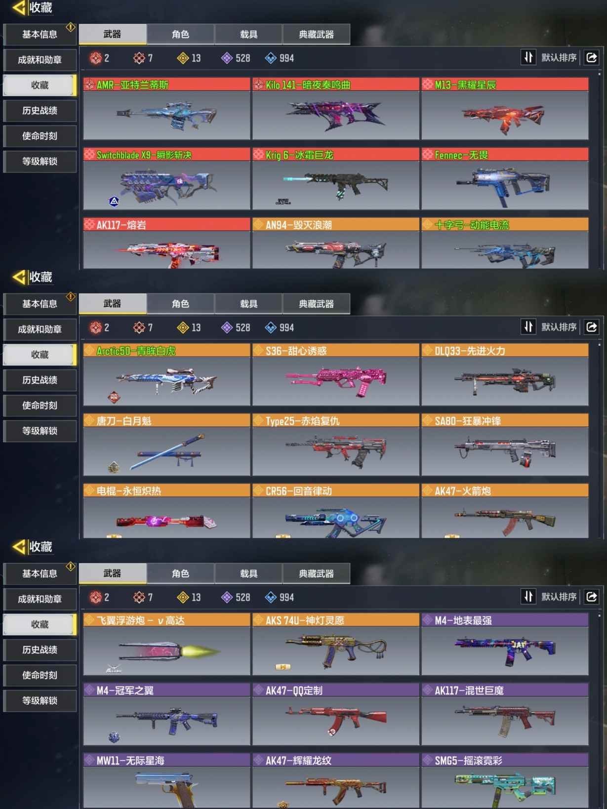 MHZ2415【7红2满12金】安卓Q-等级400-史诗枪械522 【7神话】AMR-亚特兰蒂斯(满级) Kilo 141-暗夜奏鸣曲(满级) M13-黑耀星辰 Switchblade X9-瞬影斩决 Krig6-冰霜巨龙 Fennec-无畏 AK117-熔岩 【12传说】 AN94-毁灭浪潮 十字弓-动能电流 Arctic50-青眸白虎 S36-甜心诱惑 DLQ33-先进火力 唐刀-白月魁 Type25-赤焰复仇 SA80-狂暴冲锋 电棍-永恒炽热 CR56-回音律动 AK47-火箭炮 飞翼浮游炮-v高达