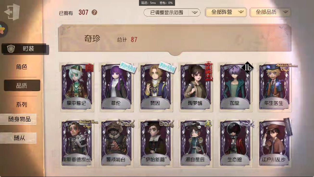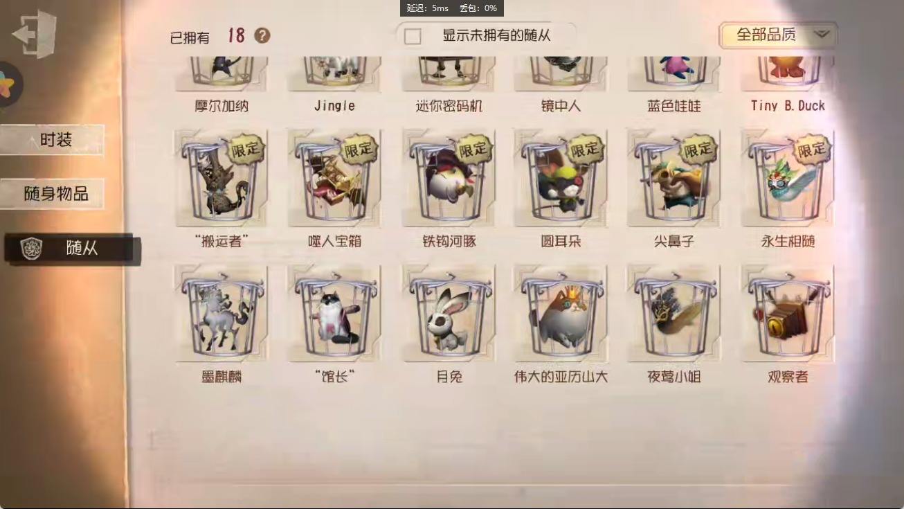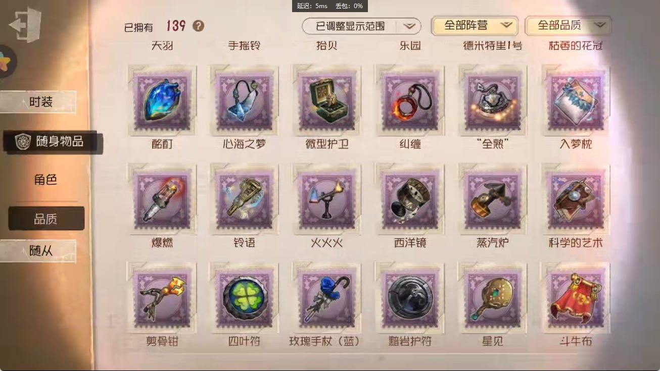 [14374916]安卓官服 手机账号 182时装 8金皮 50紫皮 10随从 55随身物品 【时装】:园丁-源自星辰,园丁- 初晴,爱丽丝·德罗斯-未至之人,爱丽丝·德罗斯-片刻闲暇,医生-永生花,黄衣之主-衣帽架先生,记者-伊布,气象学家-茶歇小姐,梦之女巫-裁缝夫人,红蝶-融化的泪琥珀,摄影师-盛夏光影,雕刻家-善忘的海马体,骑士-艺术品商人,歌剧演员-拂晓女士,作曲家-澄明的理性,爱哭鬼-善恶的本性,骑士-Mentor K,“心理学家”-恒梦,教授-吟游诗人,画家-掌中篆记,调香师-聂莫黎,古董商-陶梦嫣,幸运儿-“未知射线”X,守墓人-冥契 ,入殓师-变彩,病患-休塔尔克,心理学家-菲伦,冒险家-赞因,击球手-无用功G,佣兵-OPH.NAIB,邮差-潘塔龙,火灾调查员-“膨化”,时空之影-“有机磷”,入殓师-“温室”,宿伞之魂-桃面书生,摄影师-“琥珀”,入殓师-记忆之骑,先知-纯白之盐,调香师-Buffy,渔女-鬼脸天蛾,“法罗女士”-芳泽霞,蜘蛛-聚光灯下,记者-梦境中的爱丽丝,“小女孩”-异动指针,小说家-“伊始新篇”,“杰克”-乌骨,调酒师-校对人,“愚人金”-辉锑矿,哭泣小丑-熄灭的太阳,“喧嚣”-星之王,画家-多色印刷,蜡像师-淋浴,魔术师-白胡子,雕刻家-动物女巫,盲女-不愿醒来的女孩,盲女-吉尔达,摄影师-宿醉,“囚徒”-冬蝉,入殓师-“盲区”,入殓师-守钟人【随身物品】:夜星(奇珍),致命的邀请函(稀世),“全熟”(奇珍),纸扎祠堂(稀世),拾贝(奇珍),海风轻语(奇珍),扑克牌(奇珍),喝彩(奇珍),“密约”(奇珍),月光沙漏(奇珍),酩酊(奇珍),法典(奇珍),黄玫瑰之骸(稀世),玫瑰手杖(蓝)(奇珍),白泽玉(奇珍),笔尖柔情(奇珍)