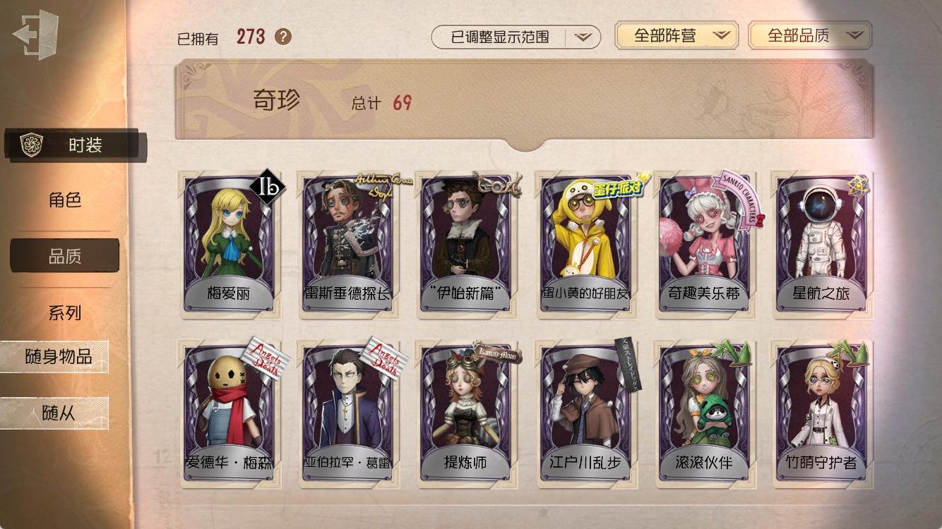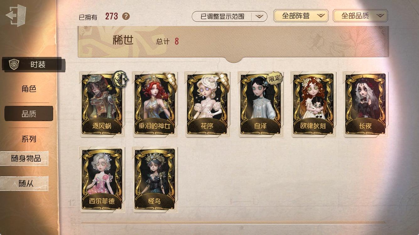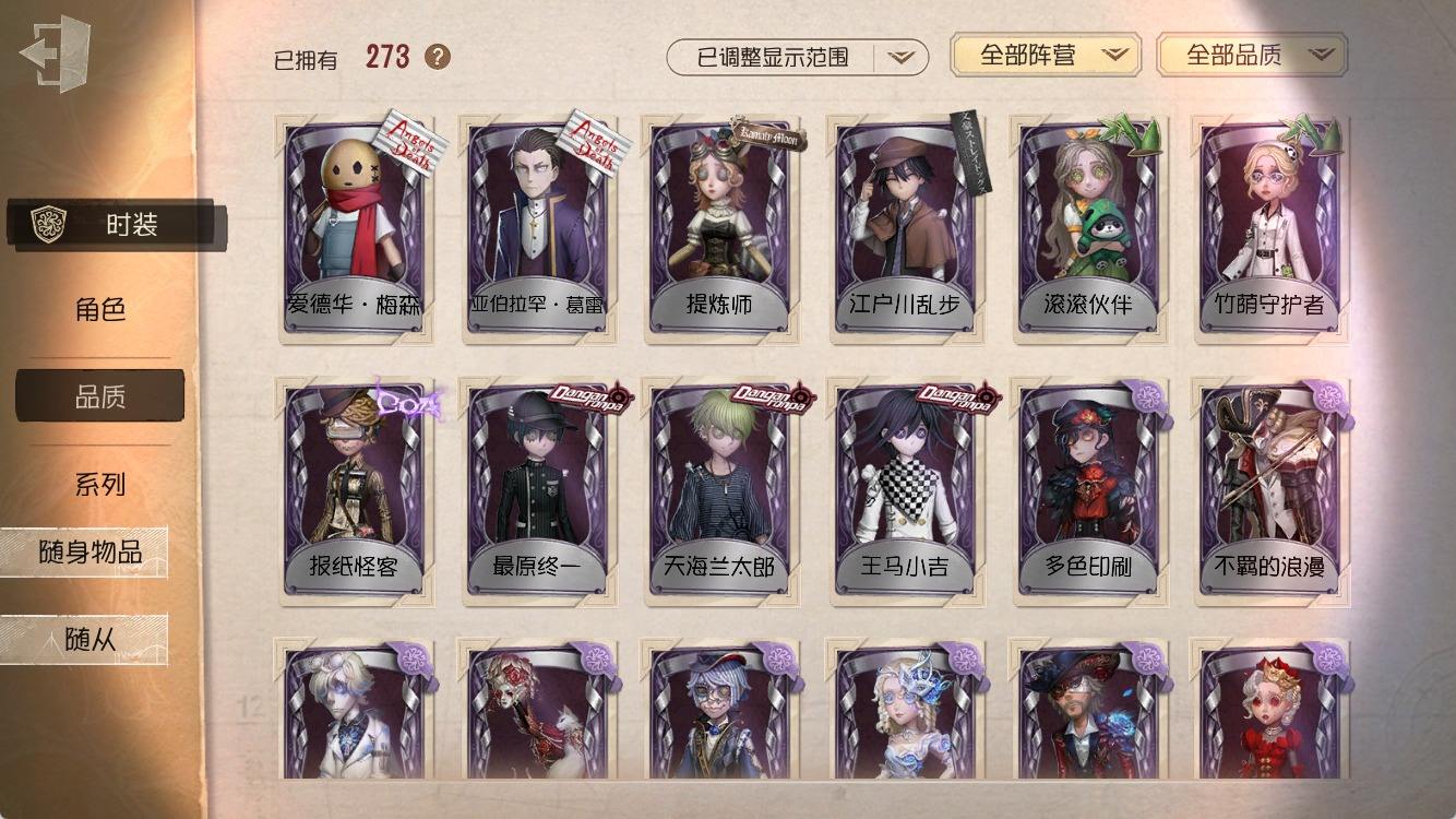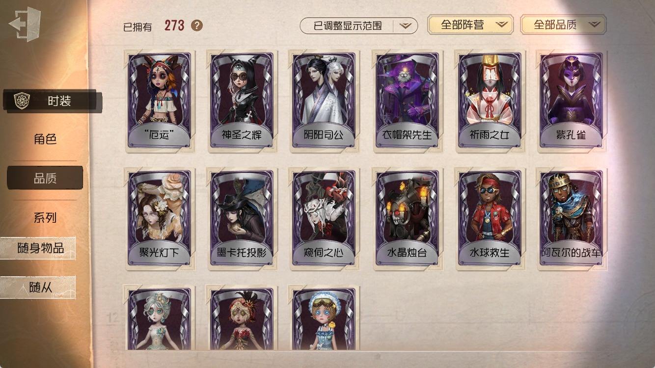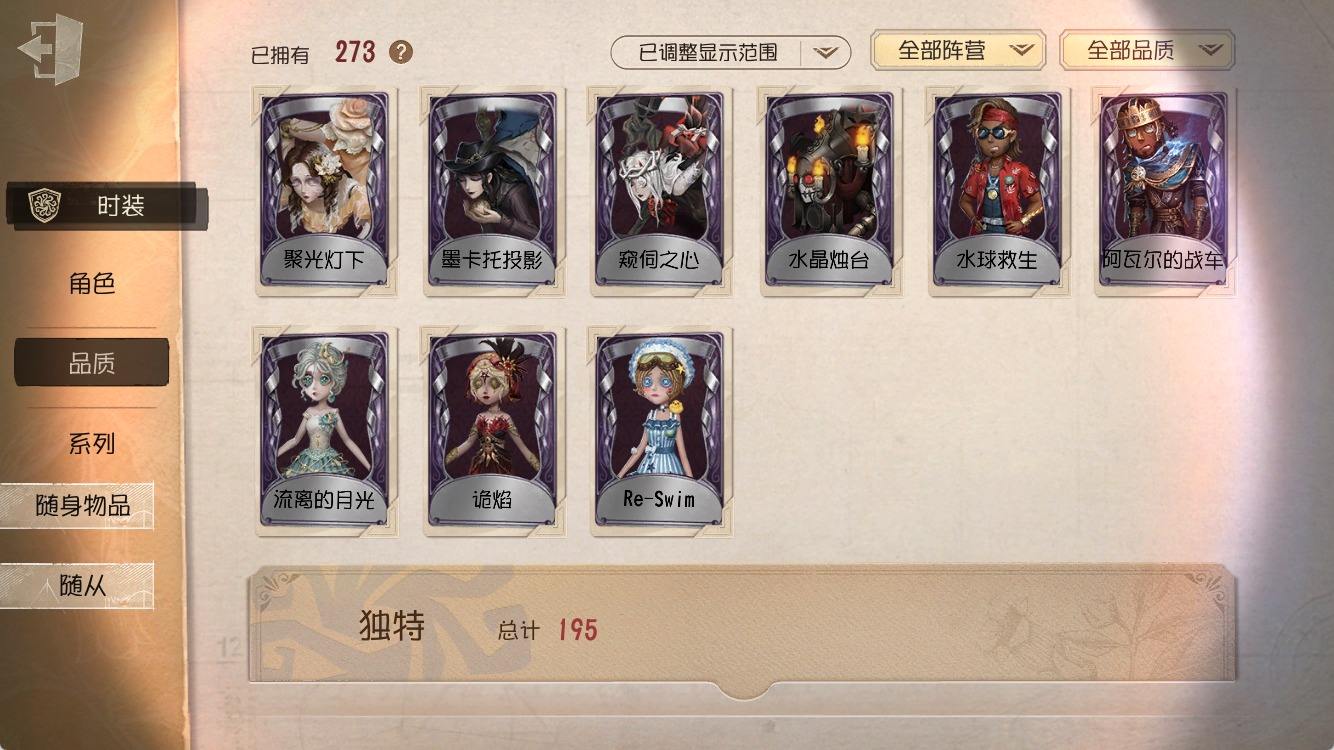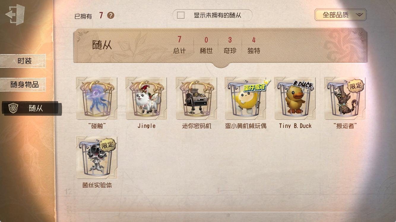 [14374916]安卓官服 手机账号 182时装 8金皮 50紫皮 10随从 55随身物品 【时装】:园丁-源自星辰,园丁- 初晴,爱丽丝·德罗斯-未至之人,爱丽丝·德罗斯-片刻闲暇,医生-永生花,黄衣之主-衣帽架先生,记者-伊布,气象学家-茶歇小姐,梦之女巫-裁缝夫人,红蝶-融化的泪琥珀,摄影师-盛夏光影,雕刻家-善忘的海马体,骑士-艺术品商人,歌剧演员-拂晓女士,作曲家-澄明的理性,爱哭鬼-善恶的本性,骑士-Mentor K,“心理学家”-恒梦,教授-吟游诗人,画家-掌中篆记,调香师-聂莫黎,古董商-陶梦嫣,幸运儿-“未知射线”X,守墓人-冥契 ,入殓师-变彩,病患-休塔尔克,心理学家-菲伦,冒险家-赞因,击球手-无用功G,佣兵-OPH.NAIB,邮差-潘塔龙,火灾调查员-“膨化”,时空之影-“有机磷”,入殓师-“温室”,宿伞之魂-桃面书生,摄影师-“琥珀”,入殓师-记忆之骑,先知-纯白之盐,调香师-Buffy,渔女-鬼脸天蛾,“法罗女士”-芳泽霞,蜘蛛-聚光灯下,记者-梦境中的爱丽丝,“小女孩”-异动指针,小说家-“伊始新篇”,“杰克”-乌骨,调酒师-校对人,“愚人金”-辉锑矿,哭泣小丑-熄灭的太阳,“喧嚣”-星之王,画家-多色印刷,蜡像师-淋浴,魔术师-白胡子,雕刻家-动物女巫,盲女-不愿醒来的女孩,盲女-吉尔达,摄影师-宿醉,“囚徒”-冬蝉,入殓师-“盲区”,入殓师-守钟人【随身物品】:夜星(奇珍),致命的邀请函(稀世),“全熟”(奇珍),纸扎祠堂(稀世),拾贝(奇珍),海风轻语(奇珍),扑克牌(奇珍),喝彩(奇珍),“密约”(奇珍),月光沙漏(奇珍),酩酊(奇珍),法典(奇珍),黄玫瑰之骸(稀世),玫瑰手杖(蓝)(奇珍),白泽玉(奇珍),笔尖柔情(奇珍)