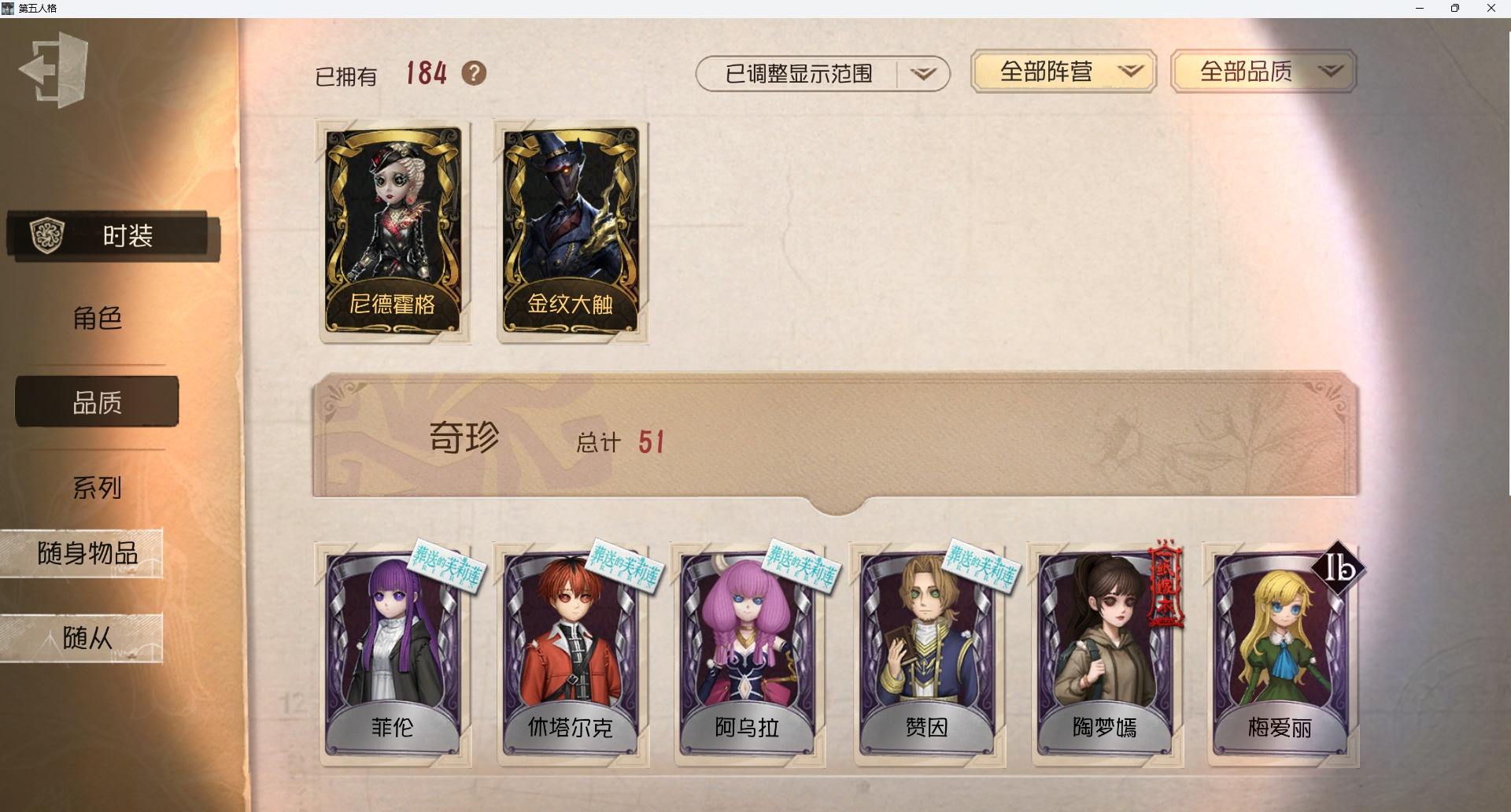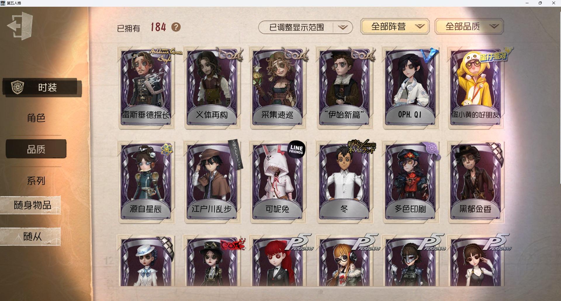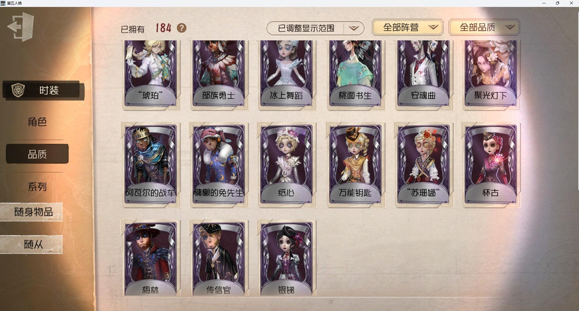 [14028274]OPPO-非账号转移 手机账号 559时装 23金皮 147紫皮 20随从 186随身物品 【时装】:勘探员-盖提亚之遗,爱哭鬼-摩诺,红蝶-壹原侑子,渔女-Chef K,小提琴家-不羁的浪漫,野人-雪原猎人,佣兵-柴郡猫,佣兵-赤井秀一,蜘蛛-花祭,“囚徒”-天海兰太郎,“小女孩”-欧律狄刻,调香师-提炼师,记者-伊布,医生-司药,雕刻家-善忘的海马体,记者-华生小姐,画家-掌中篆记,幸运儿-蛋小黄的好朋友,调香师-Buffy,教授-紧急运输,古董商-菌丝研究,画家-多色印刷,蜘蛛-不息载械,木偶师-义体再构,小说家-“伊始新篇”,击球手-迫降专家,空军-尼德霍格,空军-寒香舞,空军-毛利兰,机械师-不会枯萎的花,机械师-小红帽,26号守卫-蛋壳先生,爱哭鬼-点金,病患-逃罪之人,“杰克”-盛宴伯爵,红夫人-贝拉夫人,红蝶-花嫁,调香师-今夜不再,调香师-Lady K,“小女孩”-滚滚伙伴,医生-罪木蜜柑,幸运儿-苗木诚,幸运儿-拉塔托斯克,孽蜥-窃梦行者,盲女-暗金蛋糕,盲女-吉尔达,梦之女巫-川上富江,“囚徒”-蝰