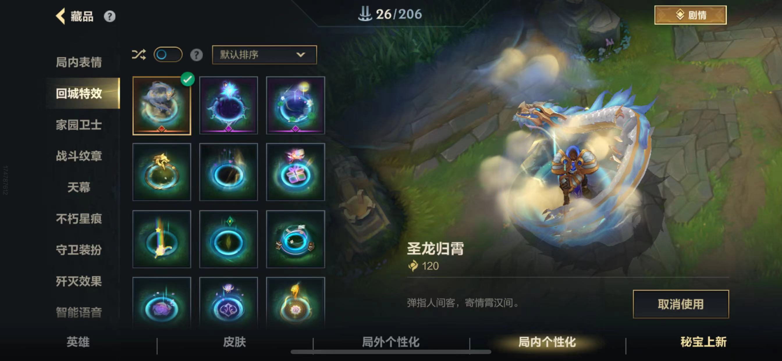 苹果微信区:可二次实名 英雄129 皮肤410 1终极4典藏19神话46传说243史诗 流光翡翠Ⅱ 白龙回城特效 1.5W龙魂币【终极皮肤】1 寻道世尊永恩 【典藏皮肤】4 超武乾坤裁决德莱厄斯 超武乾坤孤拳瑟提 超武乾坤虹影劫 超武乾坤征服莎弥拉 【神话皮肤】19 臻藏水晶玫瑰拉克丝 臻藏御风墨影亚索 至臻星域秘刃泰隆 至臻玉剑传说寒潭夭夭娜美 至臻水晶玫瑰格温 至臻心之钢永恩 至臻玉剑传说武剑仙锐雯 黎明使者破晓之殇佛耶戈