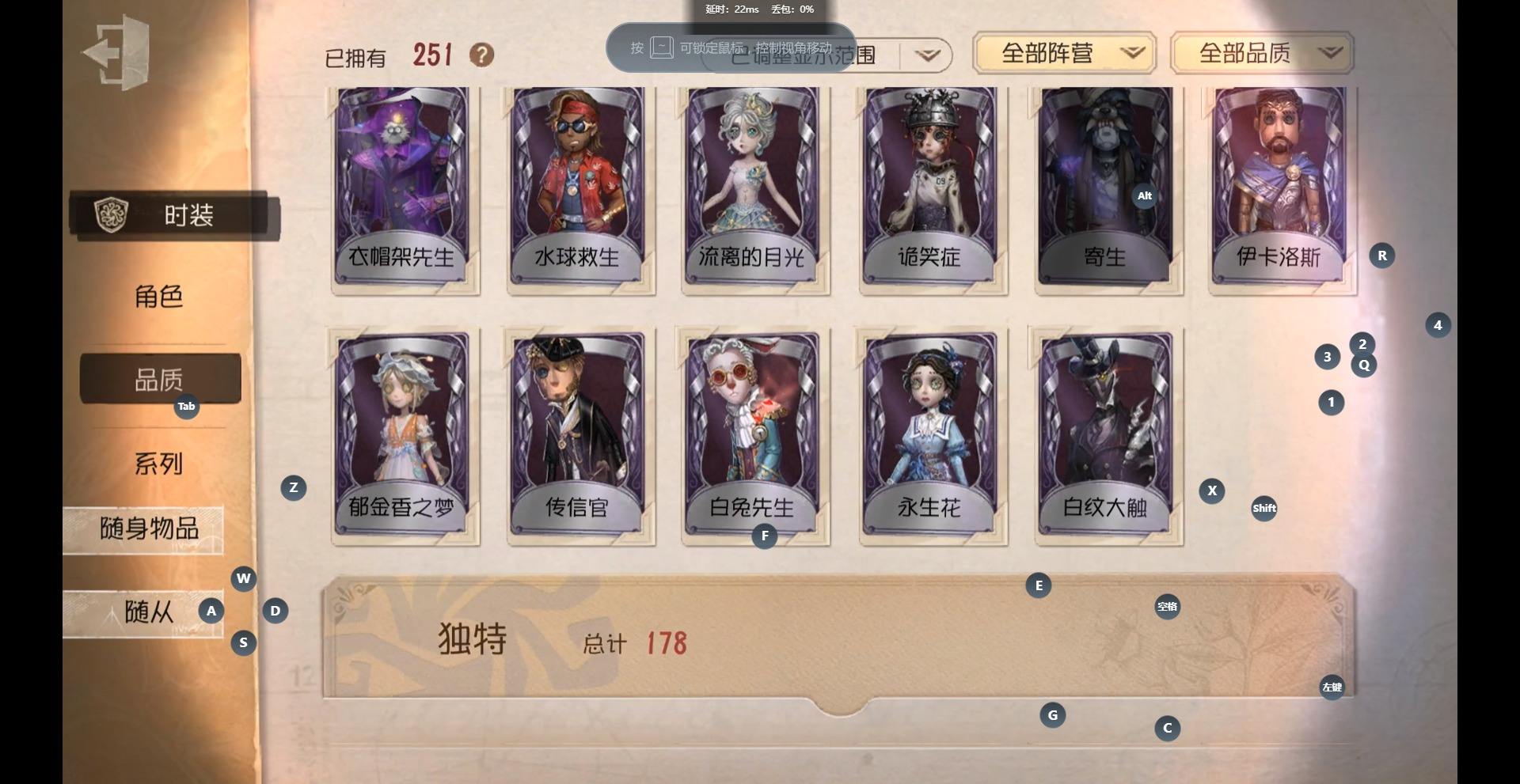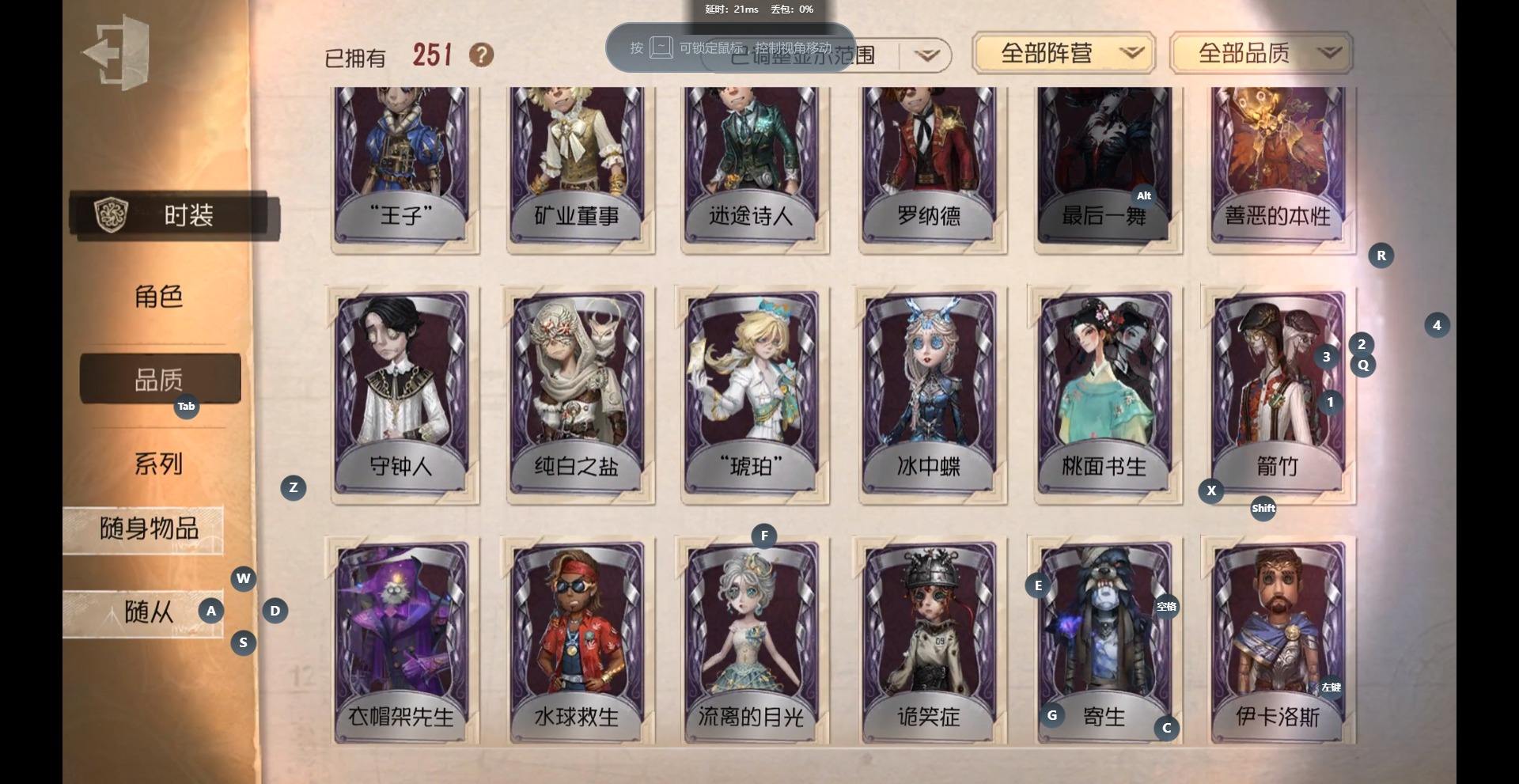 [14374916]安卓官服 手机账号 182时装 8金皮 50紫皮 10随从 55随身物品 【时装】:园丁-源自星辰,园丁- 初晴,爱丽丝·德罗斯-未至之人,爱丽丝·德罗斯-片刻闲暇,医生-永生花,黄衣之主-衣帽架先生,记者-伊布,气象学家-茶歇小姐,梦之女巫-裁缝夫人,红蝶-融化的泪琥珀,摄影师-盛夏光影,雕刻家-善忘的海马体,骑士-艺术品商人,歌剧演员-拂晓女士,作曲家-澄明的理性,爱哭鬼-善恶的本性,骑士-Mentor K,“心理学家”-恒梦,教授-吟游诗人,画家-掌中篆记,调香师-聂莫黎,古董商-陶梦嫣,幸运儿-“未知射线”X,守墓人-冥契 ,入殓师-变彩,病患-休塔尔克,心理学家-菲伦,冒险家-赞因,击球手-无用功G,佣兵-OPH.NAIB,邮差-潘塔龙,火灾调查员-“膨化”,时空之影-“有机磷”,入殓师-“温室”,宿伞之魂-桃面书生,摄影师-“琥珀”,入殓师-记忆之骑,先知-纯白之盐,调香师-Buffy,渔女-鬼脸天蛾,“法罗女士”-芳泽霞,蜘蛛-聚光灯下,记者-梦境中的爱丽丝,“小女孩”-异动指针,小说家-“伊始新篇”,“杰克”-乌骨,调酒师-校对人,“愚人金”-辉锑矿,哭泣小丑-熄灭的太阳,“喧嚣”-星之王,画家-多色印刷,蜡像师-淋浴,魔术师-白胡子,雕刻家-动物女巫,盲女-不愿醒来的女孩,盲女-吉尔达,摄影师-宿醉,“囚徒”-冬蝉,入殓师-“盲区”,入殓师-守钟人【随身物品】:夜星(奇珍),致命的邀请函(稀世),“全熟”(奇珍),纸扎祠堂(稀世),拾贝(奇珍),海风轻语(奇珍),扑克牌(奇珍),喝彩(奇珍),“密约”(奇珍),月光沙漏(奇珍),酩酊(奇珍),法典(奇珍),黄玫瑰之骸(稀世),玫瑰手杖(蓝)(奇珍),白泽玉(奇珍),笔尖柔情(奇珍)