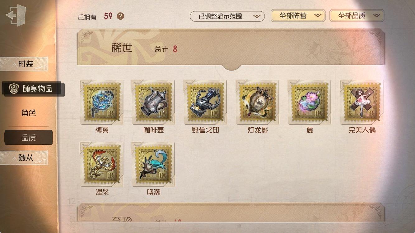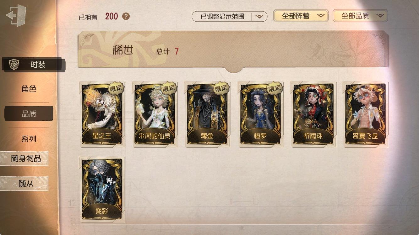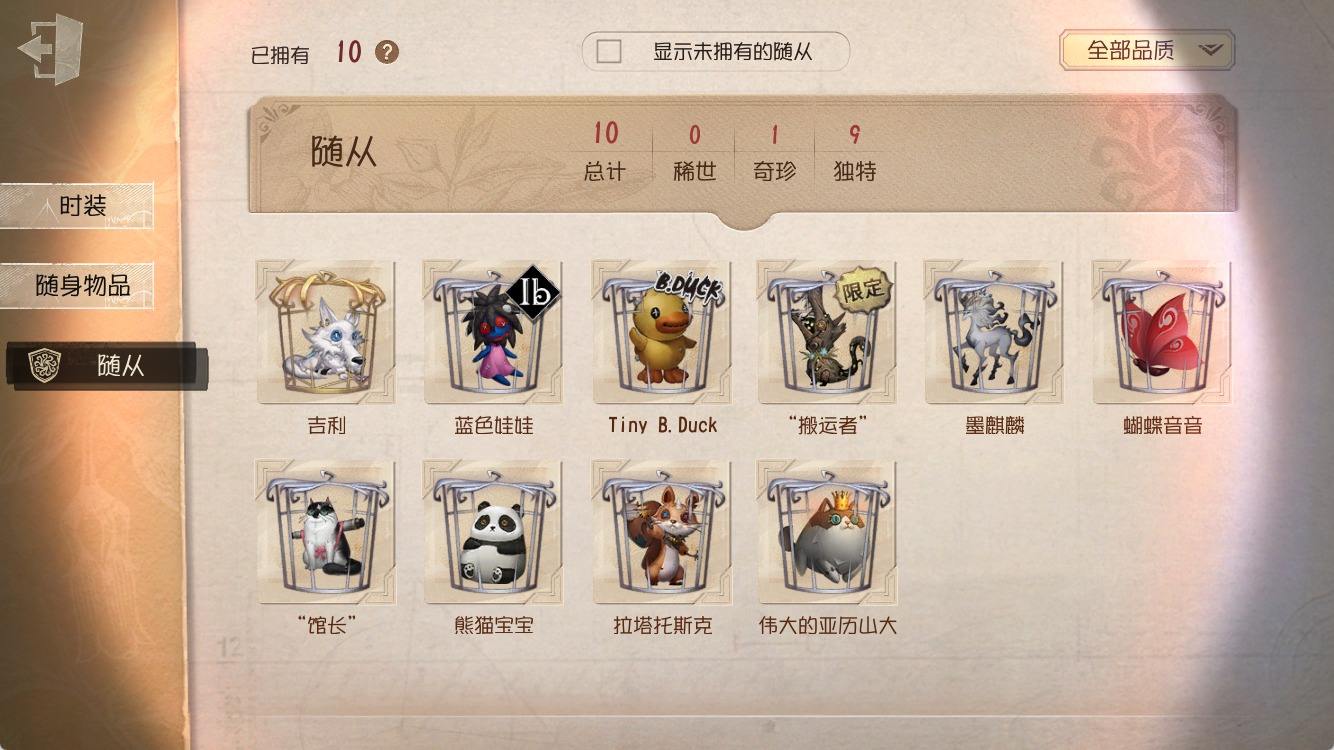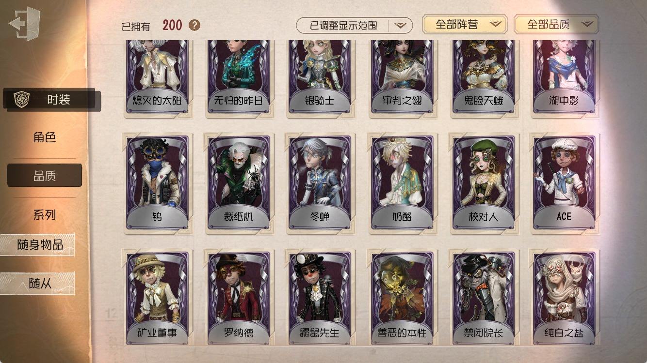 [14374916]安卓官服 手机账号 182时装 8金皮 50紫皮 10随从 55随身物品 【时装】:园丁-源自星辰,园丁- 初晴,爱丽丝·德罗斯-未至之人,爱丽丝·德罗斯-片刻闲暇,医生-永生花,黄衣之主-衣帽架先生,记者-伊布,气象学家-茶歇小姐,梦之女巫-裁缝夫人,红蝶-融化的泪琥珀,摄影师-盛夏光影,雕刻家-善忘的海马体,骑士-艺术品商人,歌剧演员-拂晓女士,作曲家-澄明的理性,爱哭鬼-善恶的本性,骑士-Mentor K,“心理学家”-恒梦,教授-吟游诗人,画家-掌中篆记,调香师-聂莫黎,古董商-陶梦嫣,幸运儿-“未知射线”X,守墓人-冥契 ,入殓师-变彩,病患-休塔尔克,心理学家-菲伦,冒险家-赞因,击球手-无用功G,佣兵-OPH.NAIB,邮差-潘塔龙,火灾调查员-“膨化”,时空之影-“有机磷”,入殓师-“温室”,宿伞之魂-桃面书生,摄影师-“琥珀”,入殓师-记忆之骑,先知-纯白之盐,调香师-Buffy,渔女-鬼脸天蛾,“法罗女士”-芳泽霞,蜘蛛-聚光灯下,记者-梦境中的爱丽丝,“小女孩”-异动指针,小说家-“伊始新篇”,“杰克”-乌骨,调酒师-校对人,“愚人金”-辉锑矿,哭泣小丑-熄灭的太阳,“喧嚣”-星之王,画家-多色印刷,蜡像师-淋浴,魔术师-白胡子,雕刻家-动物女巫,盲女-不愿醒来的女孩,盲女-吉尔达,摄影师-宿醉,“囚徒”-冬蝉,入殓师-“盲区”,入殓师-守钟人【随身物品】:夜星(奇珍),致命的邀请函(稀世),“全熟”(奇珍),纸扎祠堂(稀世),拾贝(奇珍),海风轻语(奇珍),扑克牌(奇珍),喝彩(奇珍),“密约”(奇珍),月光沙漏(奇珍),酩酊(奇珍),法典(奇珍),黄玫瑰之骸(稀世),玫瑰手杖(蓝)(奇珍),白泽玉(奇珍),笔尖柔情(奇珍)