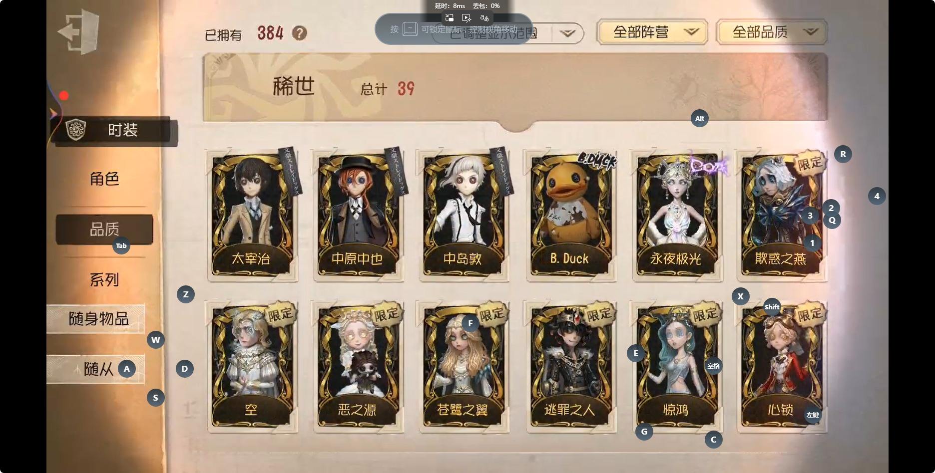 [14374916]安卓官服 手机账号 182时装 8金皮 50紫皮 10随从 55随身物品 【时装】:园丁-源自星辰,园丁- 初晴,爱丽丝·德罗斯-未至之人,爱丽丝·德罗斯-片刻闲暇,医生-永生花,黄衣之主-衣帽架先生,记者-伊布,气象学家-茶歇小姐,梦之女巫-裁缝夫人,红蝶-融化的泪琥珀,摄影师-盛夏光影,雕刻家-善忘的海马体,骑士-艺术品商人,歌剧演员-拂晓女士,作曲家-澄明的理性,爱哭鬼-善恶的本性,骑士-Mentor K,“心理学家”-恒梦,教授-吟游诗人,画家-掌中篆记,调香师-聂莫黎,古董商-陶梦嫣,幸运儿-“未知射线”X,守墓人-冥契 ,入殓师-变彩,病患-休塔尔克,心理学家-菲伦,冒险家-赞因,击球手-无用功G,佣兵-OPH.NAIB,邮差-潘塔龙,火灾调查员-“膨化”,时空之影-“有机磷”,入殓师-“温室”,宿伞之魂-桃面书生,摄影师-“琥珀”,入殓师-记忆之骑,先知-纯白之盐,调香师-Buffy,渔女-鬼脸天蛾,“法罗女士”-芳泽霞,蜘蛛-聚光灯下,记者-梦境中的爱丽丝,“小女孩”-异动指针,小说家-“伊始新篇”,“杰克”-乌骨,调酒师-校对人,“愚人金”-辉锑矿,哭泣小丑-熄灭的太阳,“喧嚣”-星之王,画家-多色印刷,蜡像师-淋浴,魔术师-白胡子,雕刻家-动物女巫,盲女-不愿醒来的女孩,盲女-吉尔达,摄影师-宿醉,“囚徒”-冬蝉,入殓师-“盲区”,入殓师-守钟人【随身物品】:夜星(奇珍),致命的邀请函(稀世),“全熟”(奇珍),纸扎祠堂(稀世),拾贝(奇珍),海风轻语(奇珍),扑克牌(奇珍),喝彩(奇珍),“密约”(奇珍),月光沙漏(奇珍),酩酊(奇珍),法典(奇珍),黄玫瑰之骸(稀世),玫瑰手杖(蓝)(奇珍),白泽玉(奇珍),笔尖柔情(奇珍)