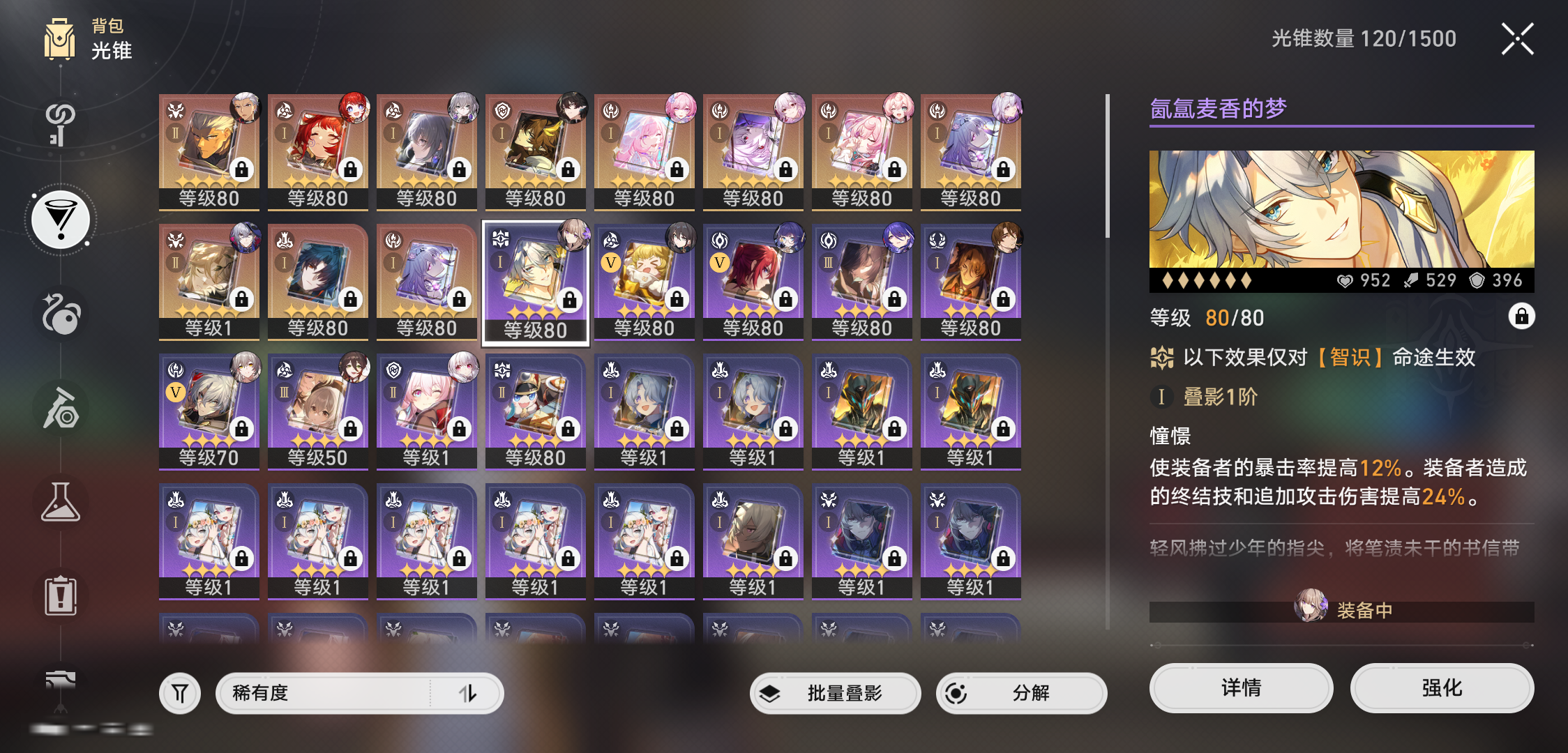 【崩坏·星穹铁道】【LYXQ6817】冒险等级:68,女主,五星数量:17,绑定情况:邮箱__五星角色:白厄 * 6命|Saber|阮·梅|刻律德菈|布洛妮娅|符玄|Archer|丹恒·腾荒|彦卿|杰帕德|真理医生__五星光锥:黎明恰如此燃烧 * 5精|记忆永不落幕 * 5精|时节不居 * 2精|无可取代的东西|理想燃烧的地狱|银河铁道之夜,【邮箱未实名】[13684071]m23836,70级,女主,36黄,梦华34,星琼90,星轨专票0,星轨通票3,16个五星角色:3命白厄,1命布洛妮娅,1命阮梅,1命白露,1命克拉拉,1命杰帕德,星期日,丹恒腾荒,刻律德菈,Archer,大黑塔,遐蝶,真理医生,姬子,彦卿,瓦尔特,8个五星光锥:精5不息的演算,精1黎明恰如此燃烧,精1星海巡航,精1理想燃烧的地狱,精1回到大地的飞行,精1记一位星神的陨落,精1记忆永不落幕,精1时节不居