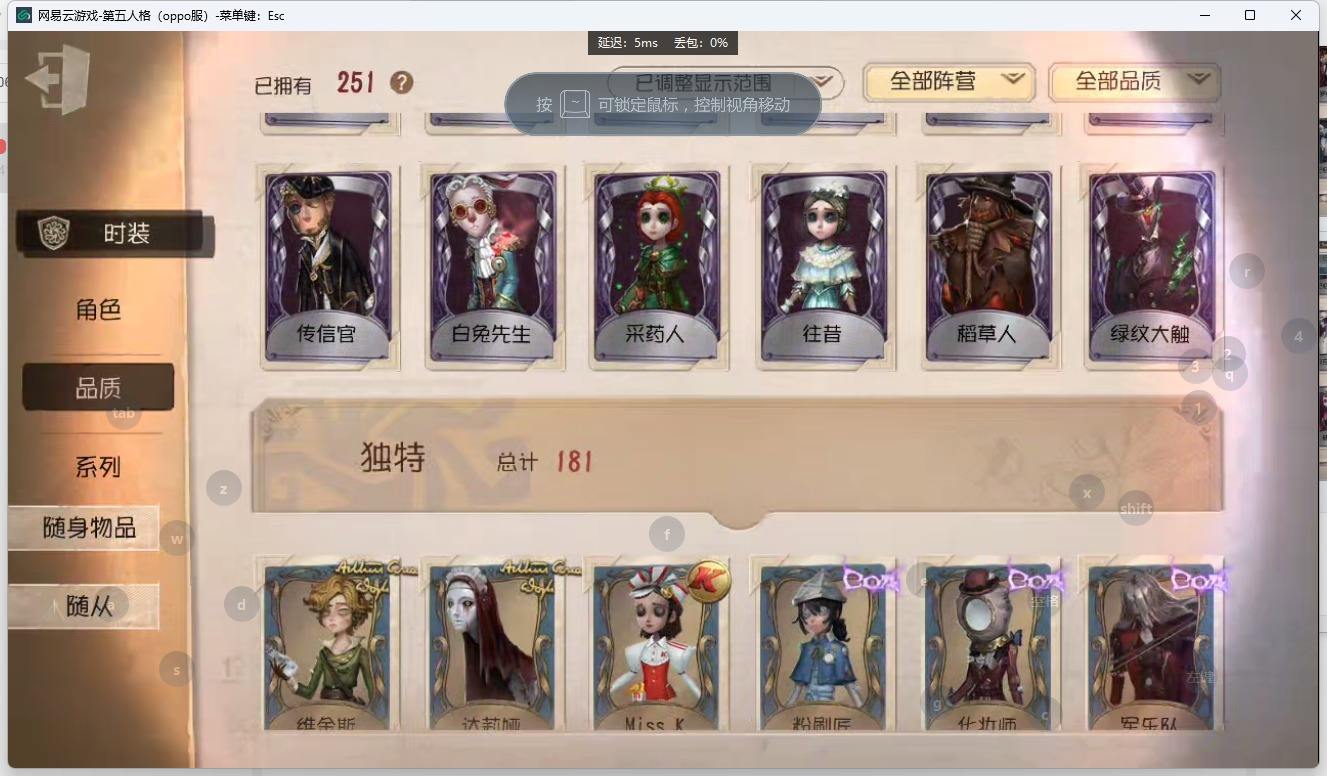 [14028274]OPPO-非账号转移 手机账号 559时装 23金皮 147紫皮 20随从 186随身物品 【时装】:勘探员-盖提亚之遗,爱哭鬼-摩诺,红蝶-壹原侑子,渔女-Chef K,小提琴家-不羁的浪漫,野人-雪原猎人,佣兵-柴郡猫,佣兵-赤井秀一,蜘蛛-花祭,“囚徒”-天海兰太郎,“小女孩”-欧律狄刻,调香师-提炼师,记者-伊布,医生-司药,雕刻家-善忘的海马体,记者-华生小姐,画家-掌中篆记,幸运儿-蛋小黄的好朋友,调香师-Buffy,教授-紧急运输,古董商-菌丝研究,画家-多色印刷,蜘蛛-不息载械,木偶师-义体再构,小说家-“伊始新篇”,击球手-迫降专家,空军-尼德霍格,空军-寒香舞,空军-毛利兰,机械师-不会枯萎的花,机械师-小红帽,26号守卫-蛋壳先生,爱哭鬼-点金,病患-逃罪之人,“杰克”-盛宴伯爵,红夫人-贝拉夫人,红蝶-花嫁,调香师-今夜不再,调香师-Lady K,“小女孩”-滚滚伙伴,医生-罪木蜜柑,幸运儿-苗木诚,幸运儿-拉塔托斯克,孽蜥-窃梦行者,盲女-暗金蛋糕,盲女-吉尔达,梦之女巫-川上富江,“囚徒”-蝰