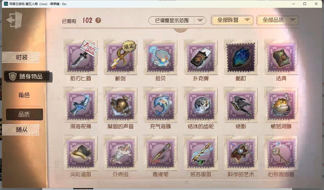 [13699808]安卓官服 手机账号 145时装 8金皮 37紫皮 12随从 37随身物品 【时装】:歌剧演员-幕外之音,作曲家-幽灵帆,爱丽丝·德罗斯-片刻闲暇,渔女-Chef K,调香师-提炼师,咒术师-噩之牙,作曲家-澄明的理性,骑士-Mentor K,骑士-艺术品商人,园丁-郁金香之梦,医生-司药,红蝶-硫火,调香师-Buffy,医生-永生花,小说家-“伊始新篇”,拉拉队员-采集速巡,宿伞之魂-桃面书生,祭司-“朝圣者”,教授-温泉煮酒,祭司-梦之使者,蜡像师-淋浴,昆虫学者-可妮兔,红夫人-女大公,画家-江户川乱步,红夫人-贝拉夫人,红蝶-白无垢,红蝶-更纱,调酒师-海盐特调,舞女-香薰桑拿,调香师-笼中之蝶,调香师-冰上舞蹈,调香师-致命温柔,调香师-今夜不再,调香师-Lady K,小提琴家-孤月骑士,医生-往昔,“使徒”-校监夫人,冒险家-爱丽丝,宿伞之魂-安魂曲【随身物品】:遗忘之花(稀世),沙滩镜(奇珍),月光(奇珍),记忆囚笼(奇珍),酩酊(奇珍),折柳(稀世),法典(奇珍),旧日征帆(奇珍),玫瑰手杖(蓝)(奇珍),长生(奇珍),焚樱(奇珍),玫瑰之下(稀世),完美人偶(稀世),星云瓶(稀世),小人偶(奇珍),“星辰”(稀世),梦魇结晶(稀世),凝露(奇珍),凝聚之水(奇珍),书中蝶(稀世)