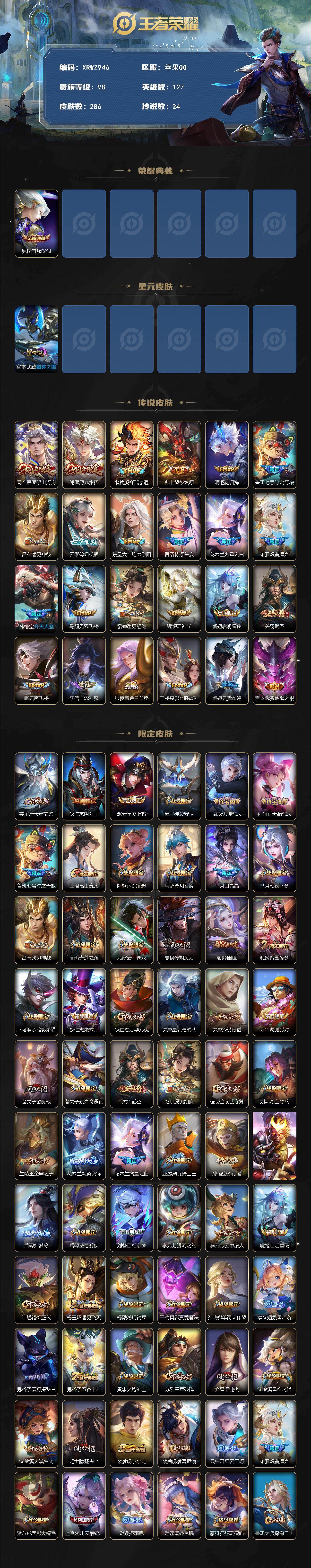 商品描述:[15350551]Xr45836-靓号会员2.7到期-苹果Q-V8-最强王者段位-127英雄-286皮肤-1典藏皮肤-1星元-24传说-82史诗【英雄全皮】:姜子牙全皮,夏洛特全皮,司空震全皮【荣耀典藏】:铠银白咏叹调【传说皮肤】:司空震愿照山河定,澜愿照九州拓,裴擒虎祥瑞亨通,典韦战鼓燎原,澜逐花归海,鲁班七号时之奇旅,吕布遇见神鼓,云缨鹤归松栖,东皇太一灼幽烈阳,夏洛特浮生妄,花木兰燃星之曲,伽罗炽翼辉光,孙悟空齐天大圣,马超无双飞将,貂蝉遇见胡旋,镜炽阳神光,虞姬启明星使,关羽武圣,曜云鹰飞将,李信一念神魔,张良黄金白羊座,干将莫邪久胜战神,虞姬云霓雀翎,宫本武藏地狱之眼【限定皮肤】:姜子牙天穹之誓,狄仁杰阴阳师,赵云皇家上将,墨子神迹守卫,嬴政优雅恋人,孙尚香蔷薇恋人,鲁班七号时之奇旅,庄周高山流水,阿轲迷踪丽影,扁鹊奇幻香踪,芈月白晶晶,芈月幻夜卜梦,吕布遇见神鼓,周瑜赤莲之焰,元歌云间偶戏,夏侯惇朔风刀,甄姬幽恒,甄姬游园惊梦,马可波罗暗影游猎,狄仁杰魔术师,狄仁杰万华元夜,达摩星际陆战队,达摩沙漠行僧,项羽海滩派对,老夫子醍醐杖,老夫子航海奇遇记,关羽武圣,貂蝉遇见胡旋,程咬金演武夺筹,刘邦夺宝奇兵,兰陵王金庭之子,花木兰默契交锋,花木兰燃星之曲,亚瑟潮玩骑士王,孙悟空孙行者,孙悟空齐天大圣,后羿如梦令,后羿圣弓游侠,刘备百相守梦,李元芳银河之约,李元芳云中旅人,虞姬启明星使,钟馗驱傩正仪,杨玉环遇见飞天,杨戬潮玩骑兵,干将莫邪真爱魔法,雅典娜单词大作战,蔡文姬繁星吟游,鬼谷子原初探秘者,鬼谷子五谷丰年,黄忠火炮绅士,苏烈千军破阵,弈星混沌棋,沈梦溪星空之诺,沈梦溪大漠名商,明世隐疑决卦,裴擒虎李小龙,裴擒虎擒涛扼浪,云中君纤云弄巧,伽罗炽翼辉光,猪八戒西部大镖客,上官婉儿天狼绘梦者,嫦娥拒霜思,嫦娥暖冬兔眠,蒙犽狂想玩偶喵,鲁班大师探海日志,桑启海盐诗旅,夏洛特浮生妄,暃星界游侠,艾琳流音漫舞,云缨鹤归松栖,司空震地狱燃心,阿古朵江河有灵,张良古海寻踪,蒙恬荣光圣徽,鬼谷子天穹祈灯,沈梦溪龙舞盛年,刘邦剑破天穹,程咬金群星魔术团,周瑜熔金海岸【年限皮肤】:甄姬幽恒,关羽武圣,伽罗炽翼辉光【赛季限定】:夏侯惇朔风刀,狄仁杰万华元夜,达摩沙漠行僧,老夫子醍醐杖,程咬金演武夺筹,兰陵王金庭之子,张良古海寻踪,李元芳云中旅人,钟馗驱傩正仪,鬼谷子原初探秘者,苏烈