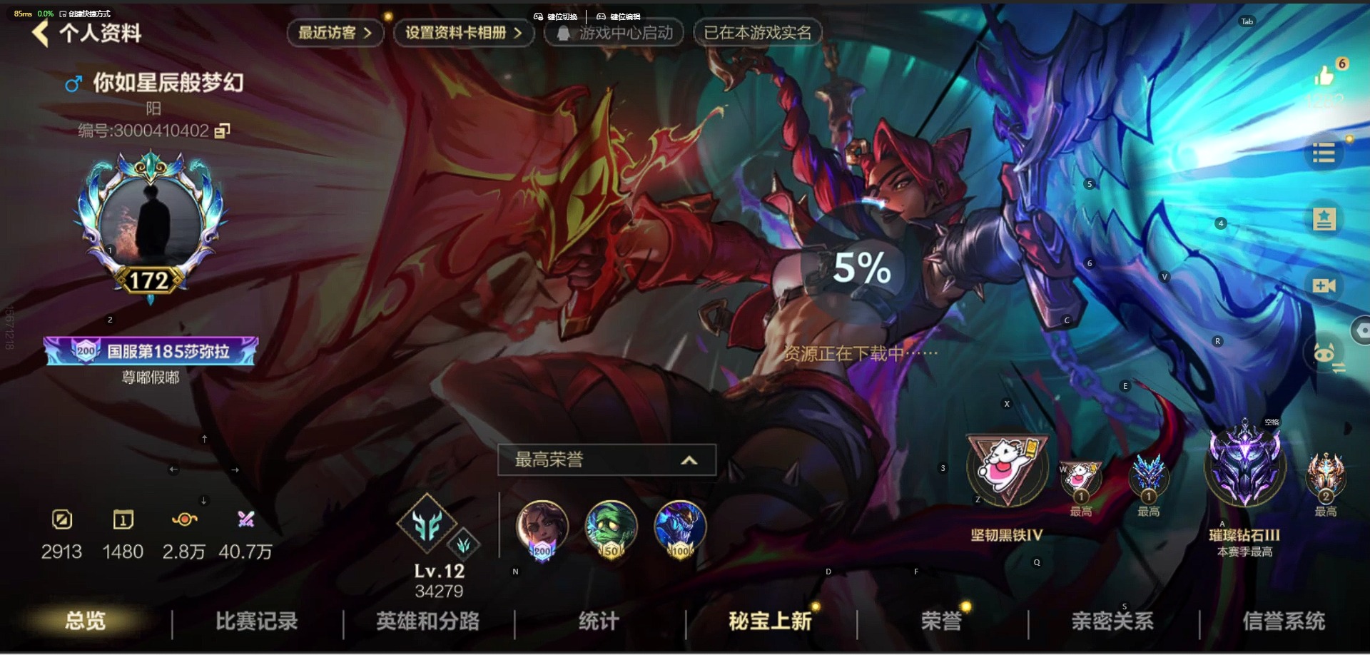 商品描述:2神话 1限定 21传说 55史诗 141皮肤 可二次 可修改实名 【段位】:钻石【神话皮】:夜星流火 金克丝,乘龙破渊 李青【限定皮肤】:水晶玫瑰永恩【传说皮】:暗星尊,斗魂觉醒 莎弥拉,海魔至尊 亚托克斯,斗魂无双亚索,西部魔影卢锡安,天煞劫,神王诺手,神龙尊者 驭风啸龙,K/DA ALLOUT萨勒芬妮,光明哨兵薇恩,灌篮高手,西部天使寒冰,星域游侠卡牌,跳跳倩影女枪,源计划:泯灭,源计划:林,黎明使者永恩,剪胜裁春格温,星之守护者金克丝,战斗学院ez,星之守护者阿狸