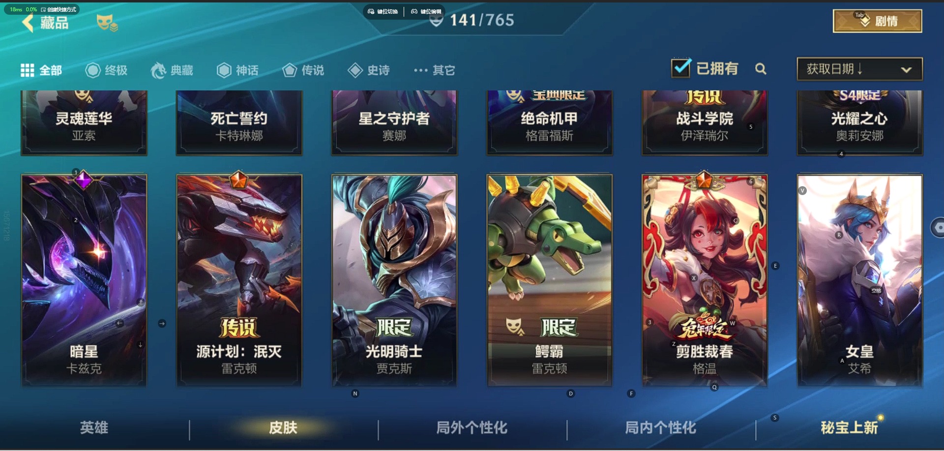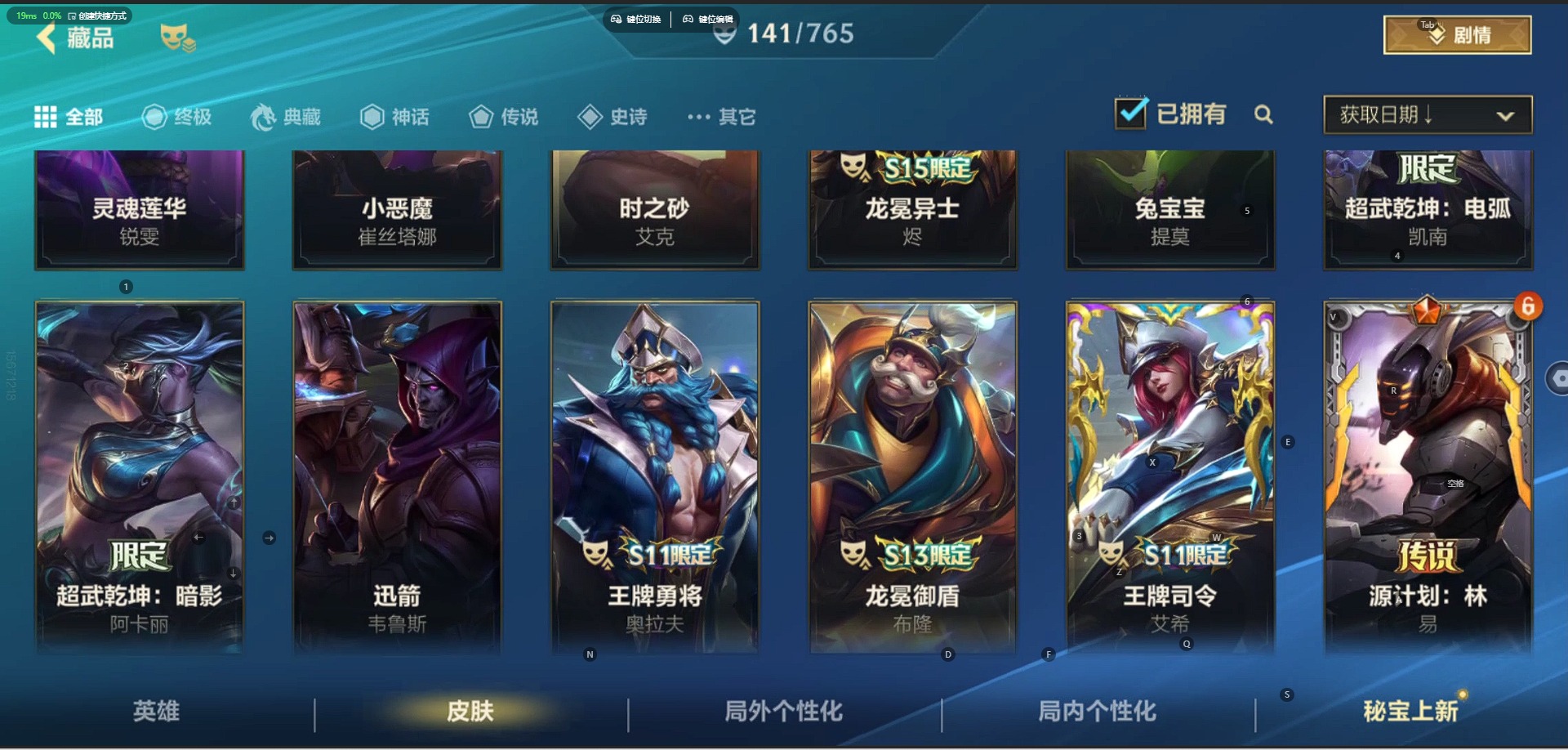【LSC208】43英雄/29皮肤/3传说/12史诗/荣耀黄金/心之钢 凯隐/驯龙炮手 崔丝塔娜/神王 德莱厄斯/猎梦吞噬者 卡兹克/北极星守护者 赫卡里姆/腥红之月 崔斯特/死亡誓约 劫/小恶魔 崔丝塔娜/永恒之森 霞/星域审判官 卡蜜尔/梦境绅探 凯南/冰封王子 蒙多医生/太空律动 “狗头” 内瑟斯/战场之王 吉格斯/泳池派对 雷克顿/s6绯金丽刃/S11王牌勇将/s15龙冕异士/s17冠翎御风使/时之砂 艾克/国王 泰达米尔/猎龙勇士 布隆/龙冕异士 烬/绯金丽刃 菲奥娜/光明骑士 贾克斯/绝命枪手 卢锡安/兔宝宝 提莫/冰霜亚龙 希瓦娜/女警官 蔚/双城之战 蔚/战争血统 蒙多医生/