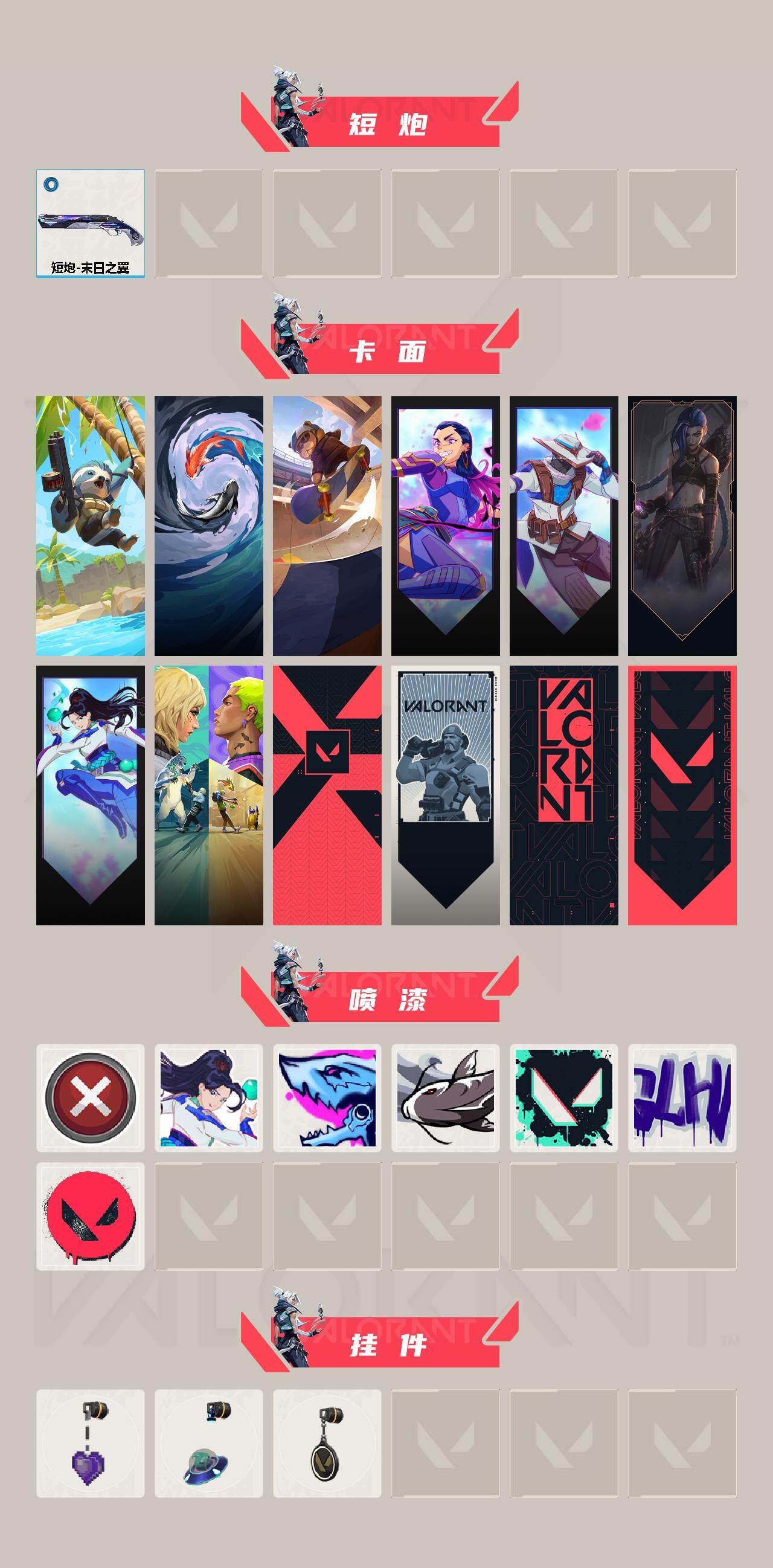 [13644182]8橙皮 1紫皮 23皮肤 19英雄 59卡面 285已用源晶 未定级段位 【近战武器皮肤】:RGX 11z Pro//2.0 蝴蝶刀,匕首-超限闪存,蝴蝶刀-侦察力量【佩枪皮肤】:标配-VCT25xEDG,正义-西部未来【步枪皮肤】:狂徒-掠影,狂徒-混沌序曲,狂徒-塑水宗【挂饰】:鱼骨头挂饰,双城之战小蛋糕挂饰,源晶工程挂饰,神中神挂饰,VCTxEDG挂饰,终章KO小金人挂饰
