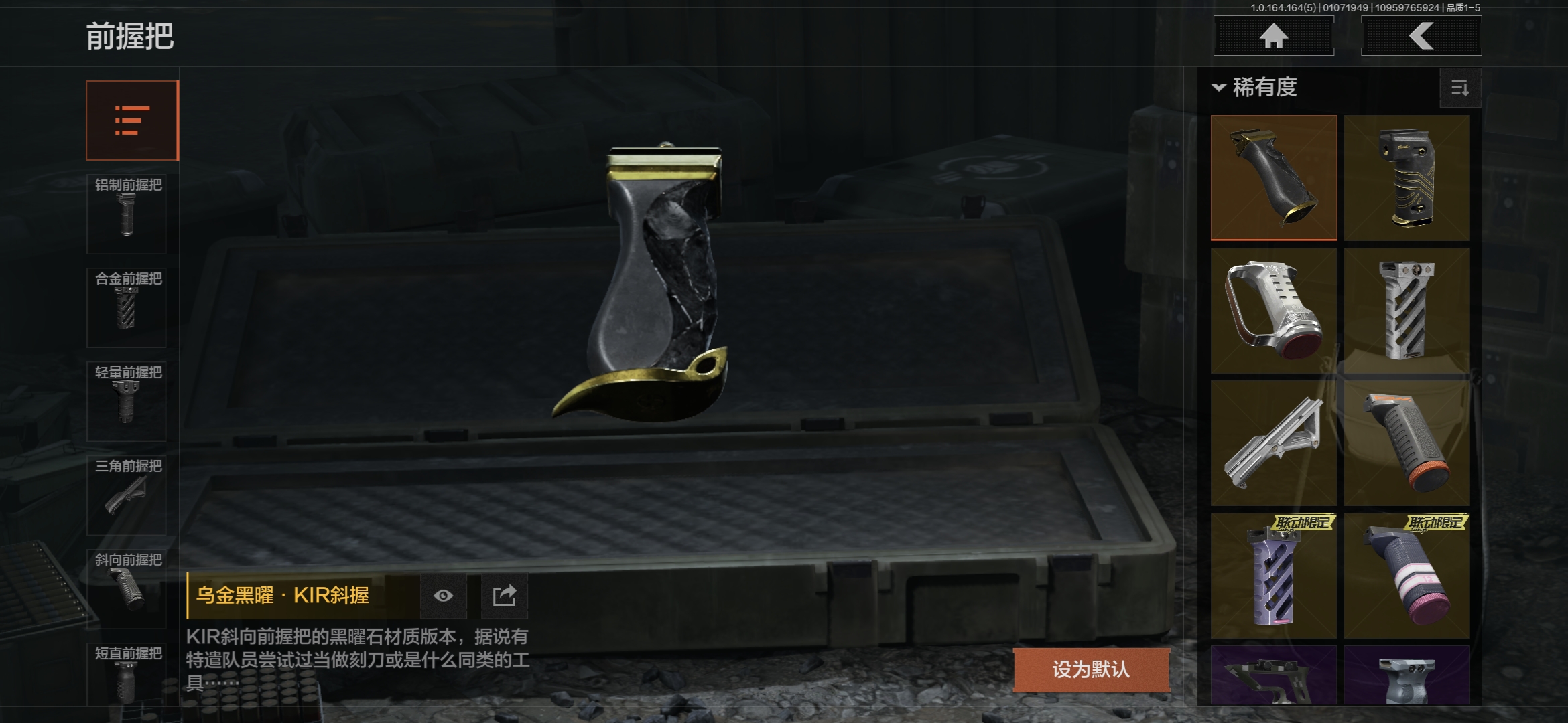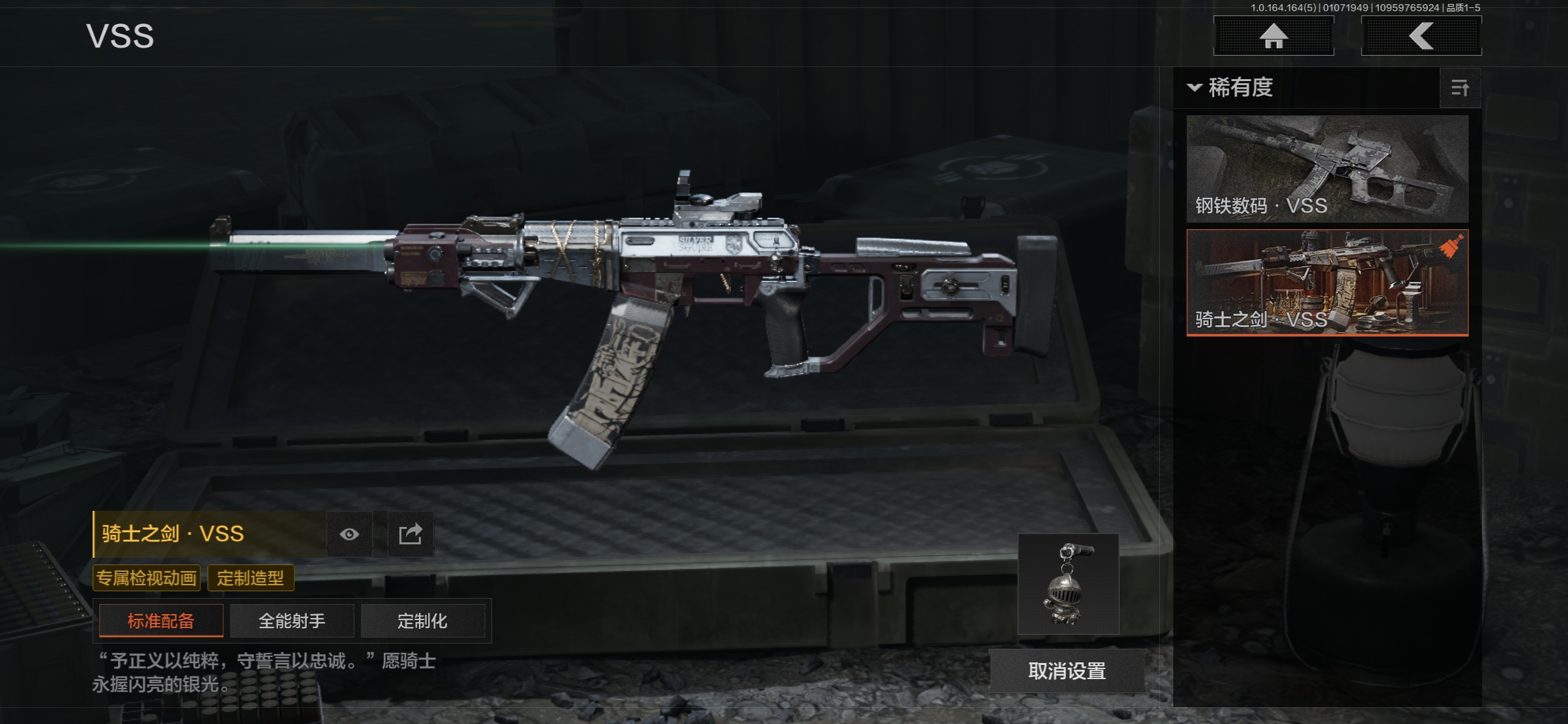 MWT4225苹果Q-等级30-仓库价值6.9m-科恩币100000【现金库5.4m】-【套装】 王国卫队礼装 王国卫队礼装·轻装 【枪皮】 包络战术·AKM 乌金黑曜·QBZ192 利齿风暴·MPX 骑士之剑·VSS 【近战武器】 苍穹利爪