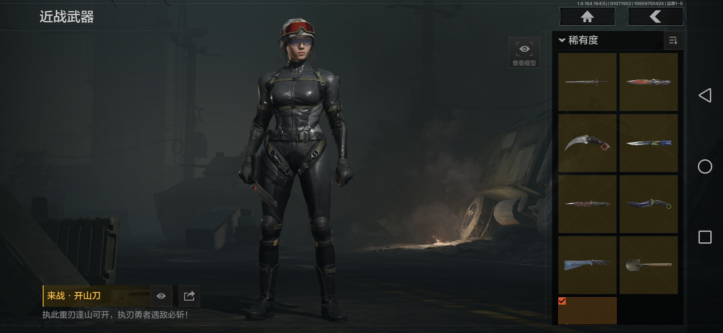 商品描述:MWT4243【9刀皮 4金衣 10金枪 极品高氪号】安卓Q-等级30-仓库价值15.6m-科恩币8498k-【套装】 冥河 脉冲.马克西姆 深潜行者 噤声者吉利服 和平先锋作战套装 财团之手作战套装 高地武士. 套装 都市夜影套装 【枪皮】 包络战术.AKM 伦琴幻影.H416 战术大师.AEK 战术大师.AN94 冬夜.AK12 乌金黑曜.QBZ192 冰河碎影 .Vector9 骑士之剑 .VSS 骑士之剑 .AX50 近卫荣誉.RPK16 【近战武器】 百炼恒常 空腔战术 下玄月 涂鸦利刃(蝴蝶刀) 胜利军刀 急袭弯刀 霜狼生存刀 工兵铲 开山刀