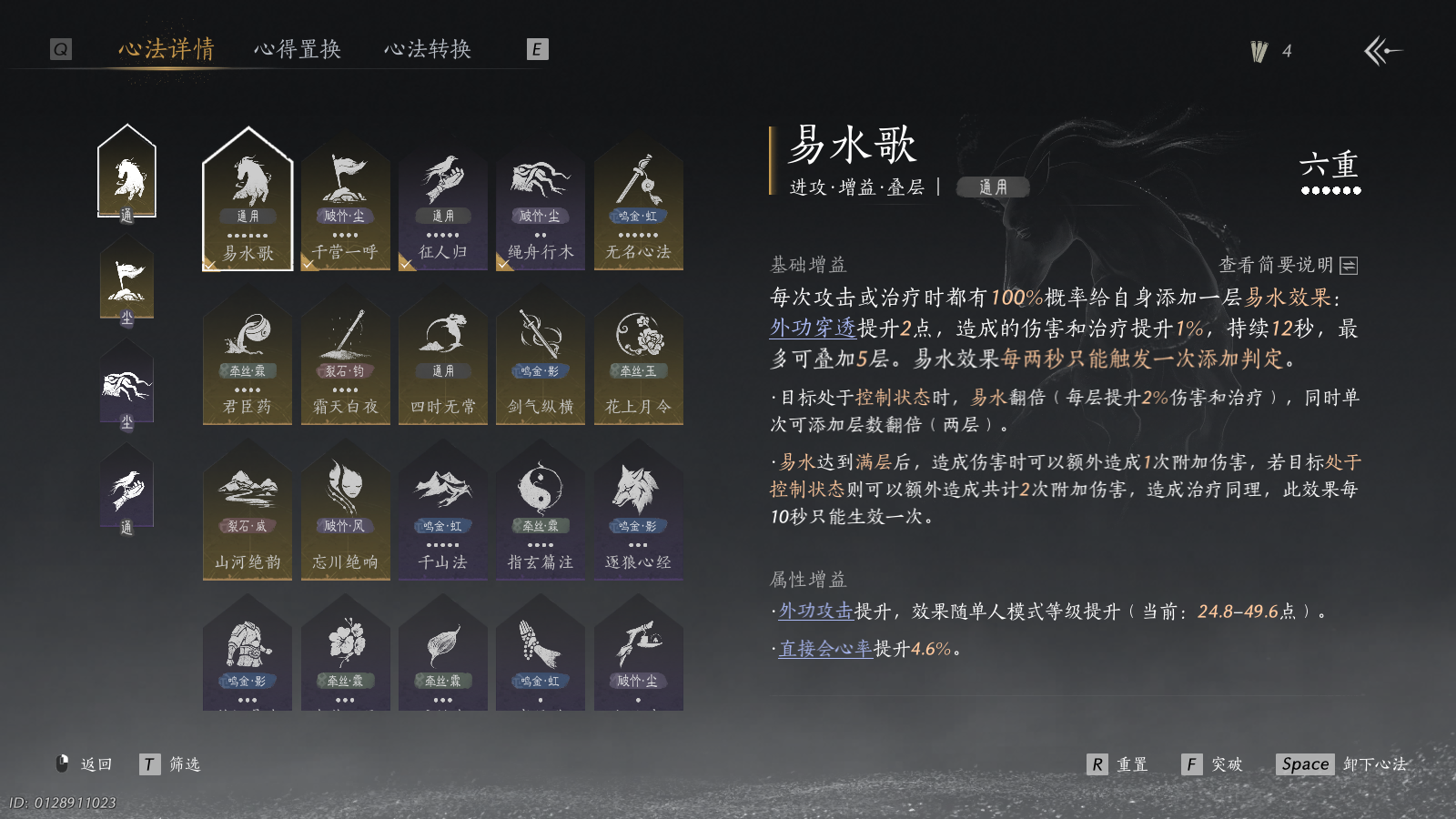 XY-076645101 风华值39611 武林造诣(鹅)34120 已用八音窍数量8 未用八音窍数量0 等级100 角色性别【文本】男 【绝境】 【无换绑CD】 【未注册】 【男】 【是】 【是】