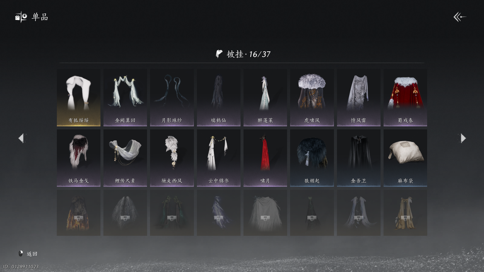 商品描述: 【有狐瑞鹤仙醉蓬莱芙蓉头带一个未用八音】 风华值49786 武林造诣(鹅)34400 已用八音窍数量3 未用八音窍数量1 等级100 角色性别【文本】男 【绝境】 【无换绑CD】 【未绑定或可换绑】 【未注册】 【不支持人脸包赔】 【男】 【无】 【是】 【是】 稀有套装4 稀有发型1 套装52 武器外观17 武学奇术1 其他武器外观18 稀有套装:有狐绥绥,乌纱红漪,晏平生,瑞鹤仙; 稀有发型:芙蓉泣露; 套装:乌纱红漪,卿知吾心,云中锦书,快哉风,青玉案,浣溪沙,鹊踏枝,清音晓,贺新词,雁还乡,红尘书,芳时歇,午风清,南风熏,风入画,一心三藏,逐红花,遥夜行,雨停荷,上青云,醉蓬莱,舞花间,松花玉兰,封侯,白龙,射虎南山,纵横,螭骨,铁马金戈,白衣修罗,丹雀,落花闻诏,瑞鹤仙,青草原,梦寻虎跑,醉云醒雨,金滟玉团,鲤传尺素,雪狸儿,惜芳时,云遥鹤影,清河强者,金池鲤,翠羽顾,梨花泪,蜀戏春,啸月,蝎心蛟影,夜郎幽问,九间当铺,驰走西风,月如银; 武器外观:霜枫诀,霜枫寒,霜枫横,大满贯,月中诗,飒陌耶,霜枫愁,霜枫尽,霜枫眠,霜枫舞,战鳞光,翦鳞光,斩鳞光,断鳞光,舞鳞光,卷鳞光,衔鳞光; 武学奇术:御帚飞鸡; 其他武器外观:霜枫诀,霜枫寒,霜枫横,大满贯,月中诗,飒陌耶,霜枫愁,霜枫尽,霜枫眠,霜枫舞,战鳞光,翦鳞光,斩鳞光,断鳞光,舞鳞光,卷鳞光,红尘烬,衔鳞光;